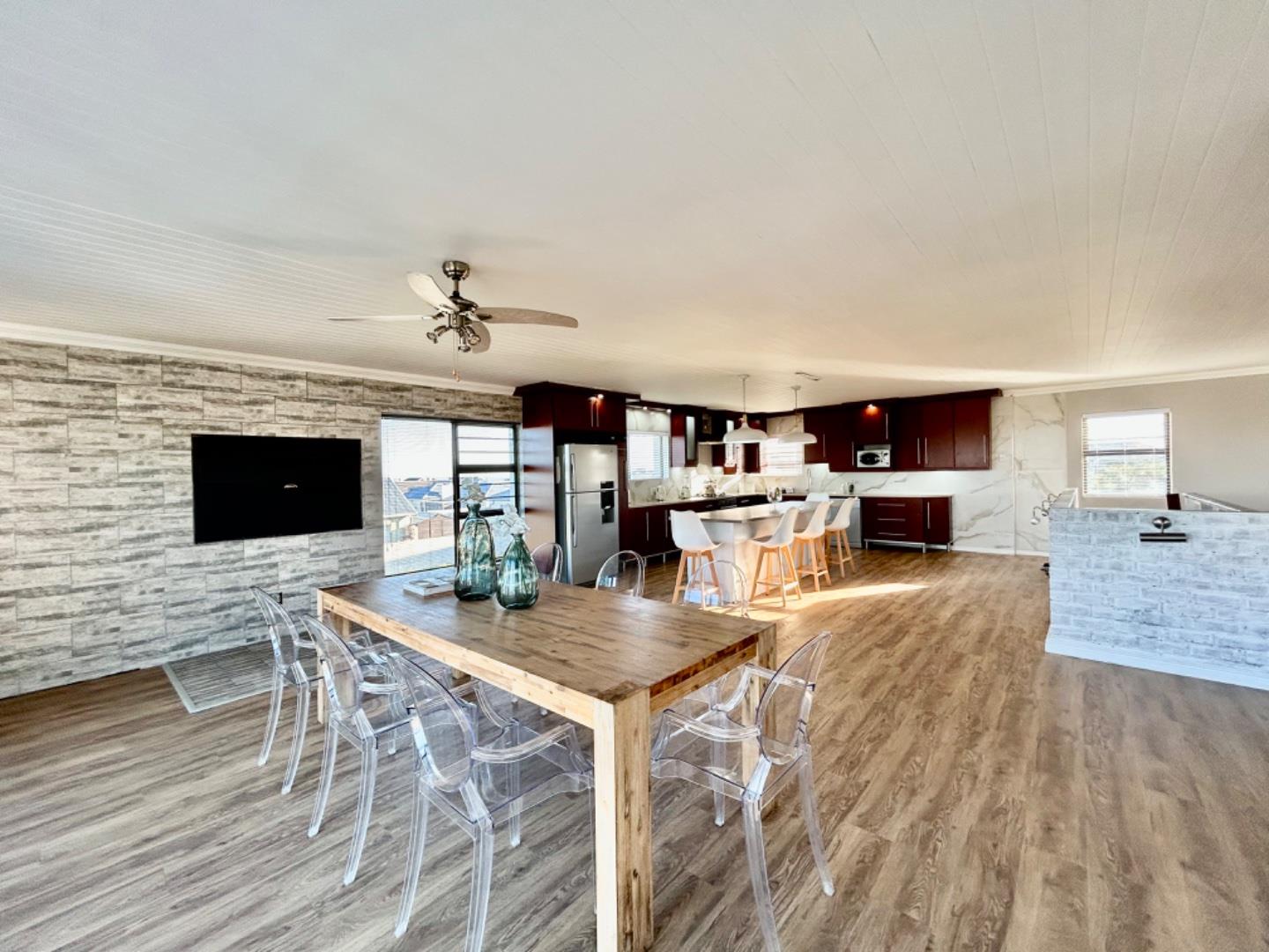 Upstairs one will find an open plan kitchen with an elegant center island and gas-hob.