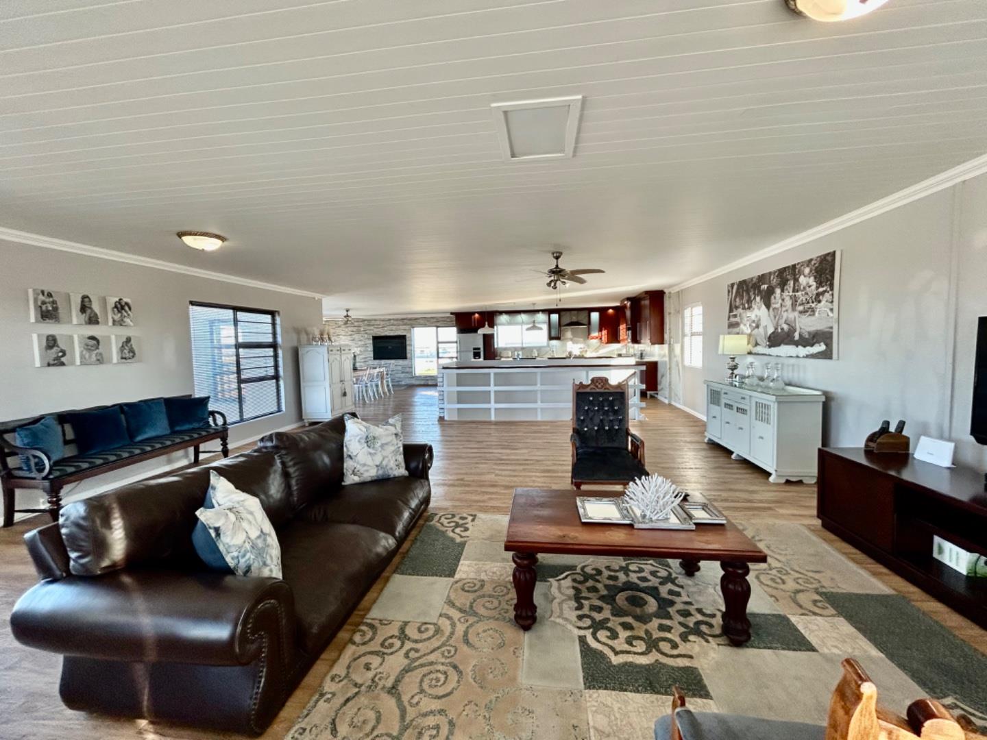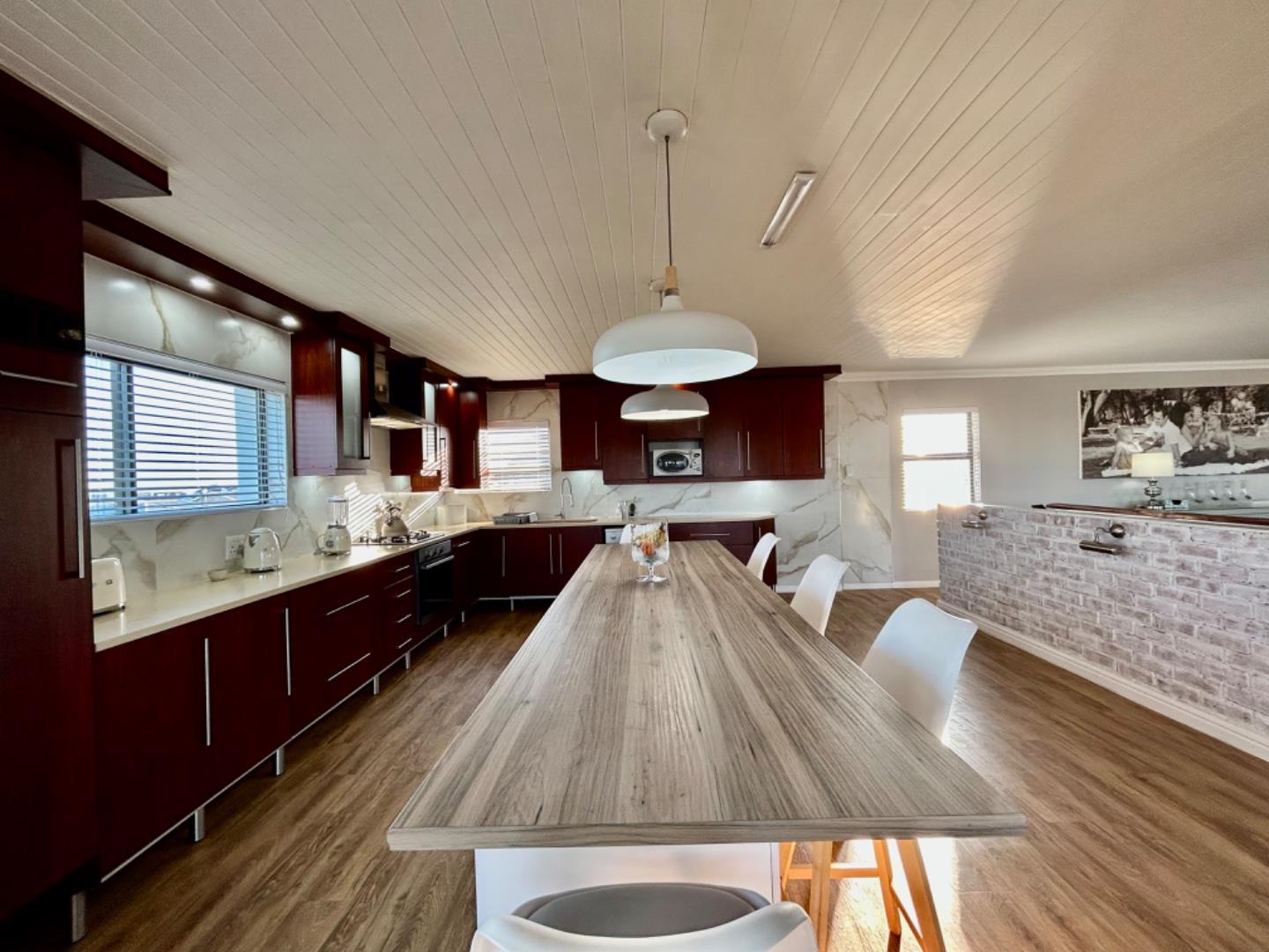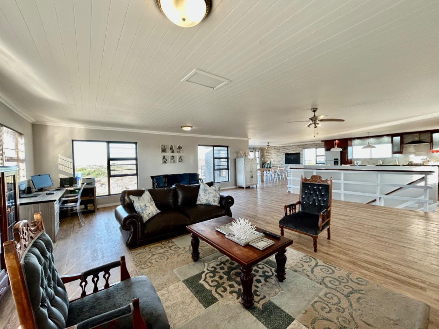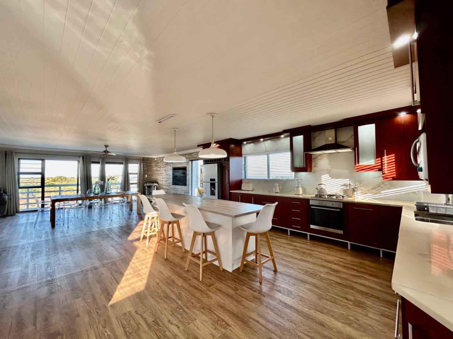 The indoor braai area provides direct access to a deck area where a distant sea view can be enjoyed while sipping on sundowners.