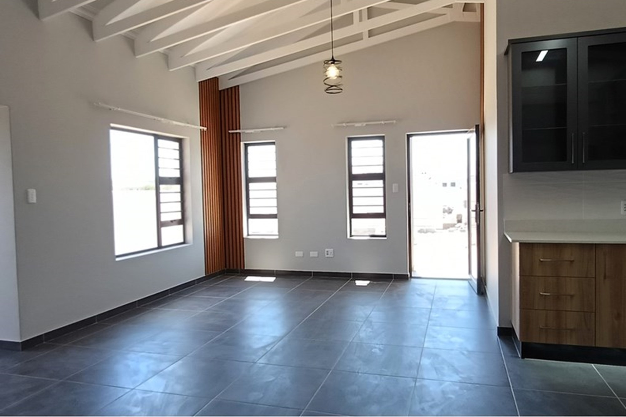 Welcome to your dream home in the prestigious Fountains Estate, Eastern Cape, South Africa! This stunning 3-bedroom, 2-bathroom house for sale is the perfect blend of modern elegance and comfort, offering a spacious living area of 135 square meters. This gem is new to the market and awaits its first owner. With the added convenience of being vacant, move-in day can be sooner than you think! Enjoy the luxury of a garage with an automatic door that provides both security and ease of access. The property's strategic location is a homeowner's delight, as it's situated near a fitness center and shopping mall, making weekend errands and workouts hassle-free. For tech-savvy residents, CATV-cable and satellite hookups ensure you're always connected. Security is a top priority, and this home comes with a built-in security system, offering peace of mind to its occupants. Pets are welcome too, making it an ideal choice for families of all sizes. Appreciate ample storage space with built-in closets that seamlessly cater to your organizational needs, while the modern design elements throughout the house create a welcoming atmosphere. Sitting on a total lot size of 375 square meters. Offering 1 parking space, your vehicles will be stored safely. Built in December 2024, this residence encapsulates brand-new. Don't miss the chance to call this delightful property your home sweet home!