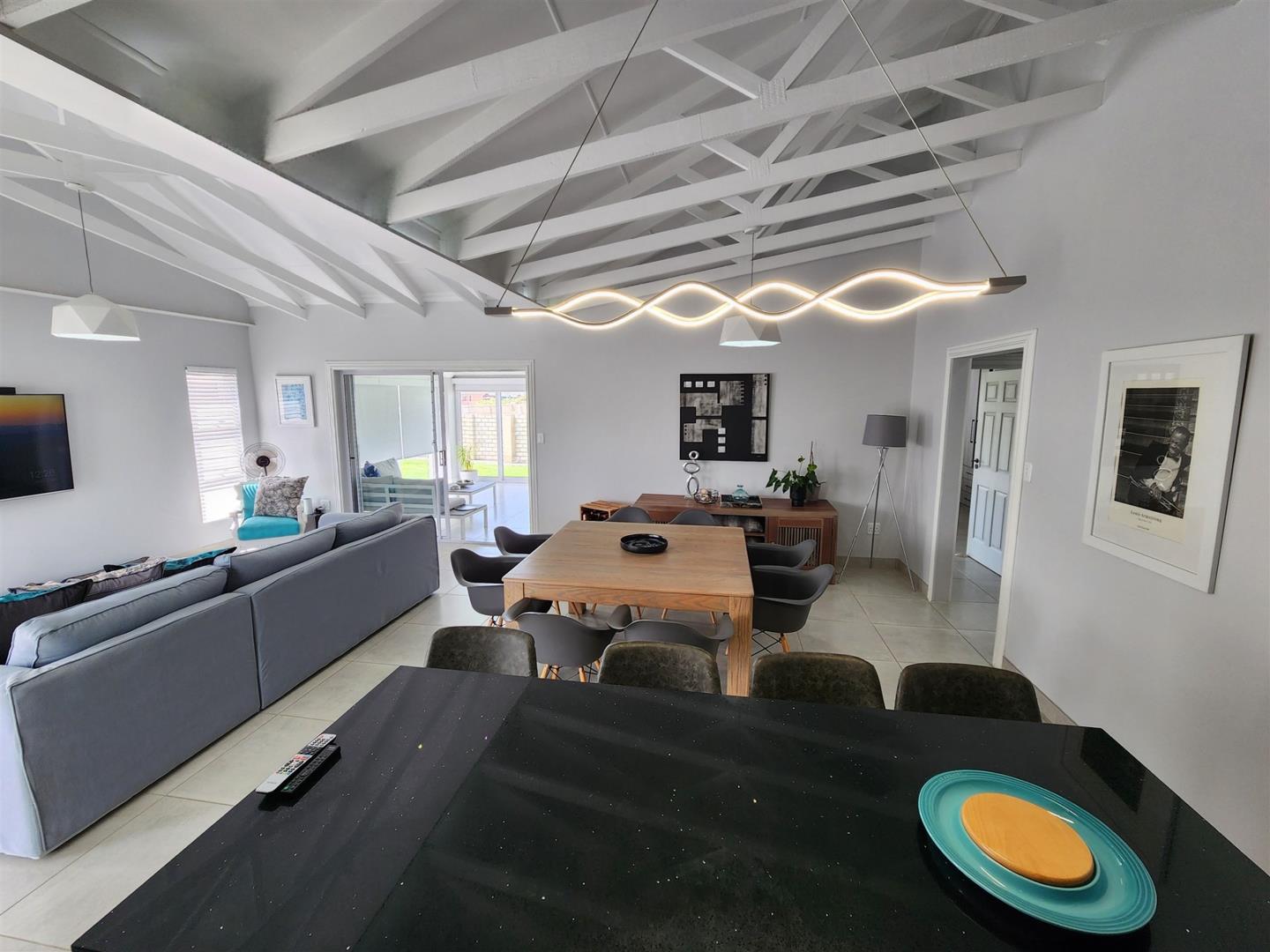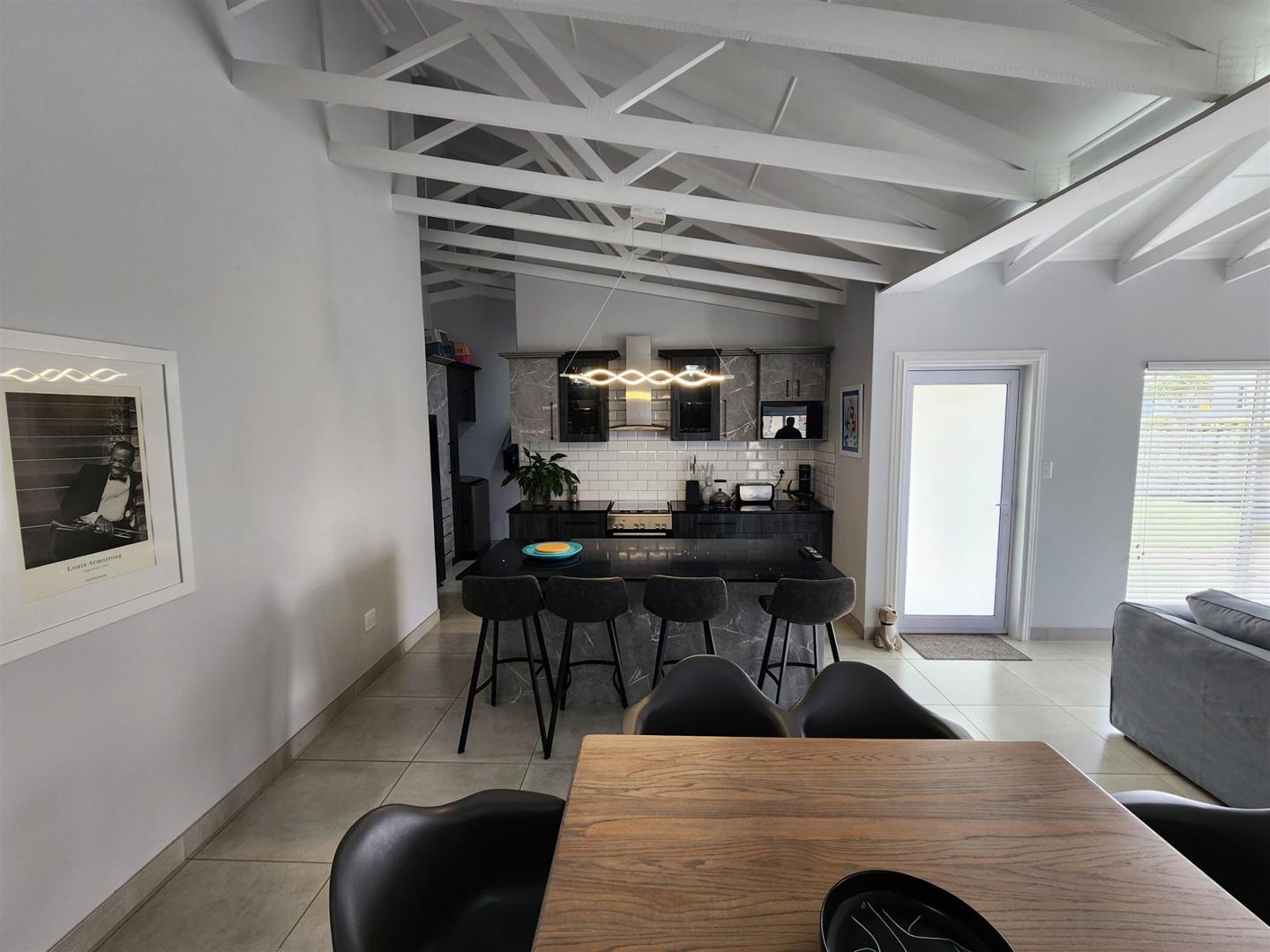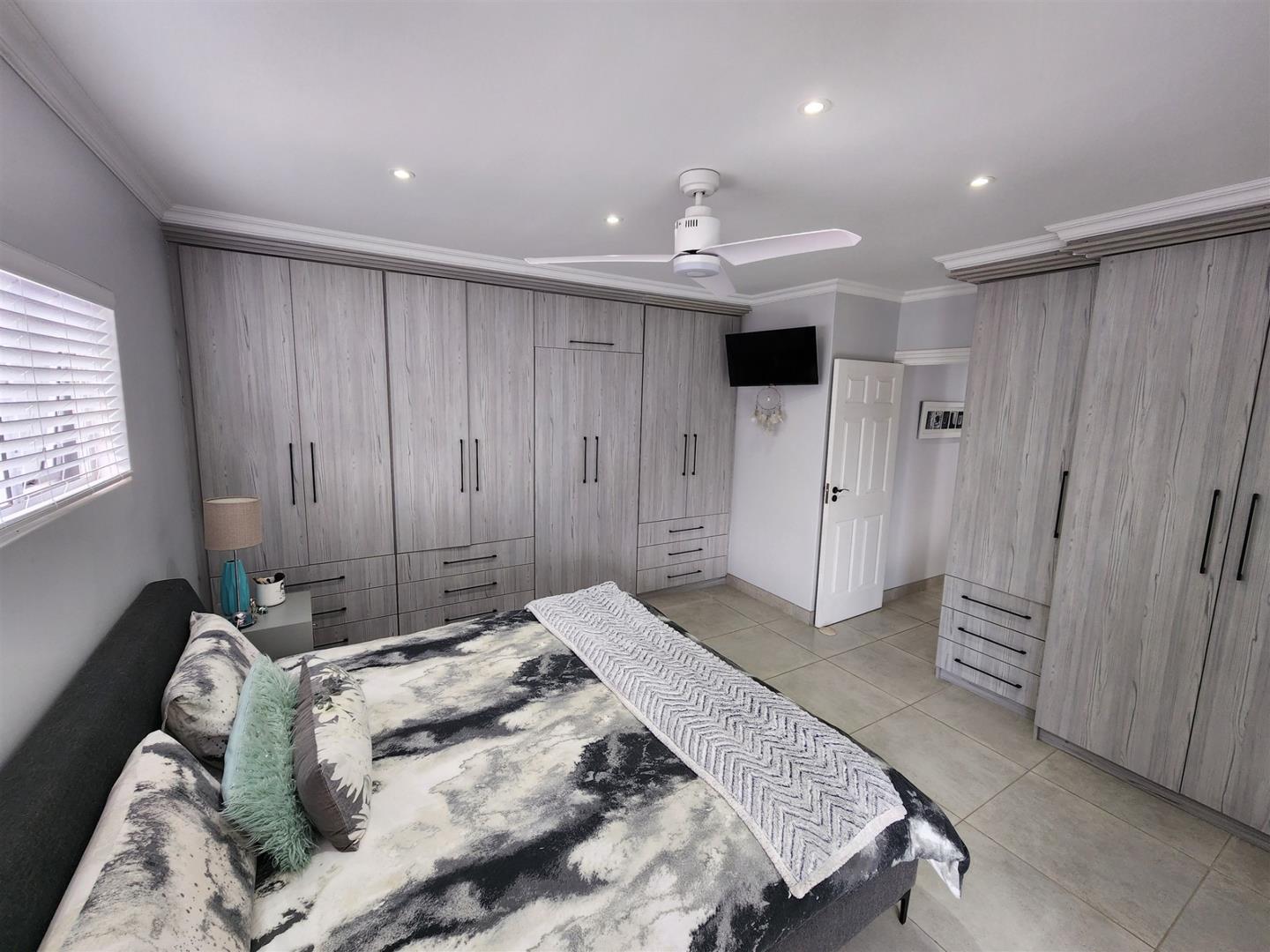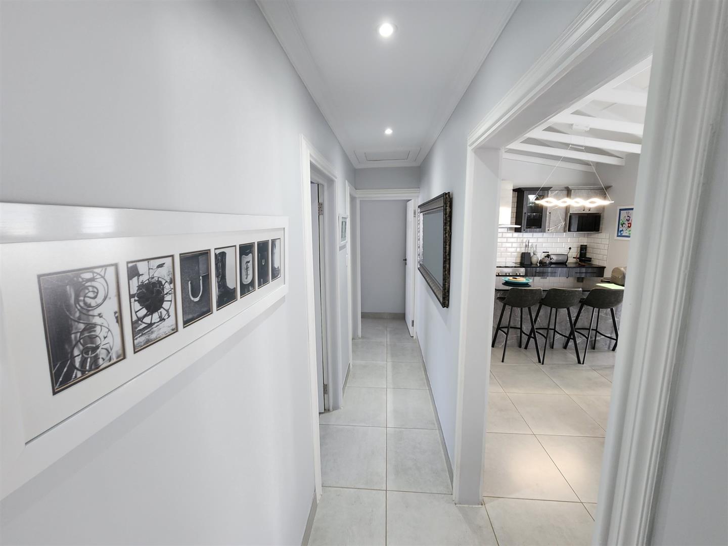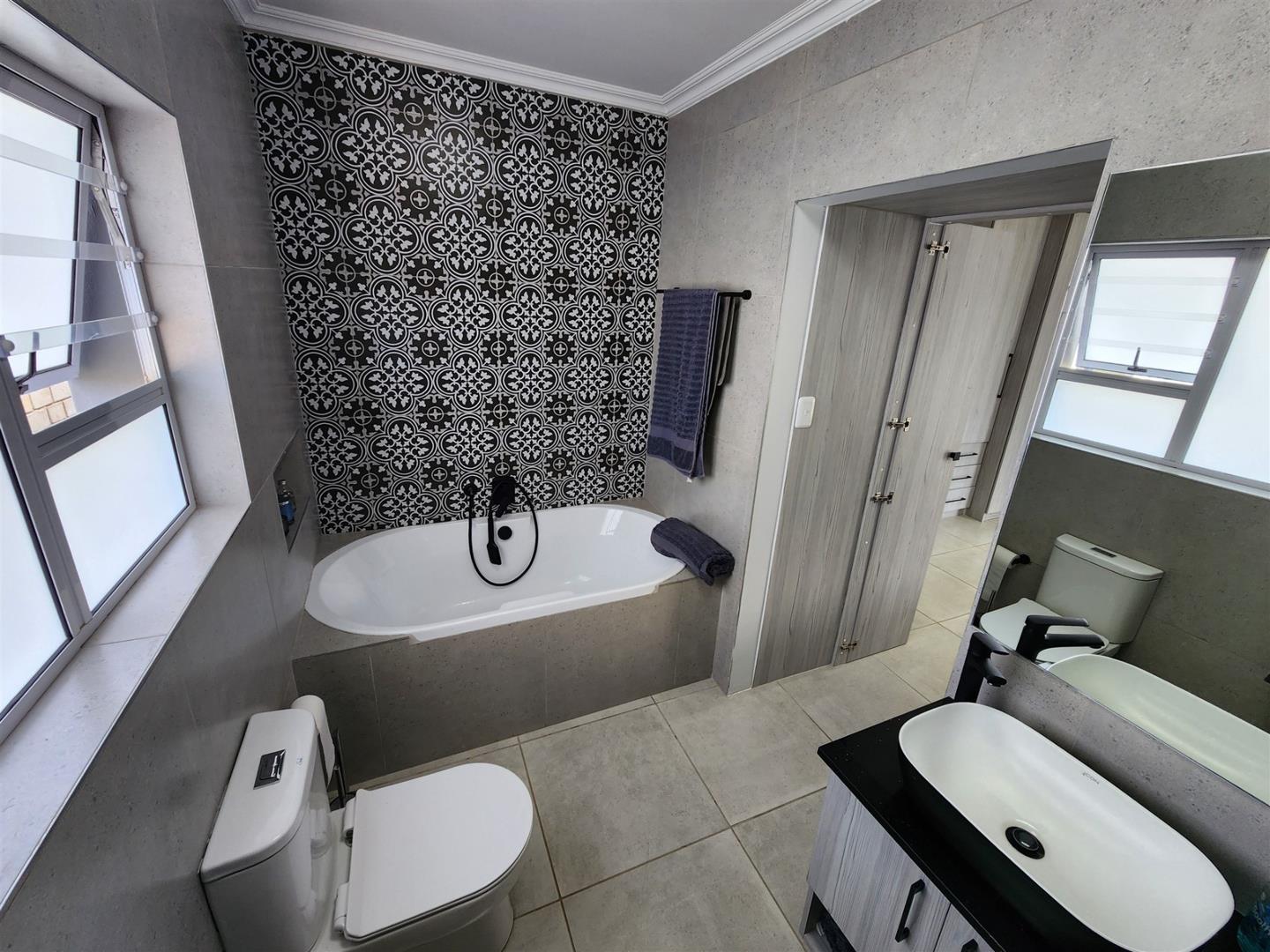 The three large bedrooms and two bathrooms (MES), flows from the dining room area, and the main bedroom as well as the living area, opens up into the large enclosed patio with built-in braai and sliding doors into the back garden and the swimming pool.