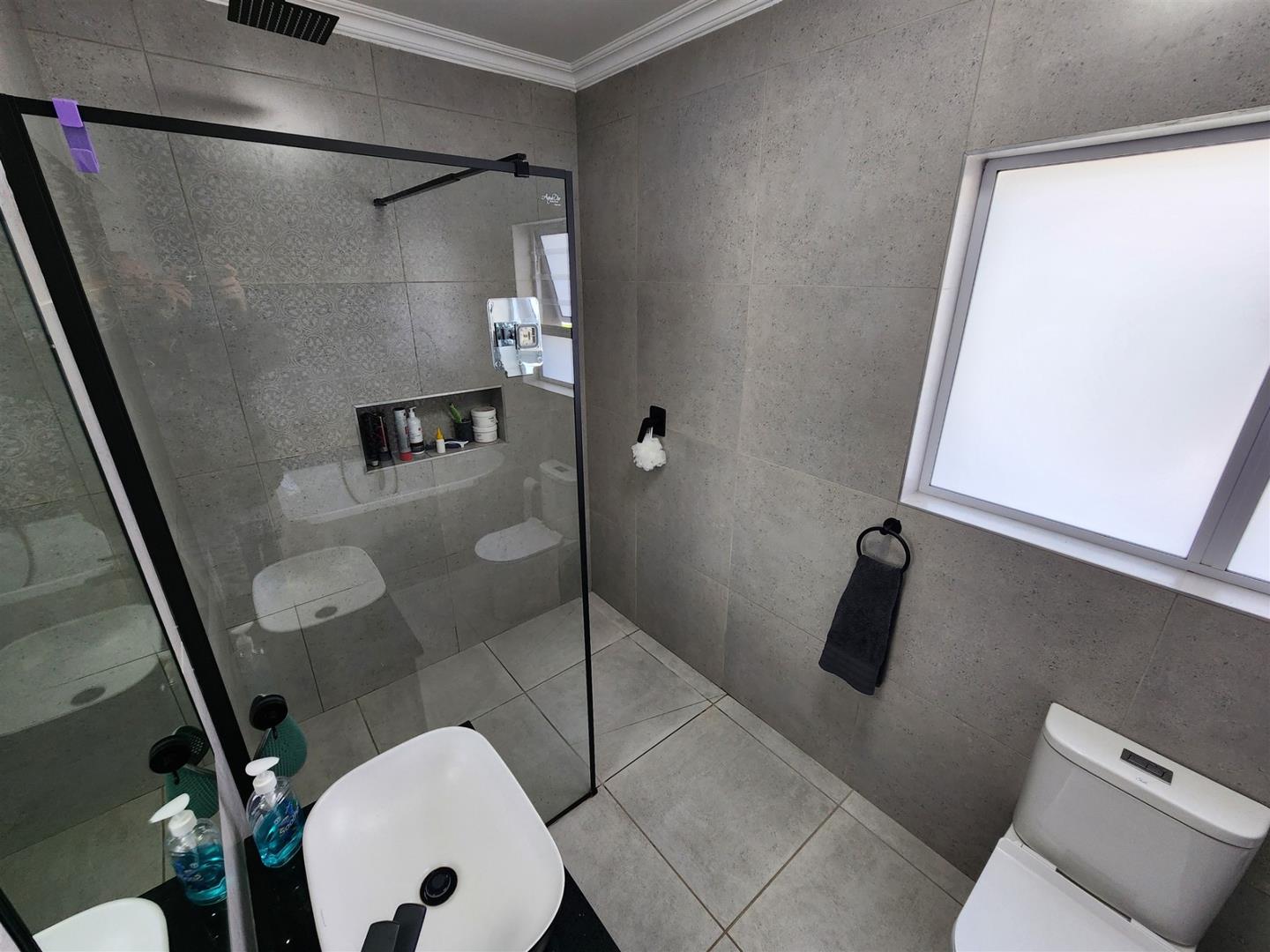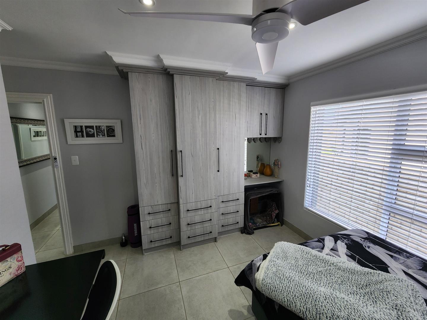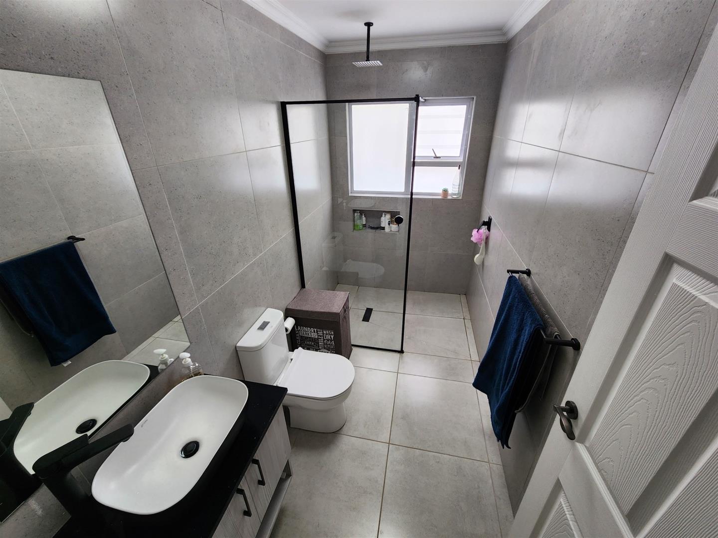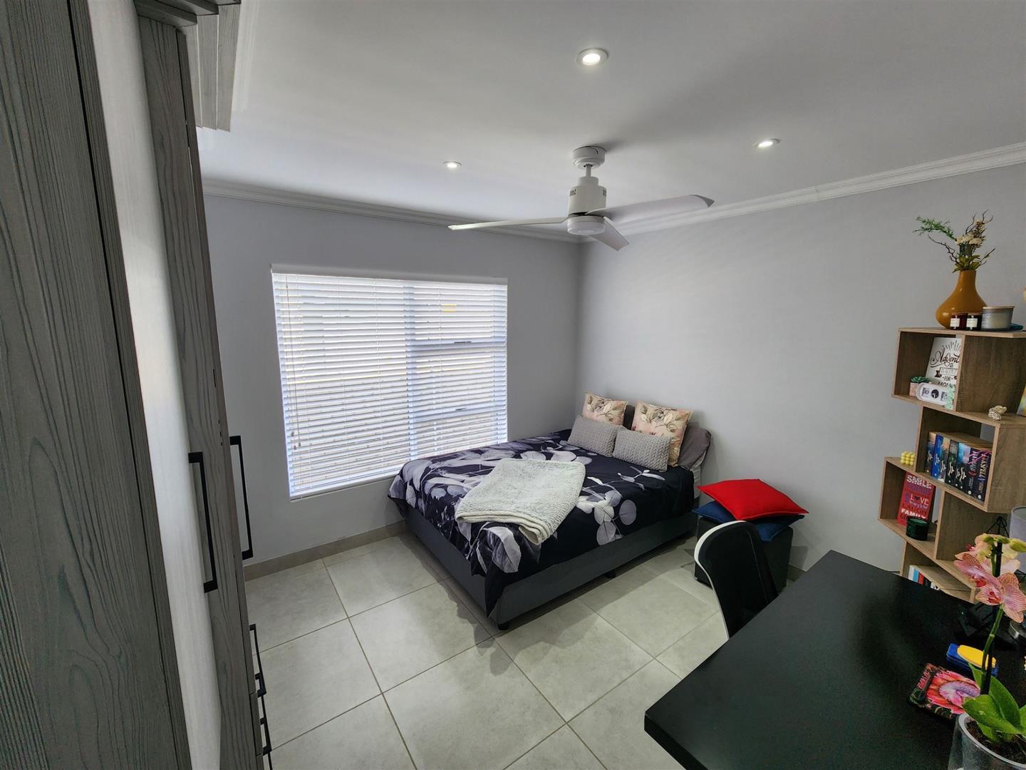 The three large bedrooms and two bathrooms (MES), flows from the dining room area, and the main bedroom as well as the living area, opens up into the large enclosed patio with built-in braai and sliding doors into the back garden and the swimming pool.