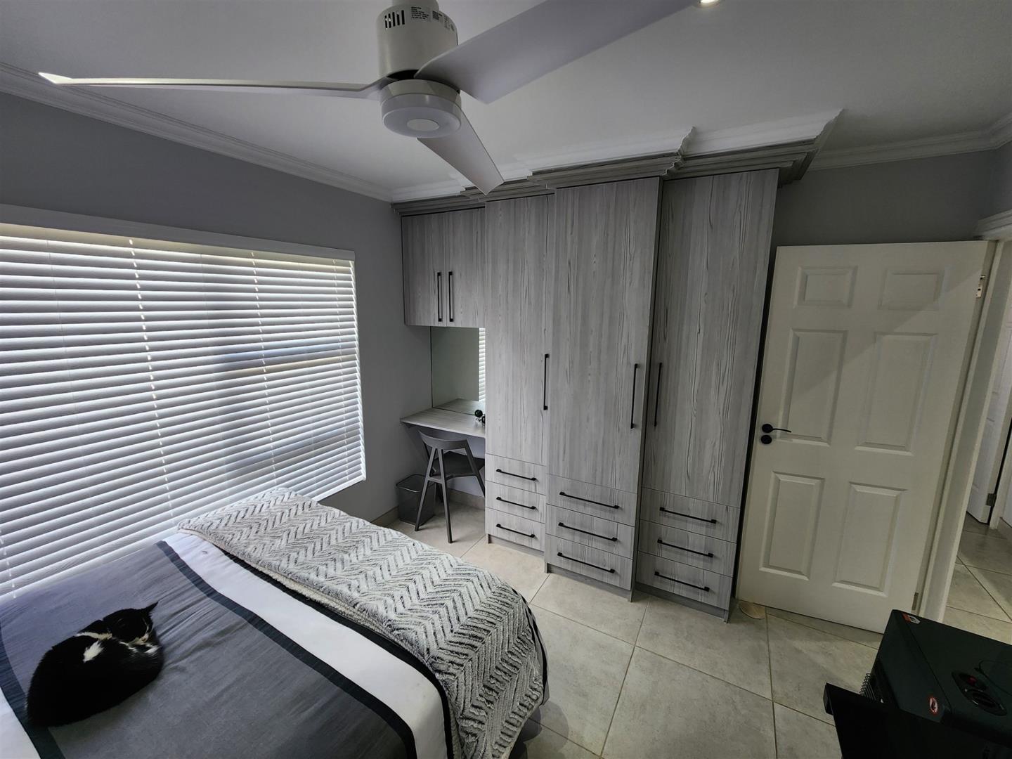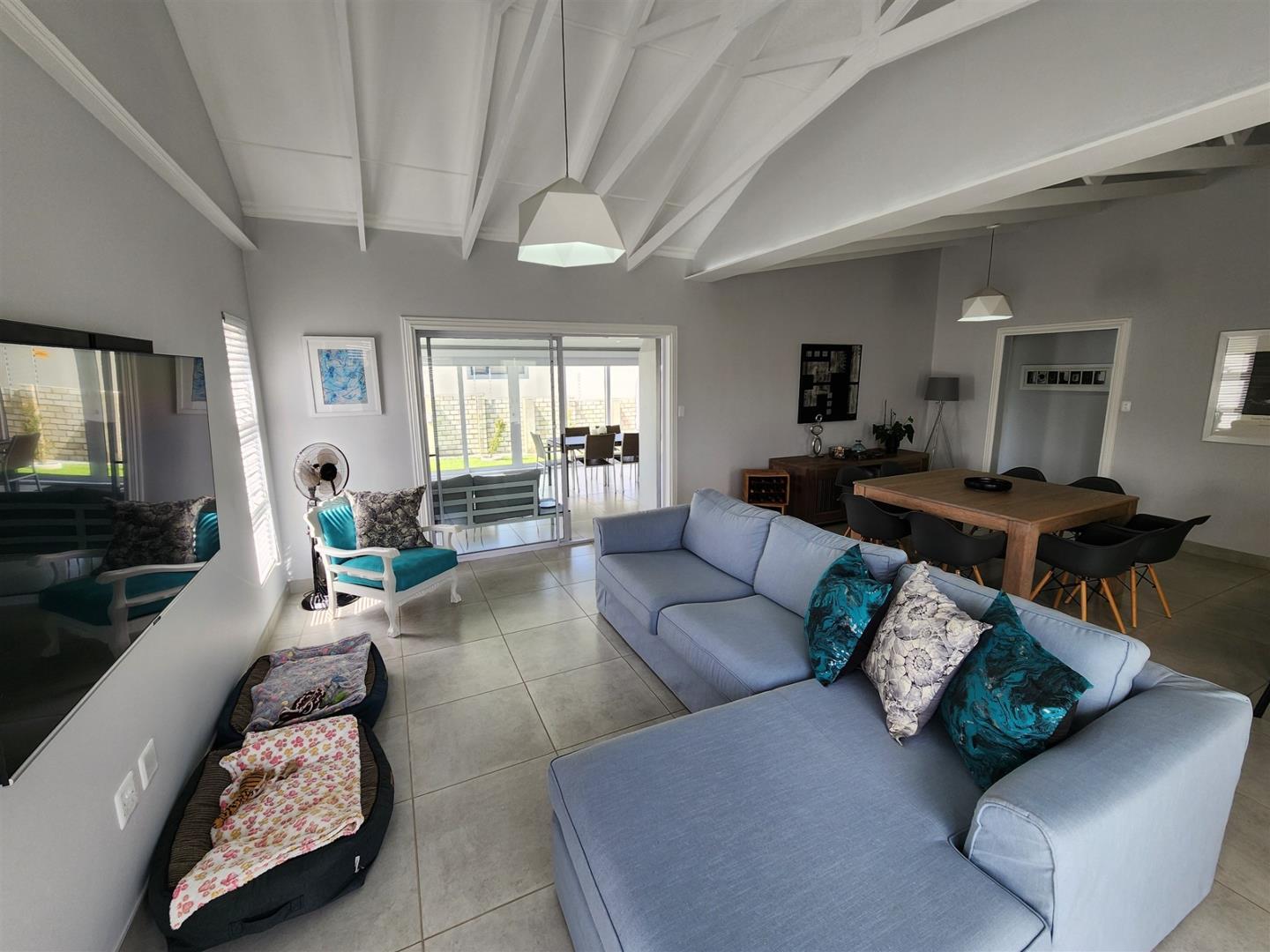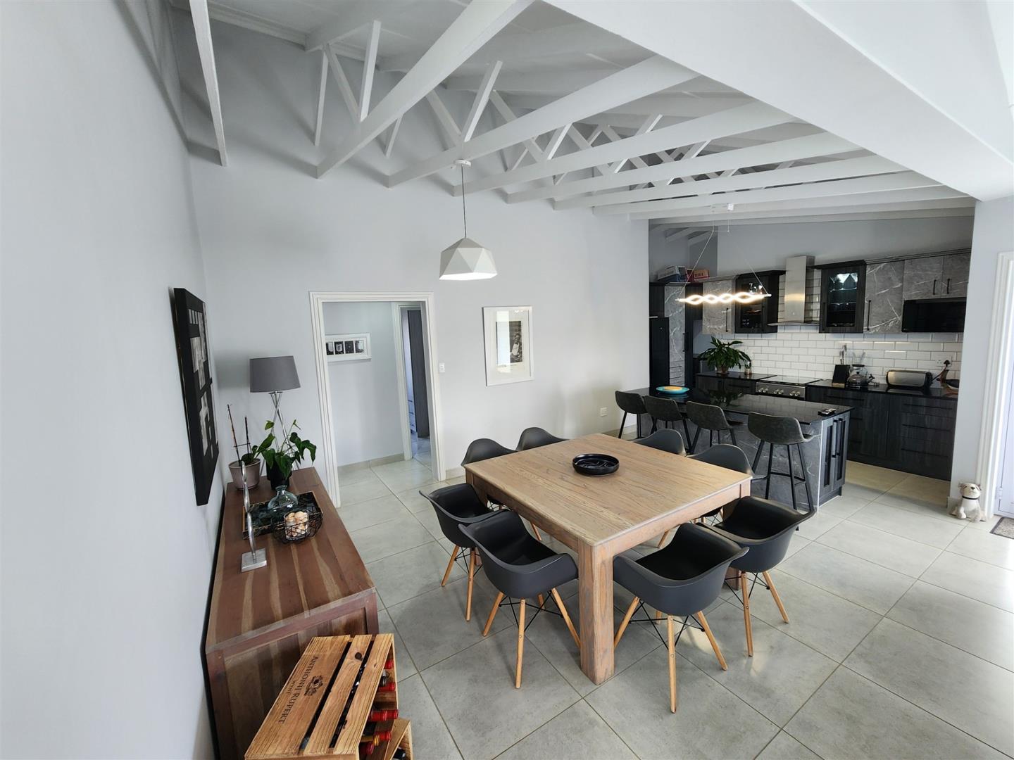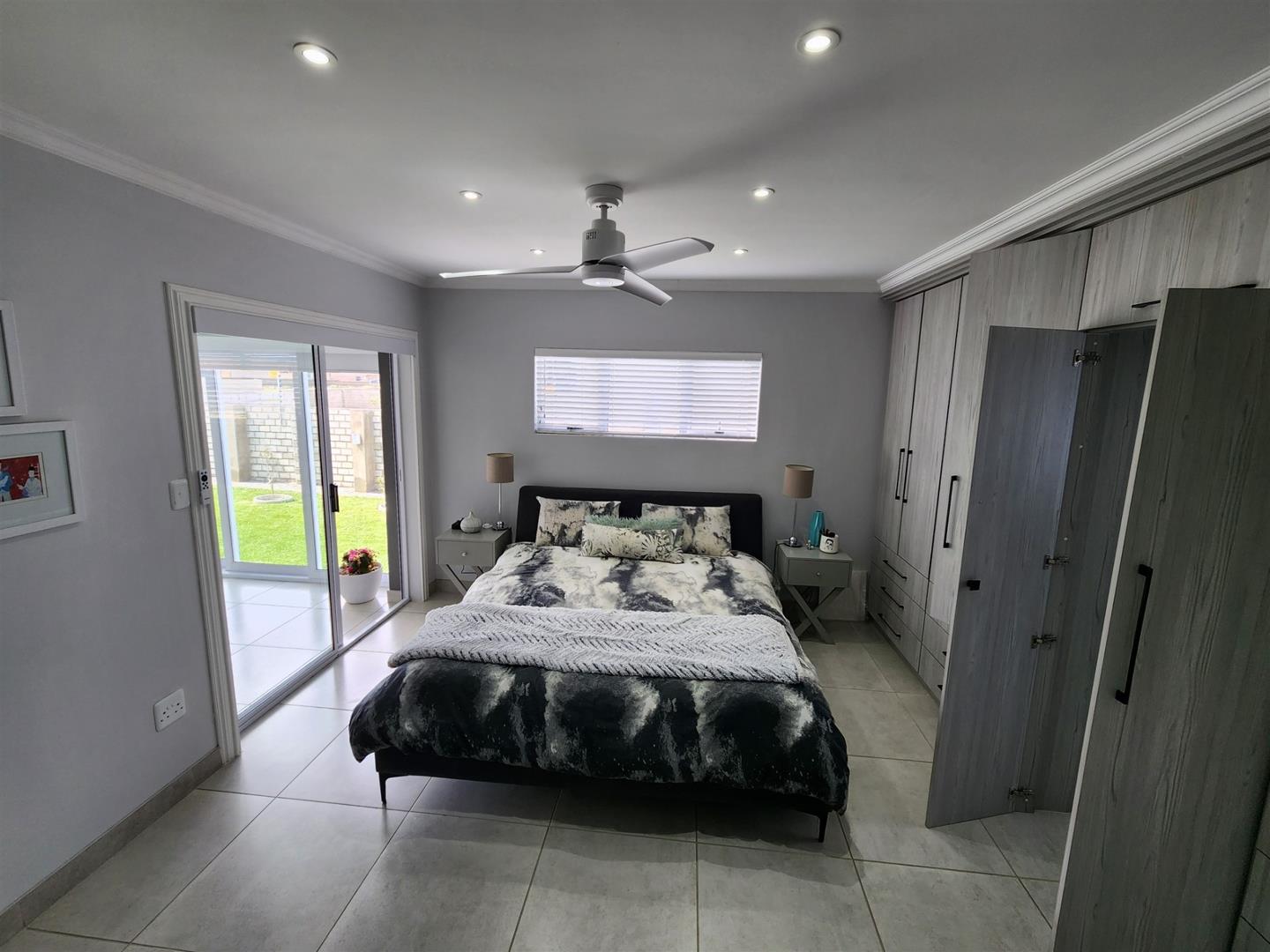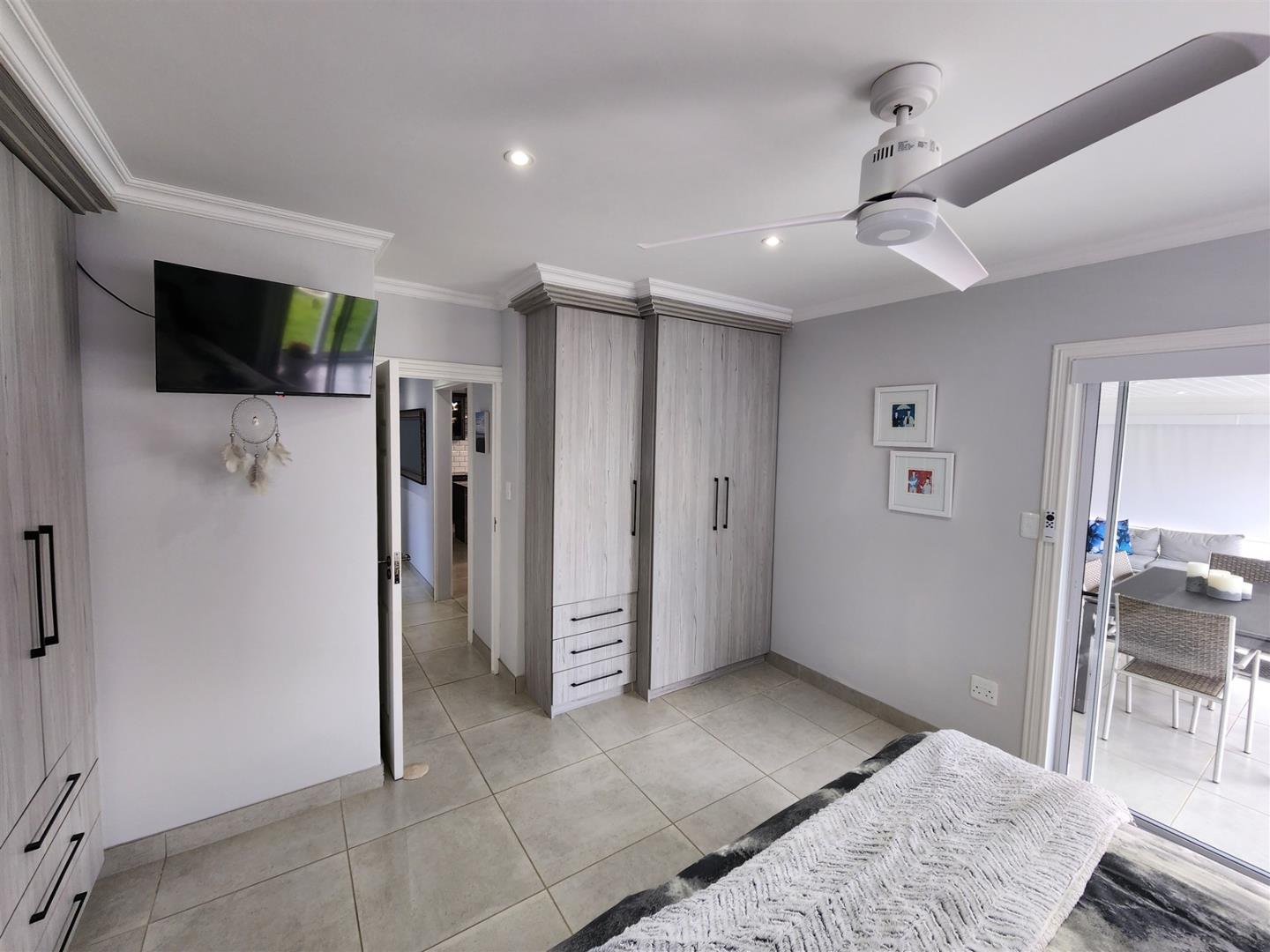The three large bedrooms and two bathrooms (MES), flows from the dining room area, and the main bedroom as well as the living area, opens up into the large enclosed patio with built-in braai and sliding doors into the back garden and the swimming pool.