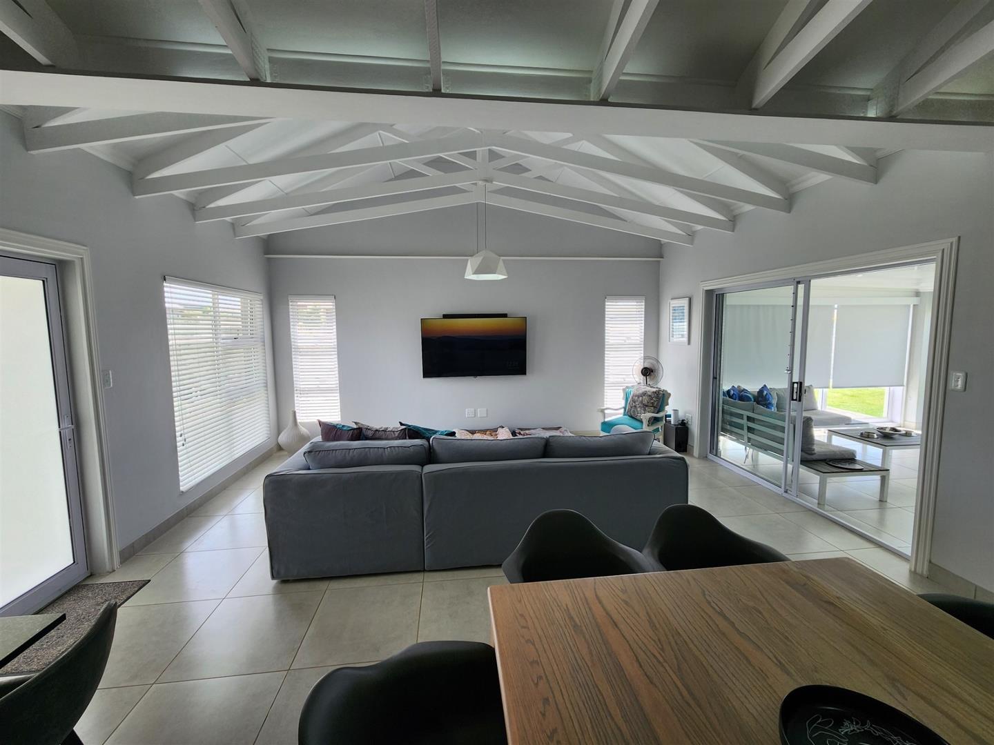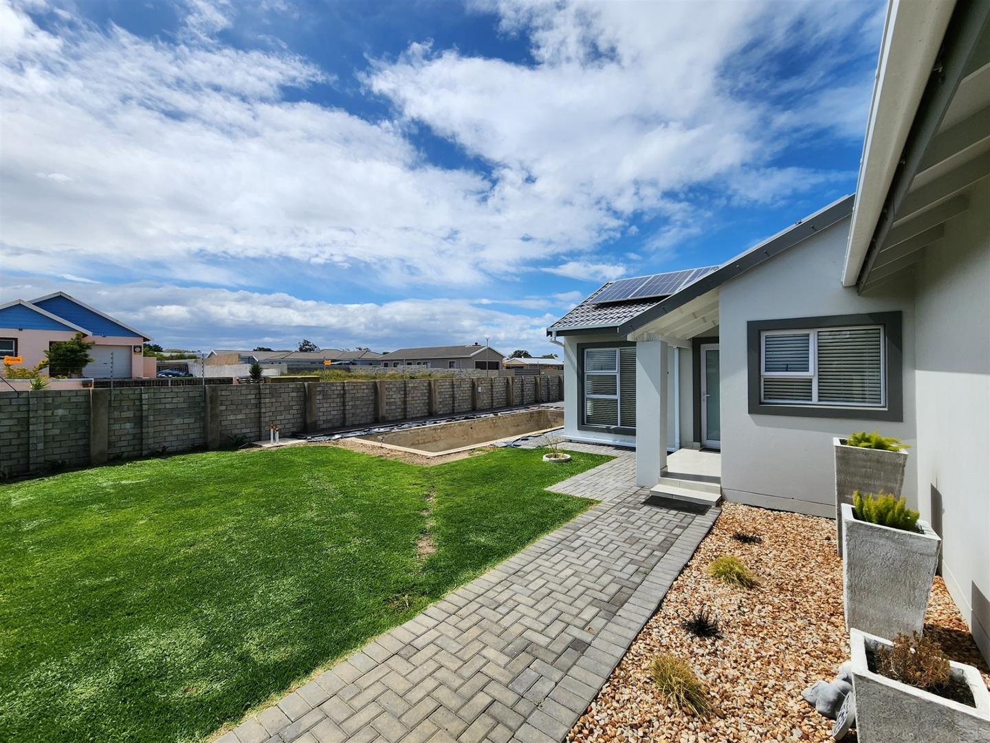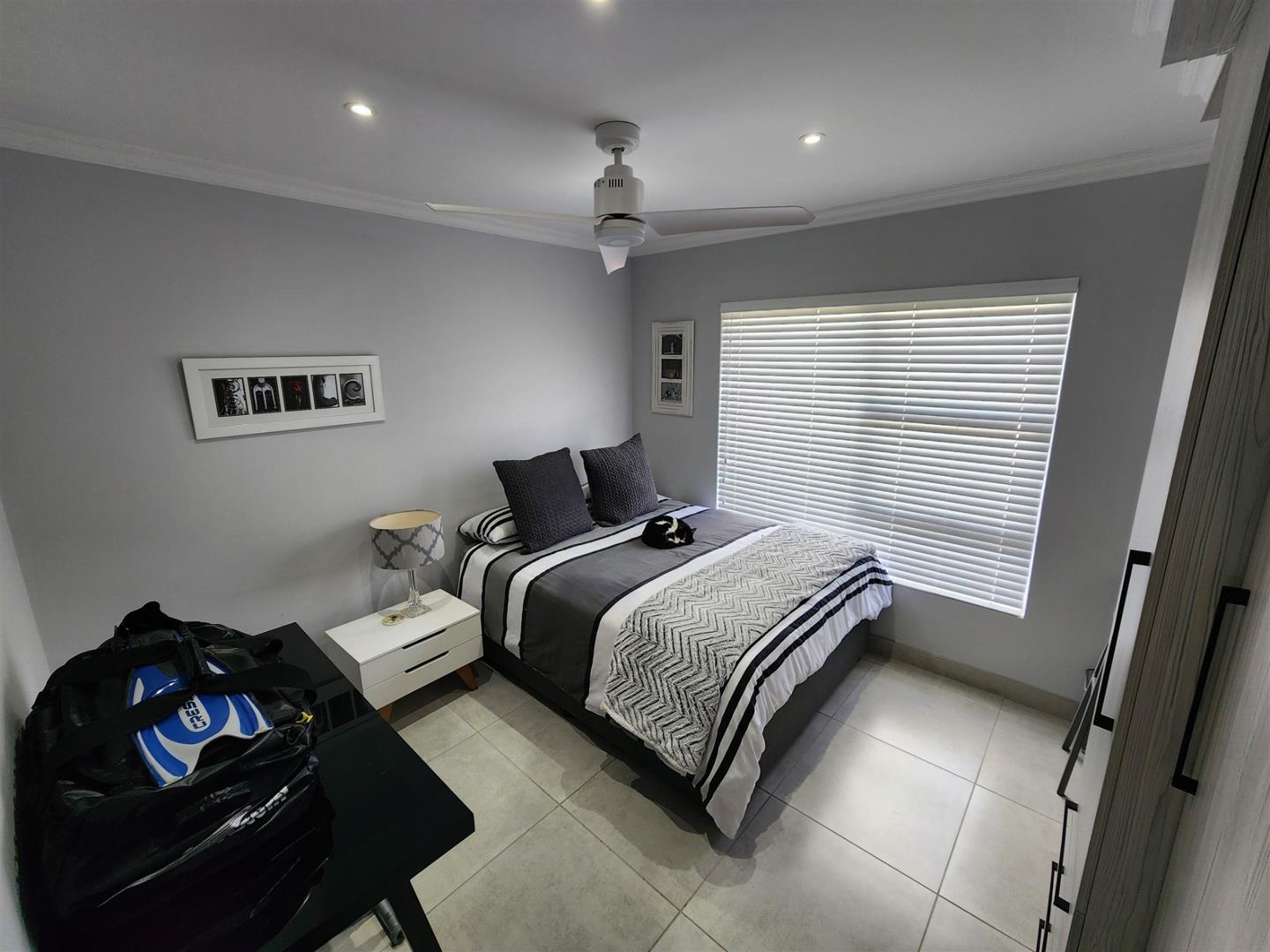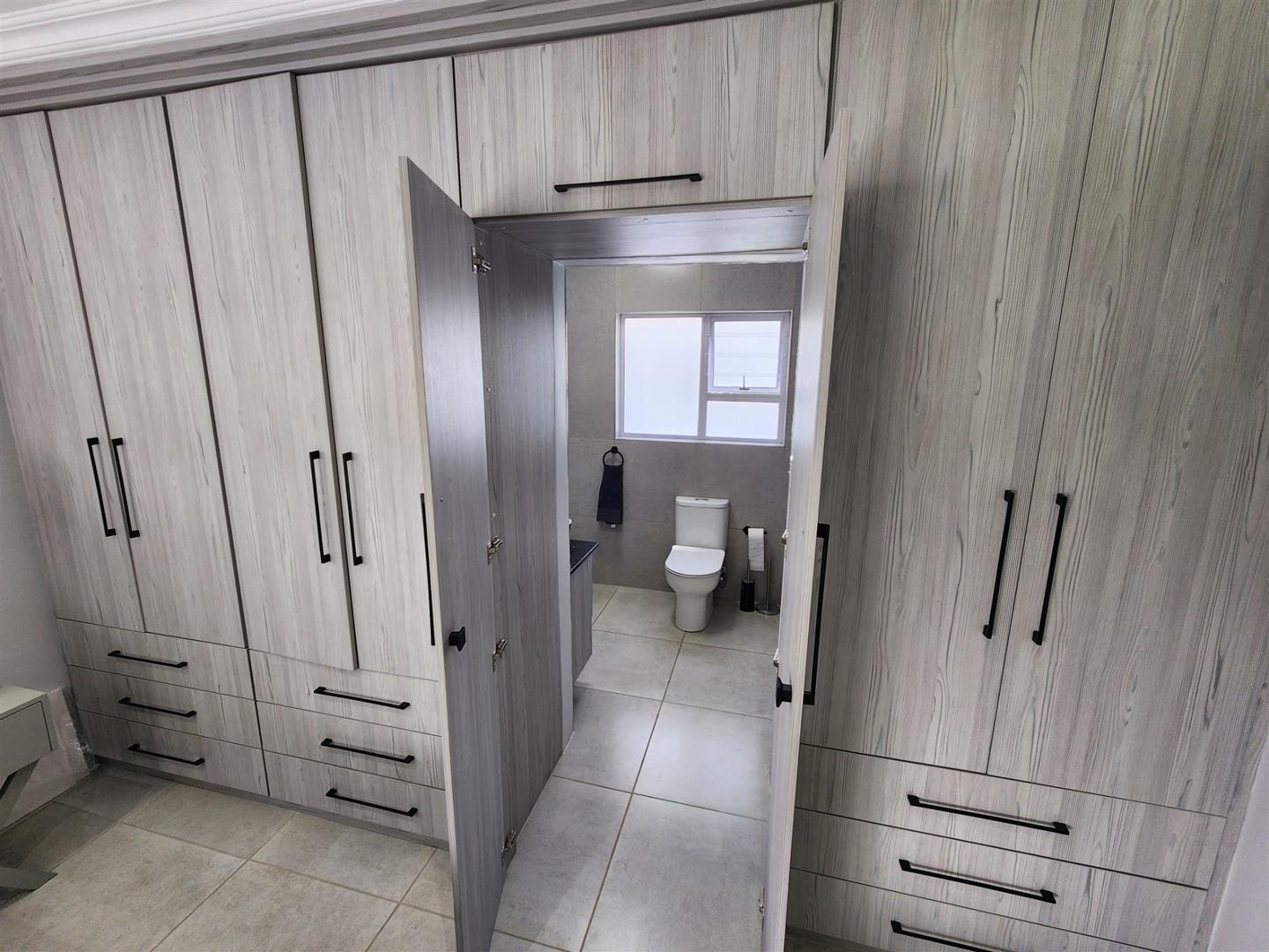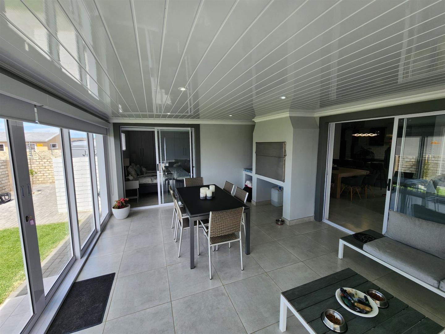 The three large bedrooms and two bathrooms (MES), flows from the dining room area, and the main bedroom as well as the living area, opens up into the large enclosed patio with built-in braai and sliding doors into the back garden and the swimming pool.