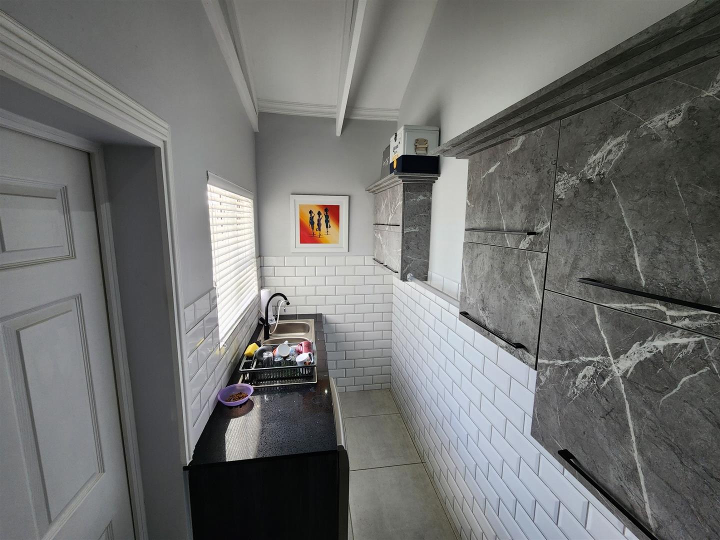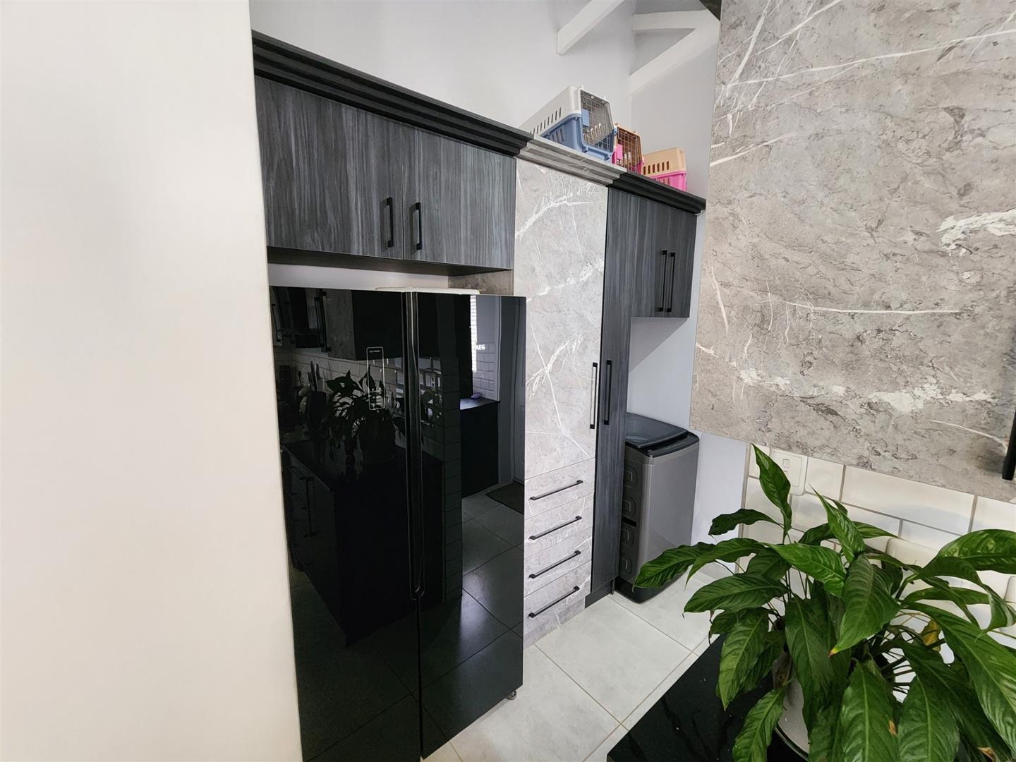 The double garage houses the gas geysers for the bathrooms and kitchen, with a motorised door and ample space.