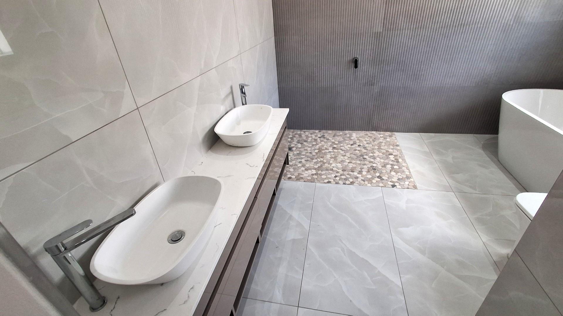 Additional features include a double automated garage with direct access, quality flooring combining tiles and vinyl, a heat pump geyser for energy efficiency, and a fully walled stand with automated entrance gate for added security and privacy.