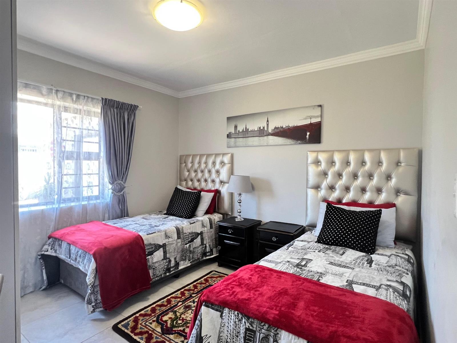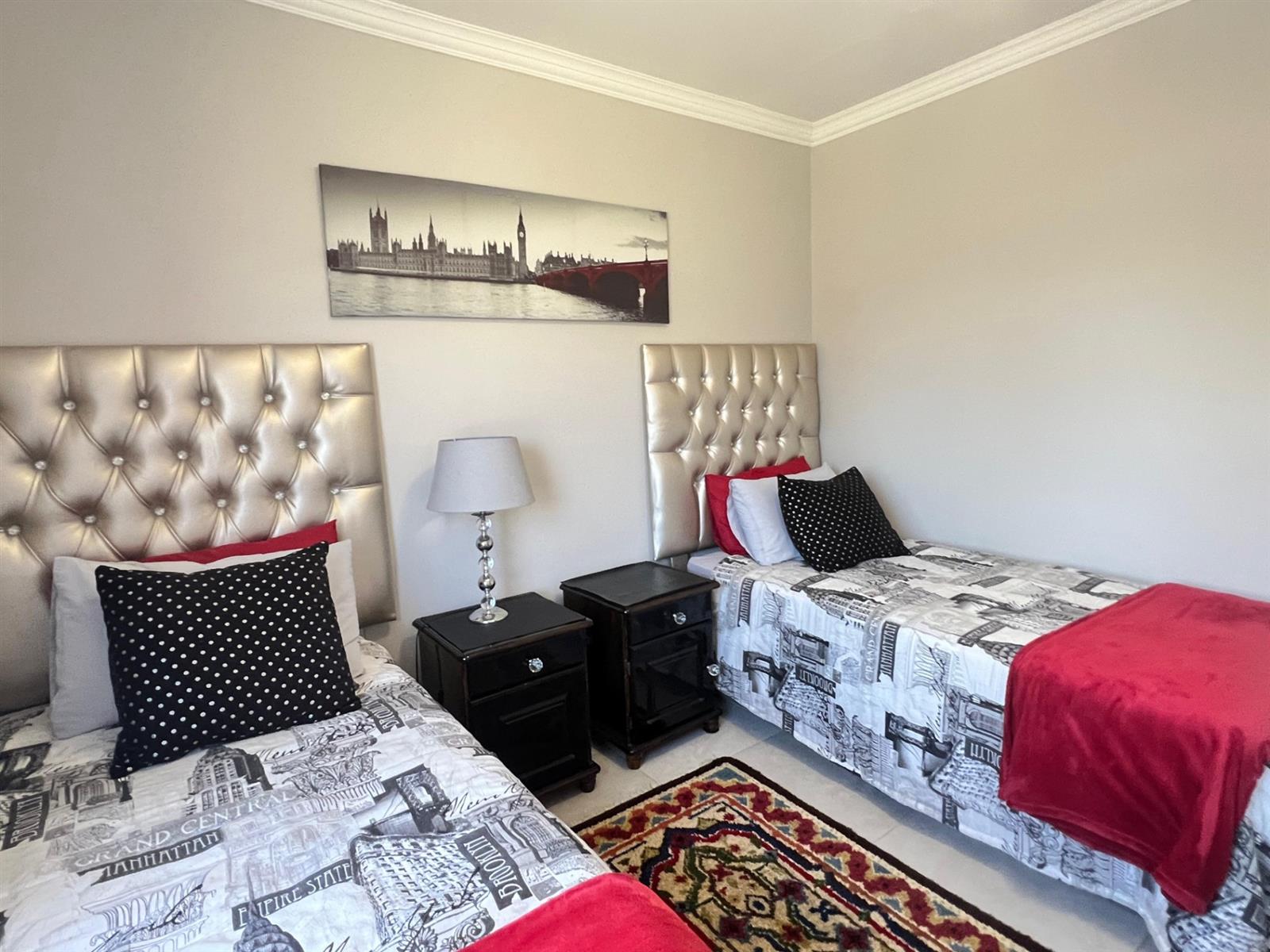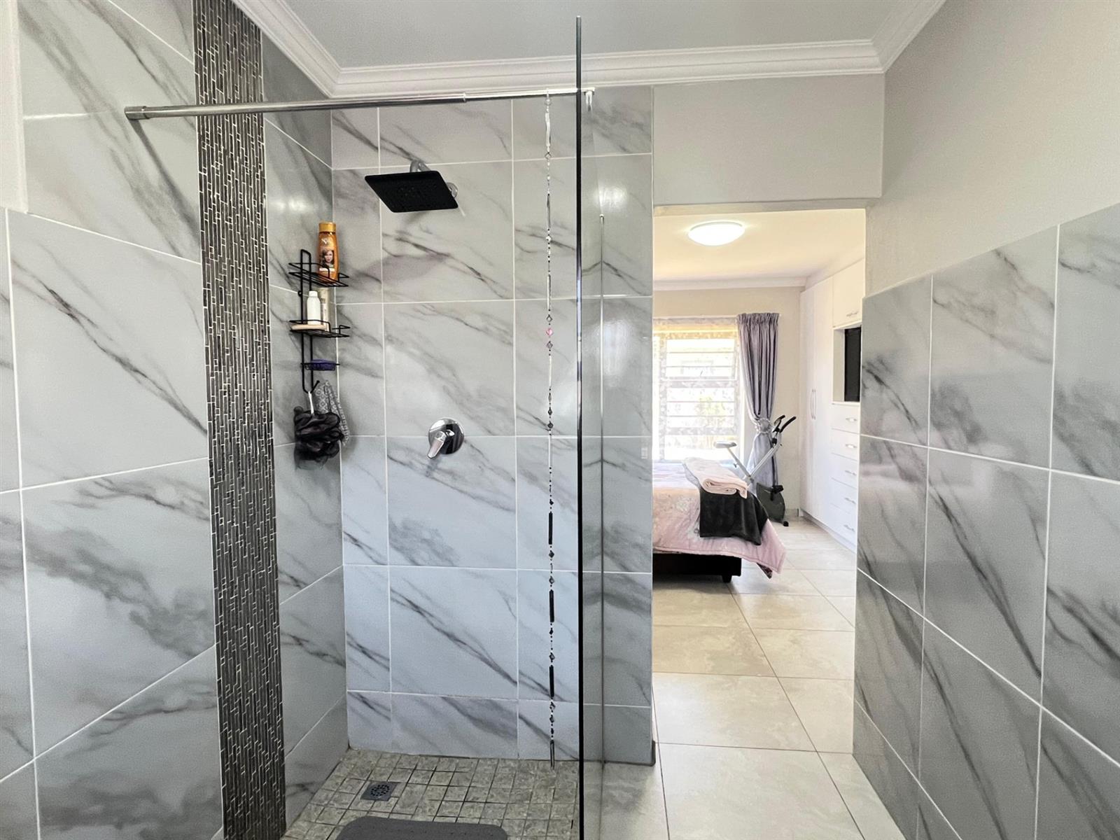 A gas geyser services the scullery, while an electric geyser supplies the two bathrooms, ensuring efficiency and convenience.