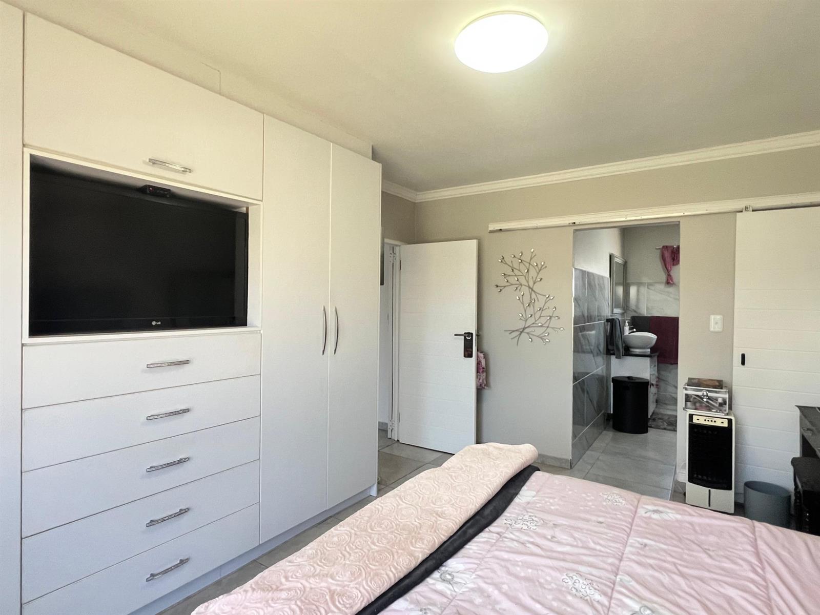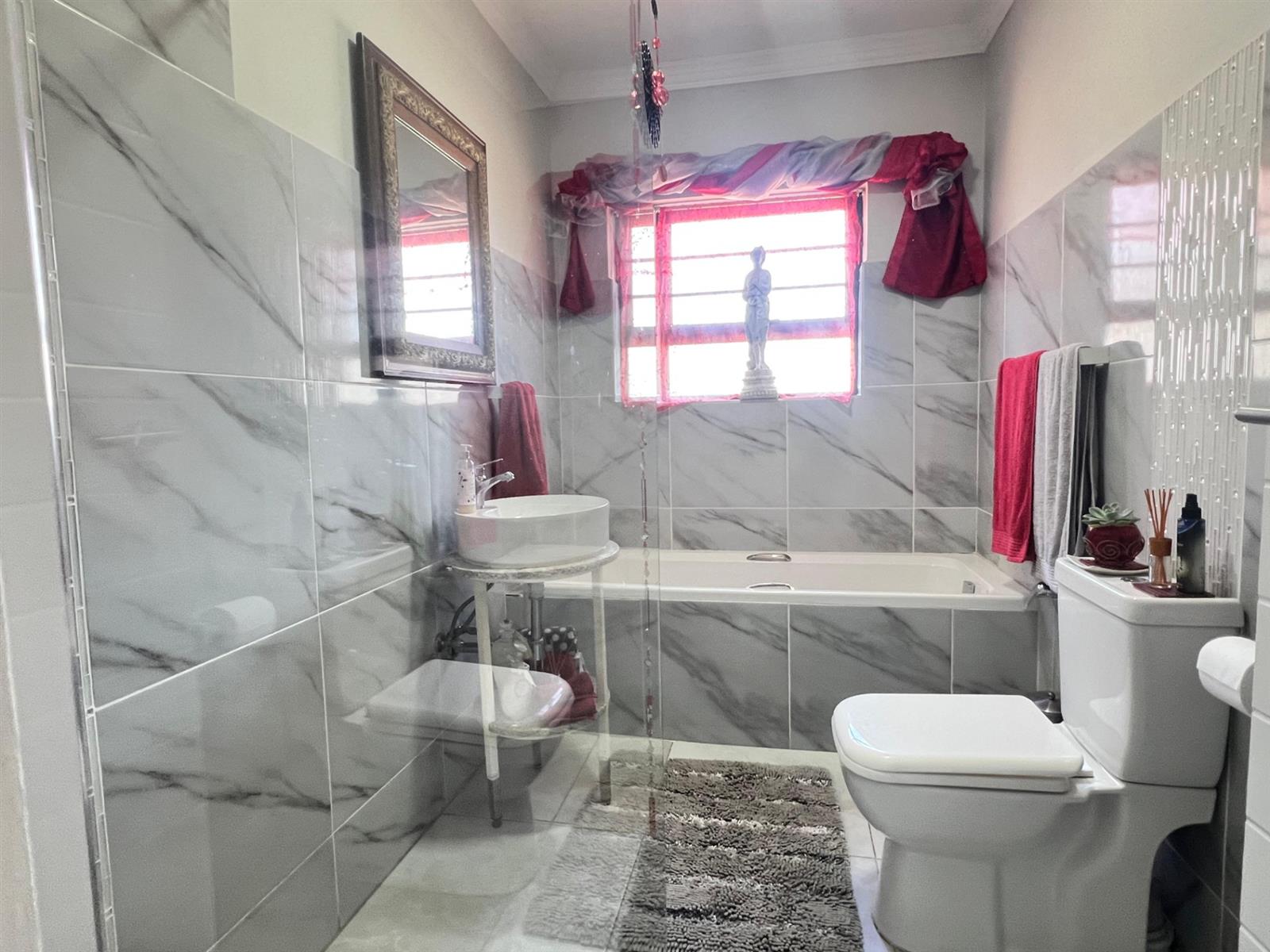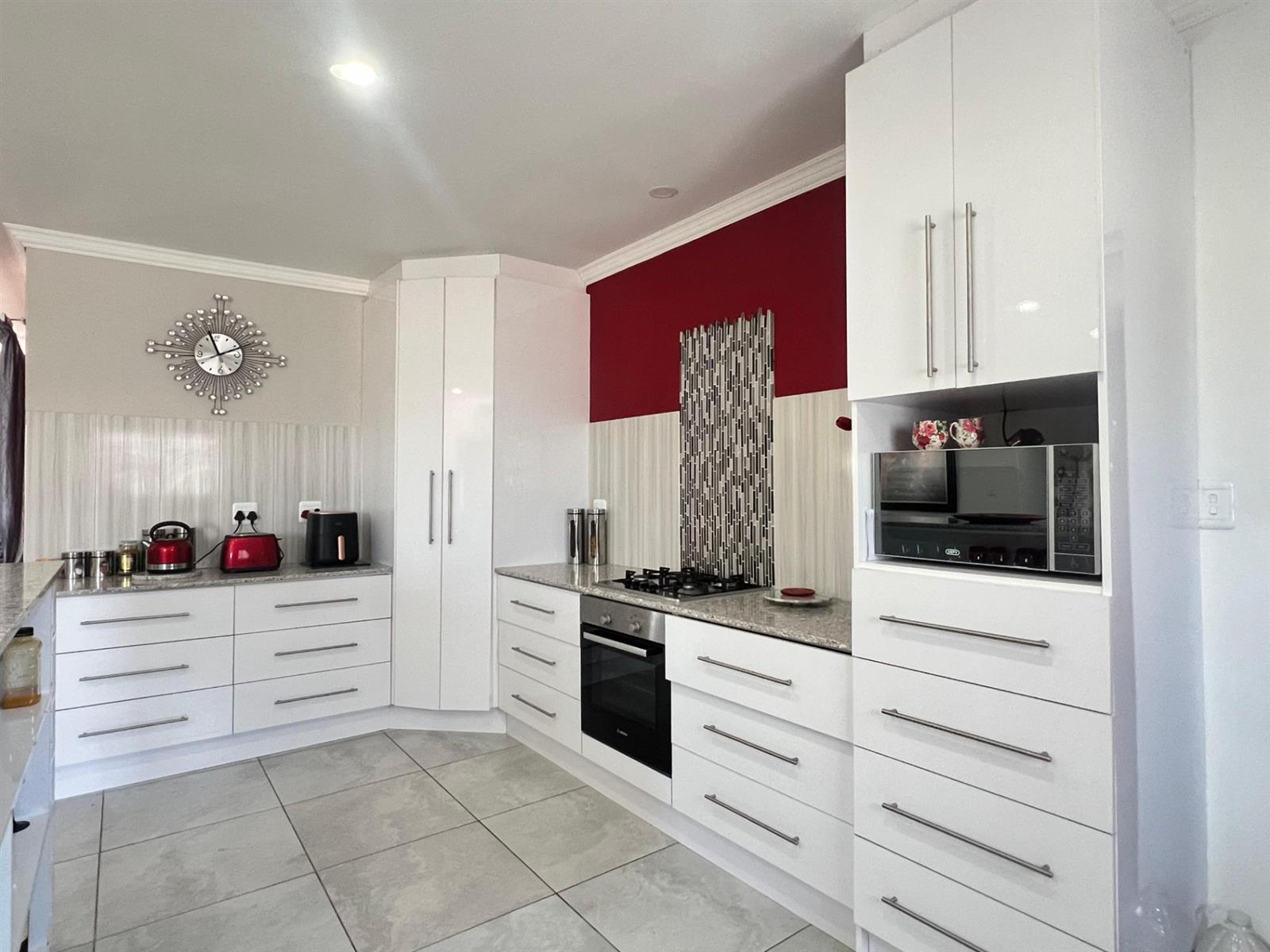 A gas geyser services the scullery, while an electric geyser supplies the two bathrooms, ensuring efficiency and convenience.