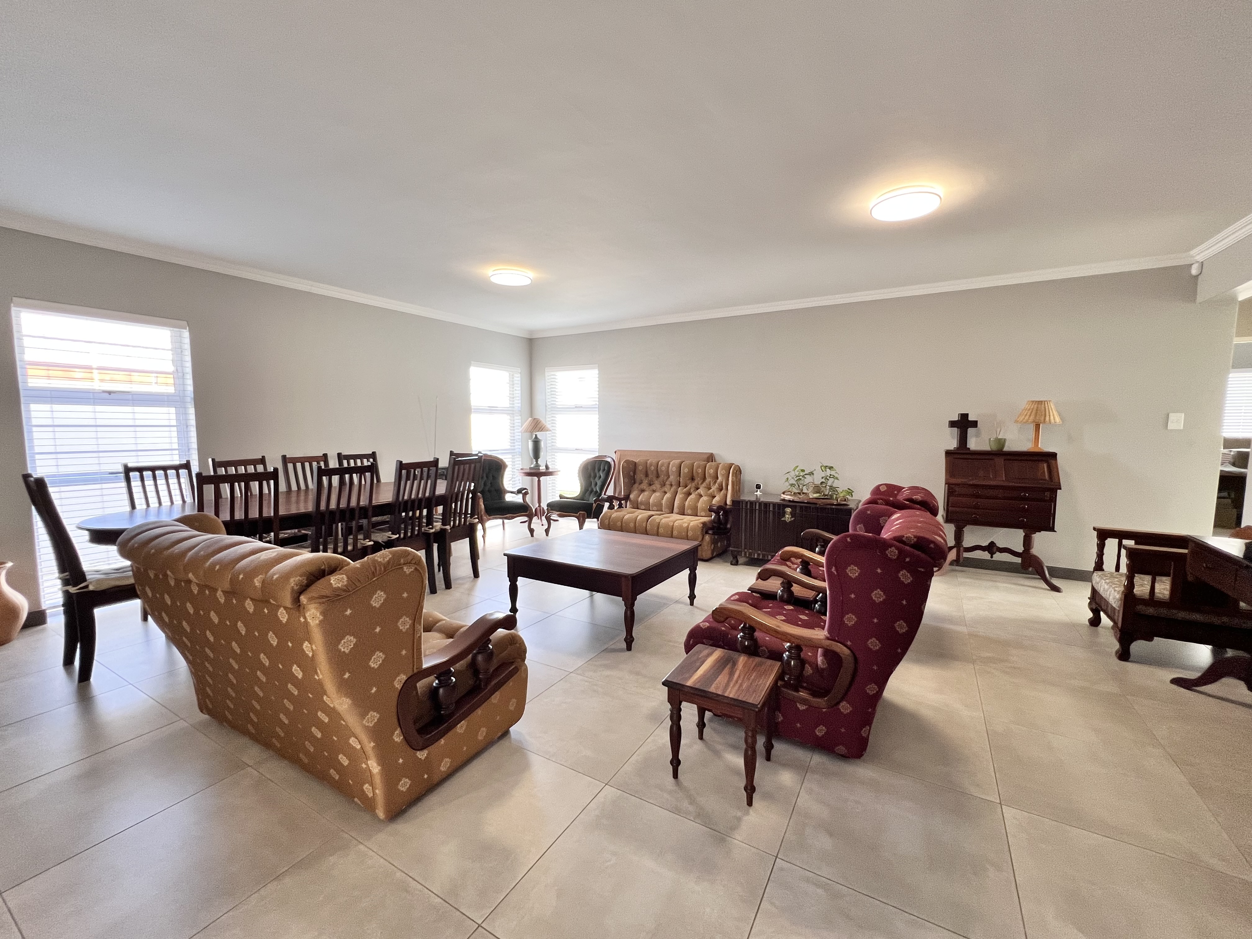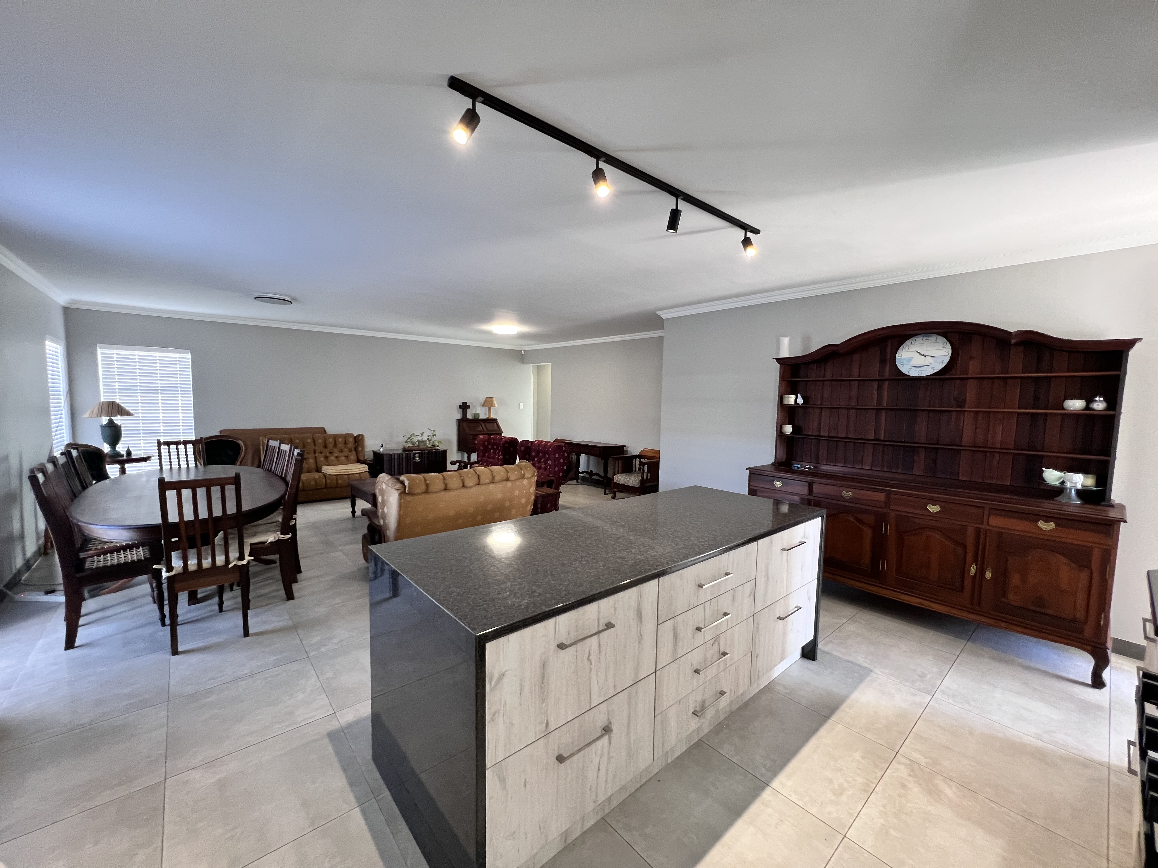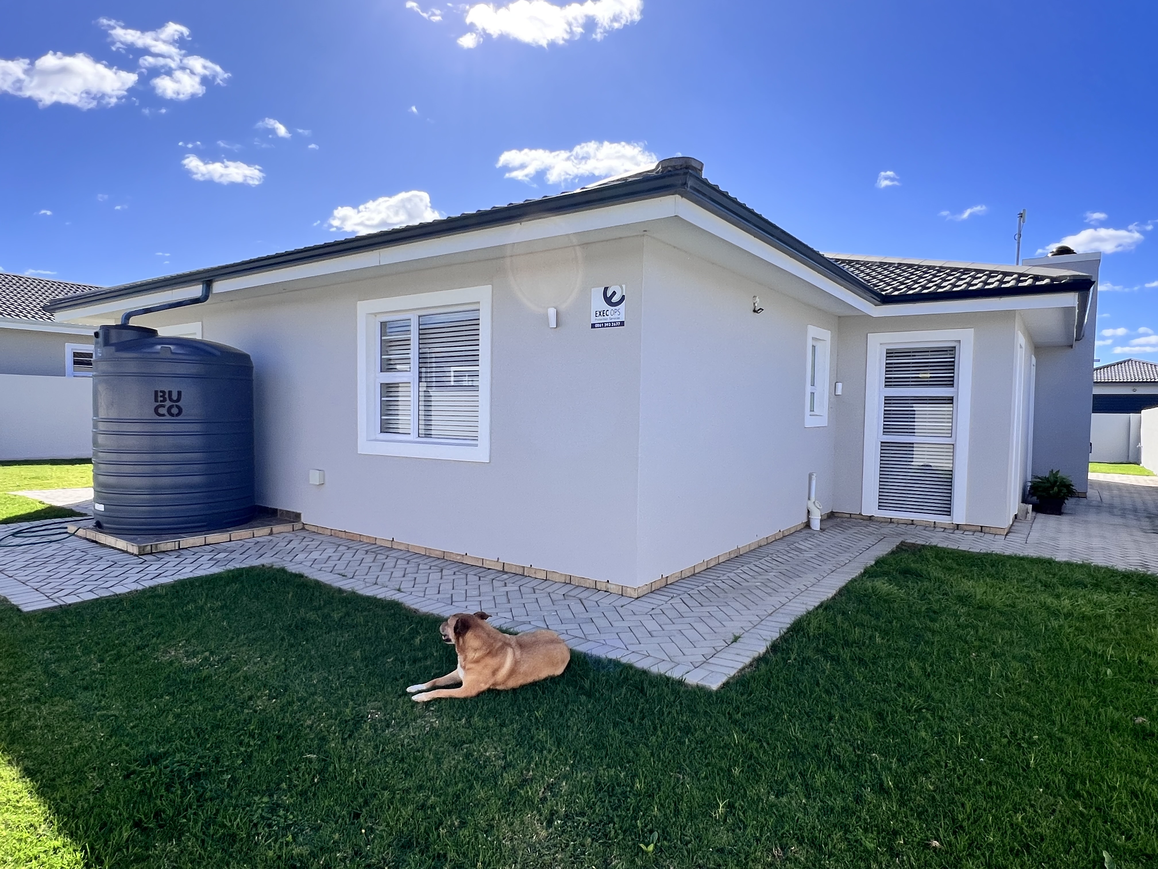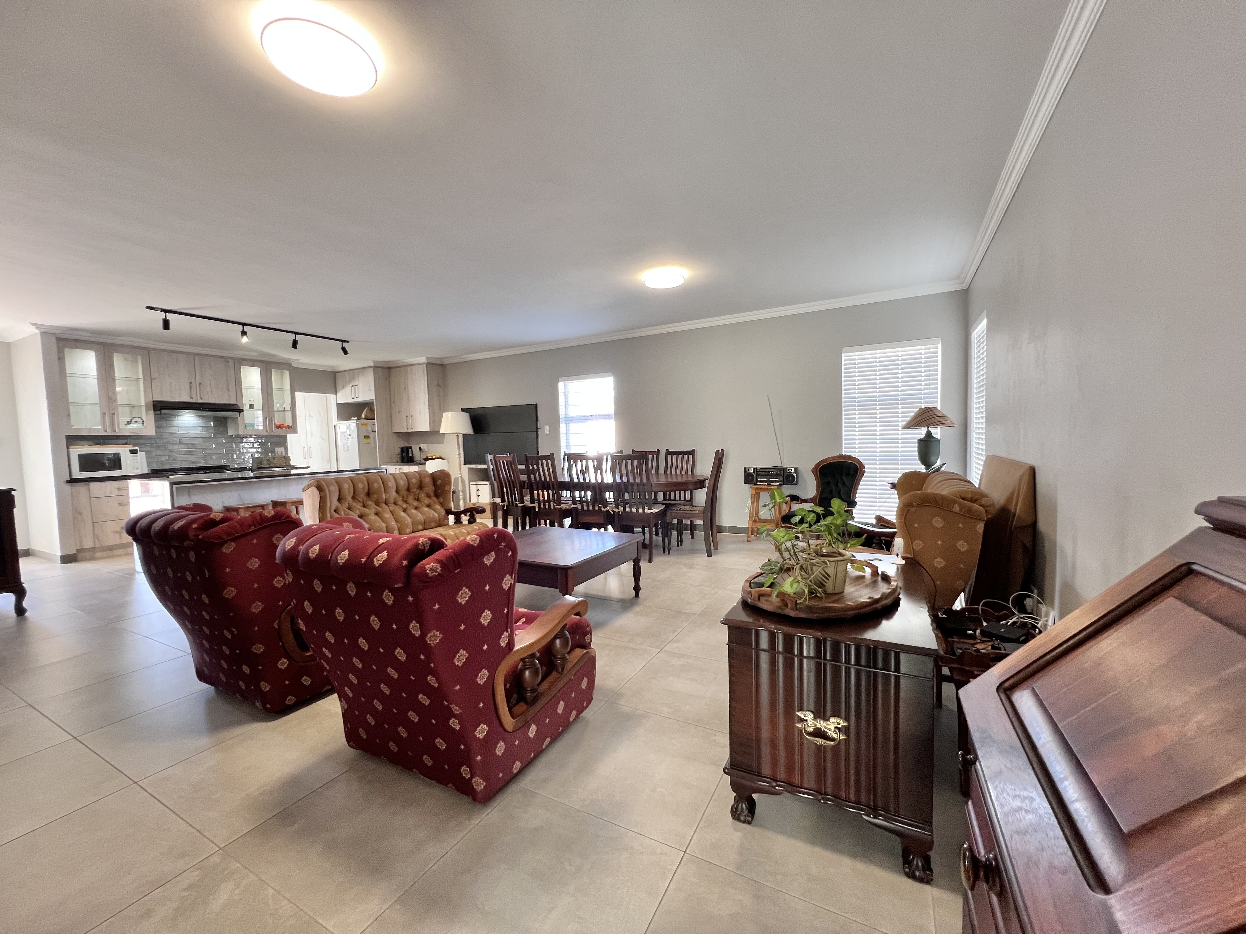 This open floor plan property is located in a popular street and offers easy access to all major routes in and out of town. The front entrance, secure with trellisdoors invites you into the open plan living space including the kitchen, dining and lounge area. A separate spacious scullery has ample built-in cupboards, double sink and door leading to outside, also fitted with trellisdoors. The kitchen is fitted with a loose standing Defy 6-plate gas burner stove (electric oven), modern back splash, centre island and a coffee or bar station nook next to the indoor braai. The bedrooms comfortably fit queen sized extra length beds with enough space for bedside tables. The master comes with an en suite shower, basin and toilet. The two guest bedrooms share a tastefully designed full bathroom. The double automated garage is tiled and is fitted with plumbing for your washing machine.