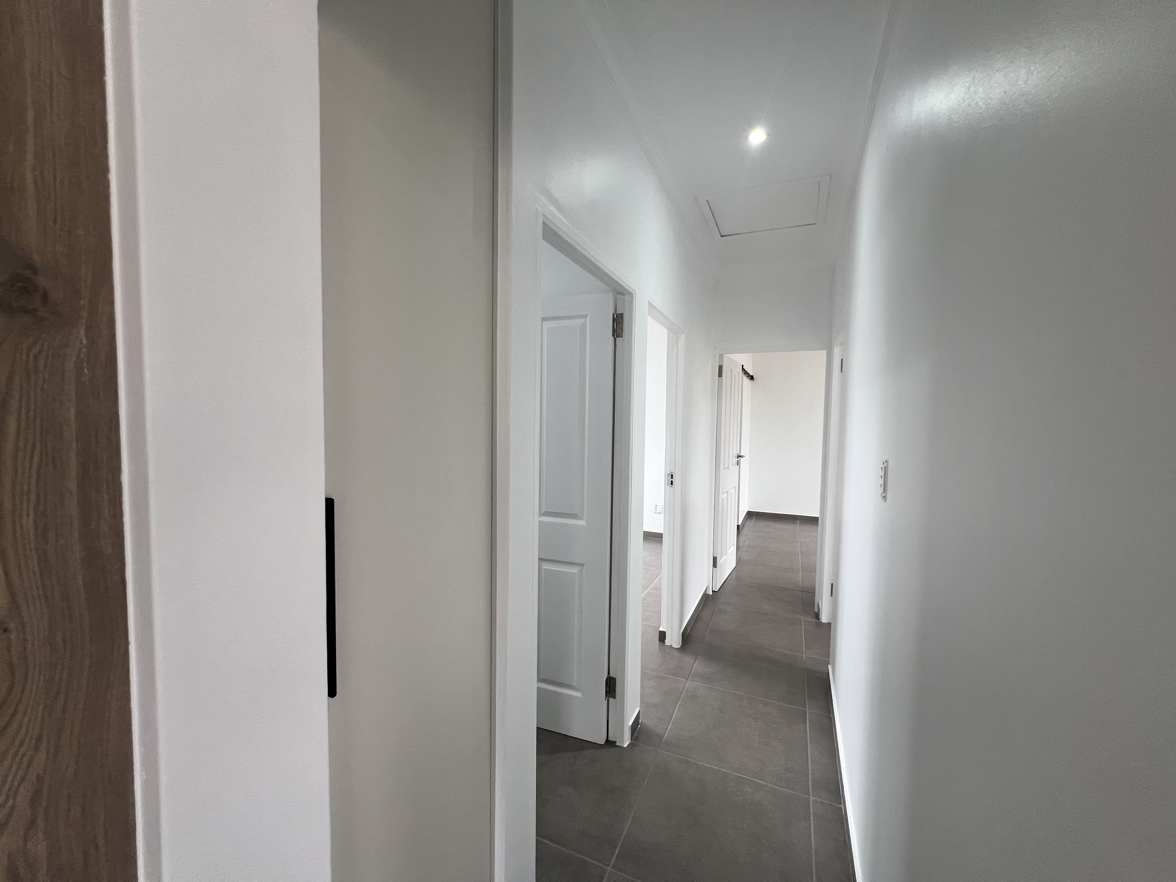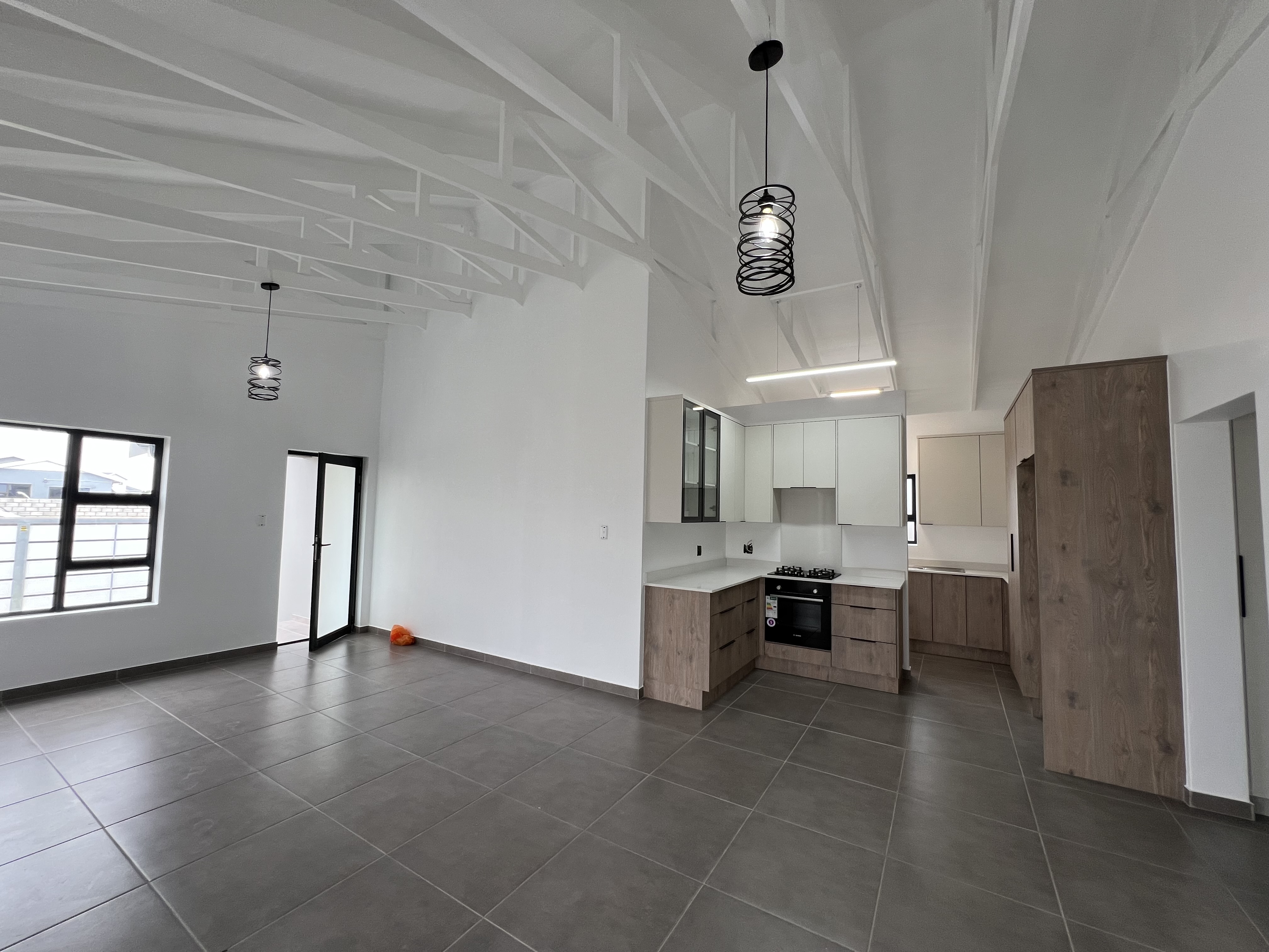 The house offers 3 bedrooms, 2 bathrooms (MES with bath, shower, toilet and basin). The open plan kitchen comes with a separate scullery and steps into the single garage. Plumbing for the washing machine is in the garage.
