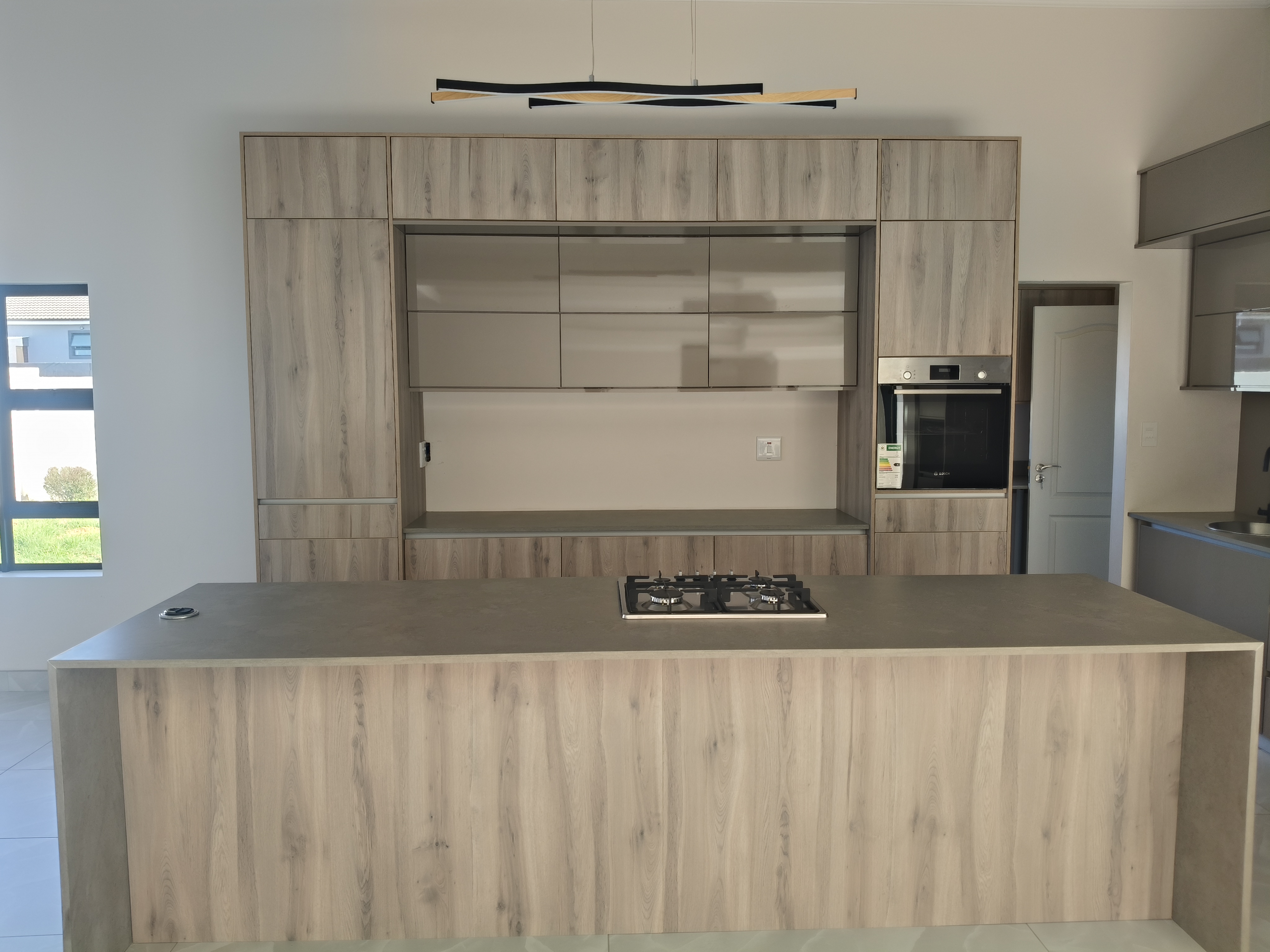 Contemporary kitchen with gas stove and a separate scullery