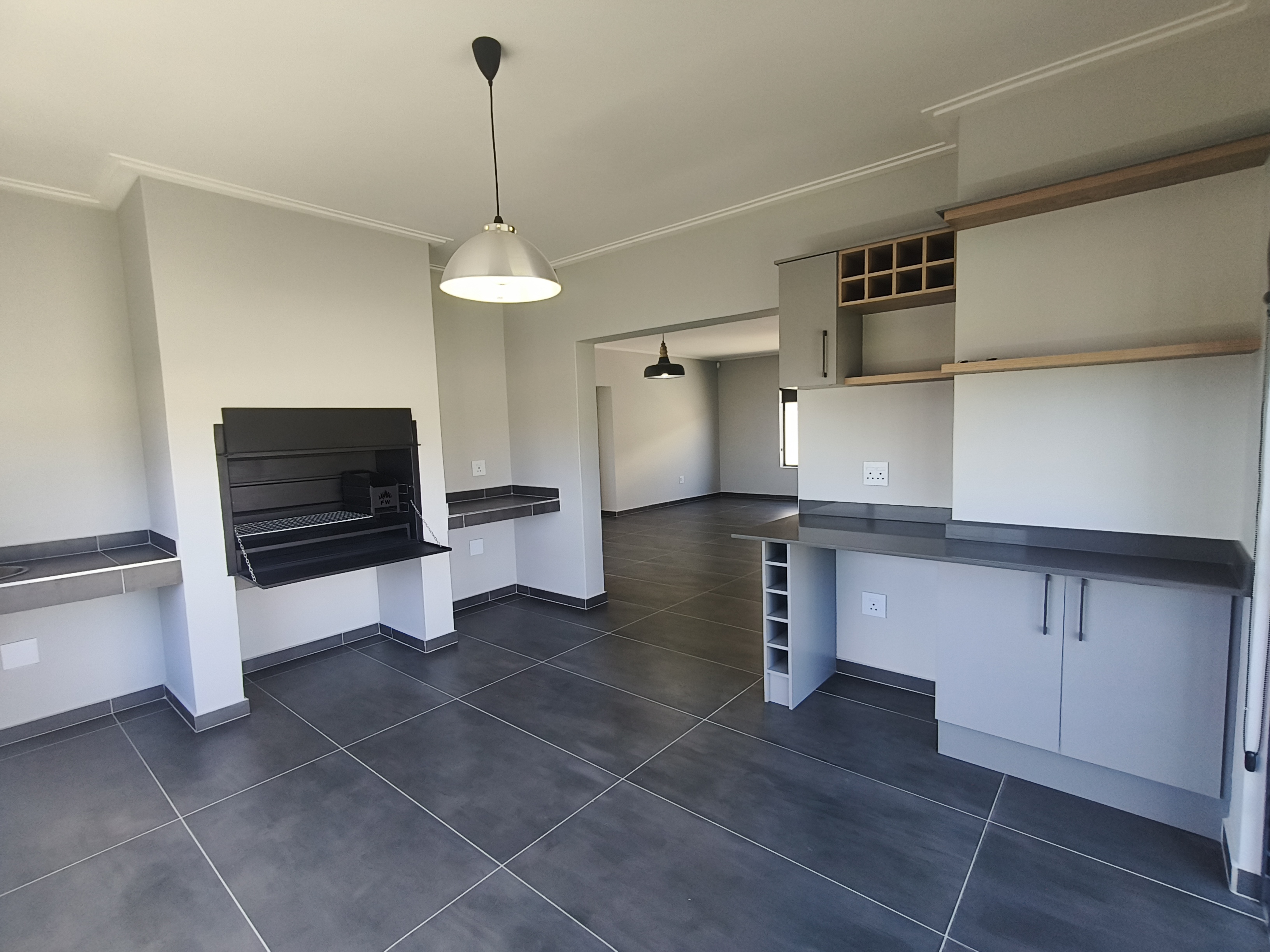 A separate braai room with sliding doors opens seamlessly onto the garden, making it perfect for entertaining.