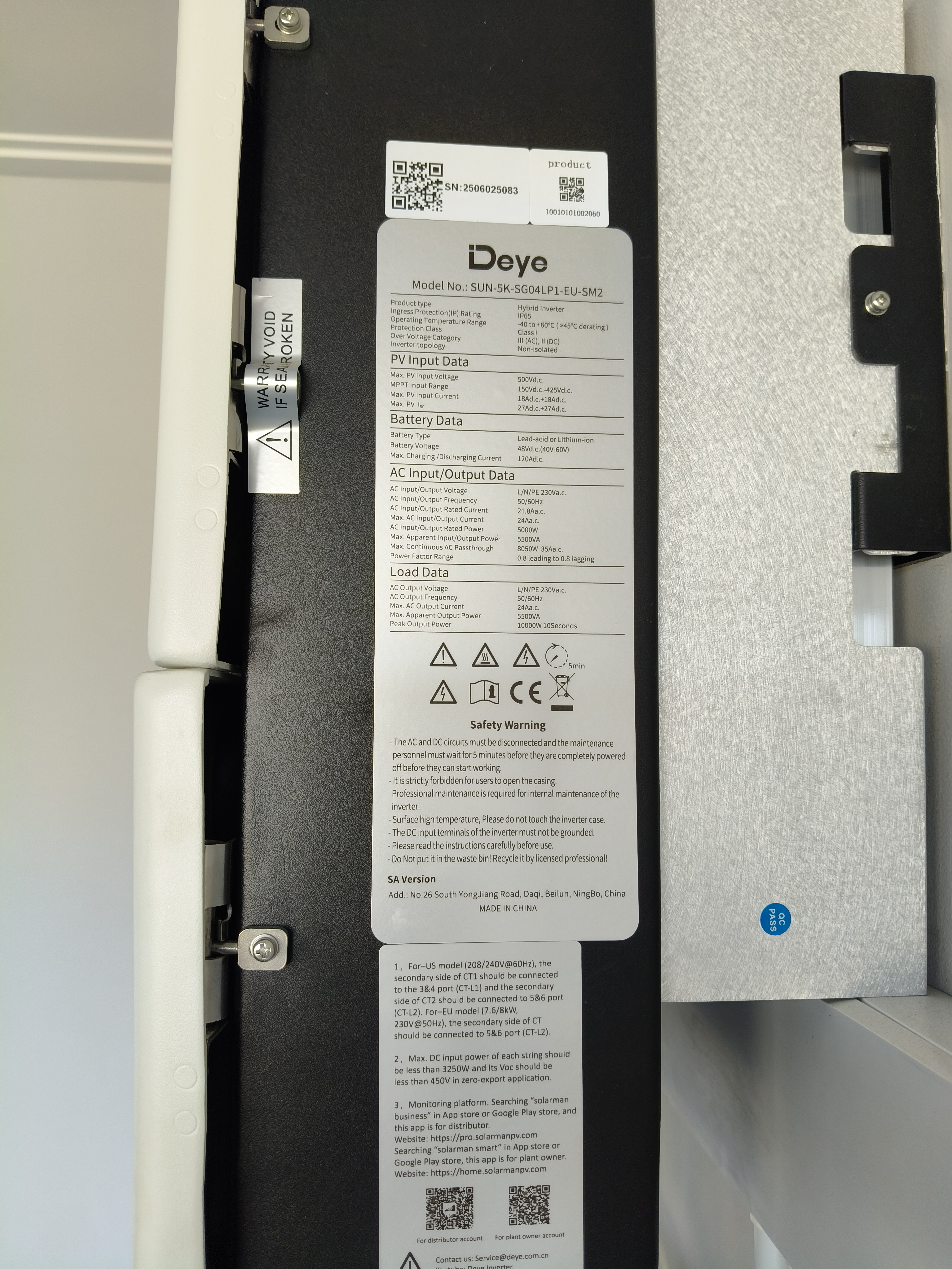 12 solar panels, 5kW inverter, and 15kW batteries