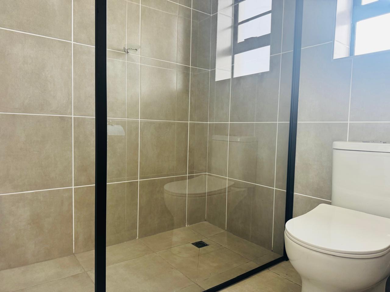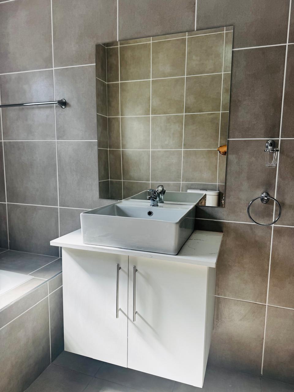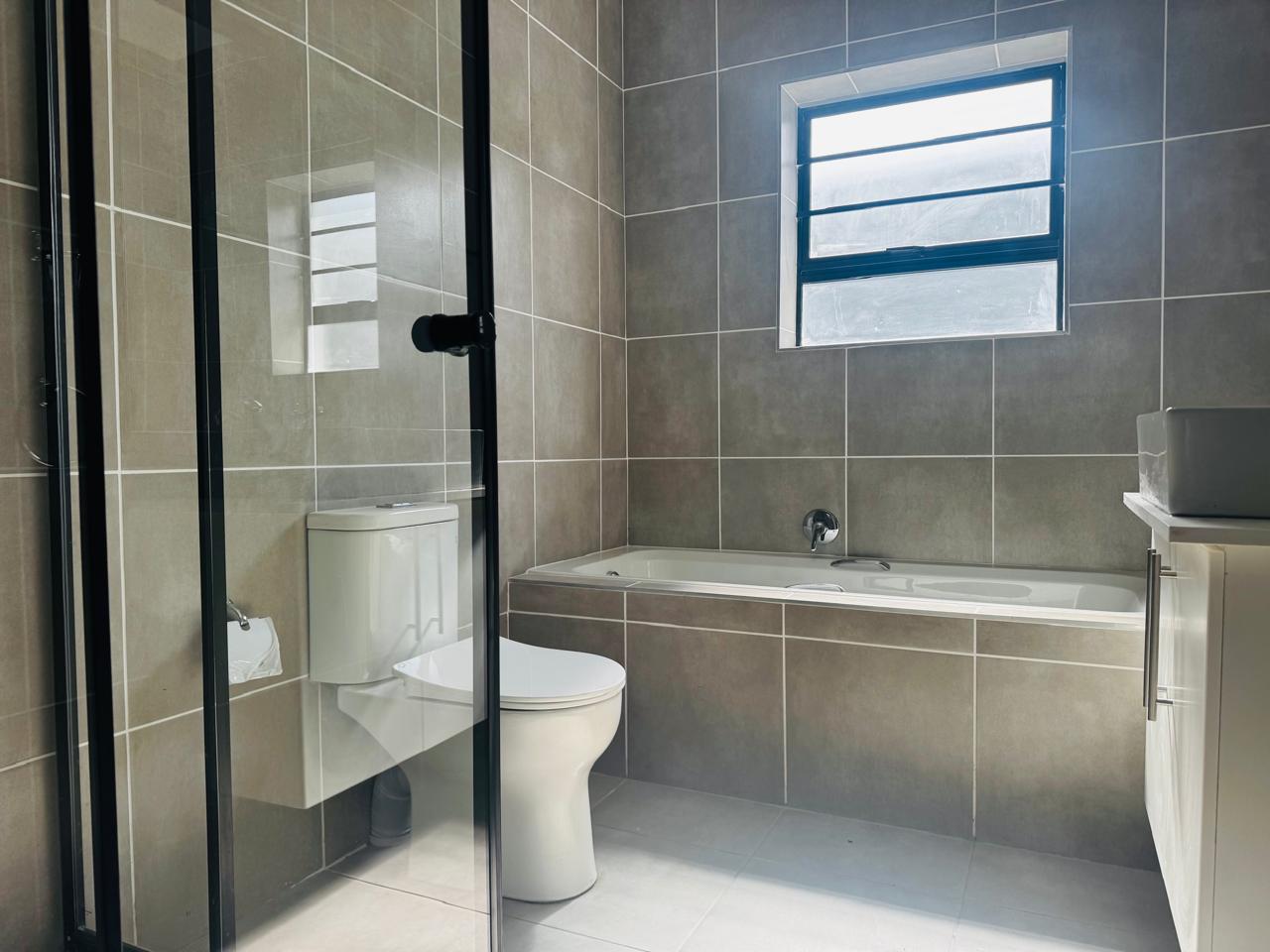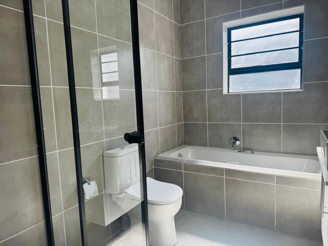 Each bedroom is generously sized, with ample built-in cupboards and enough space to accommodate a double bed. The main bedroom includes a private en-suite bathroom with a shower, toilet, and basin. The guest bathroom is a full bathroom, complete with a bath, shower, toilet, and basin.