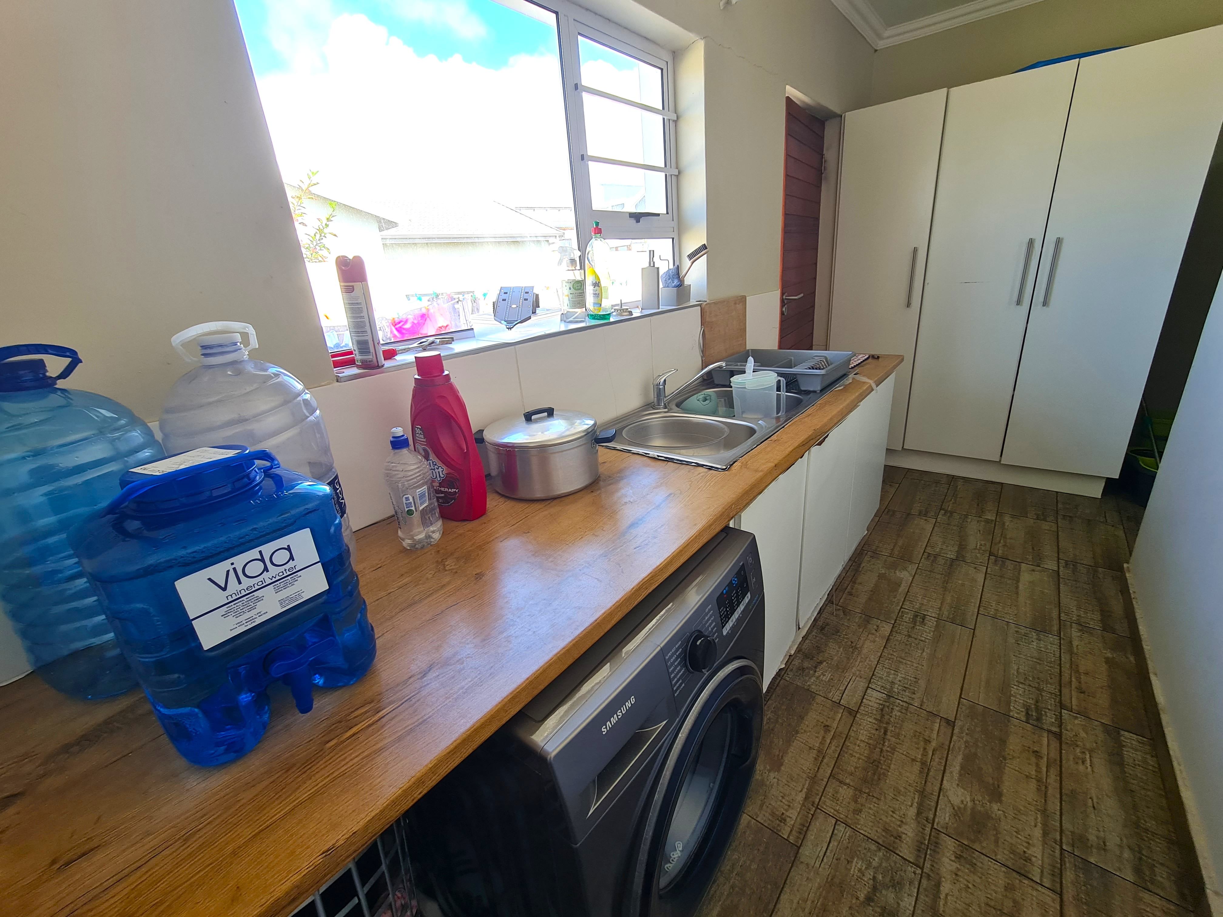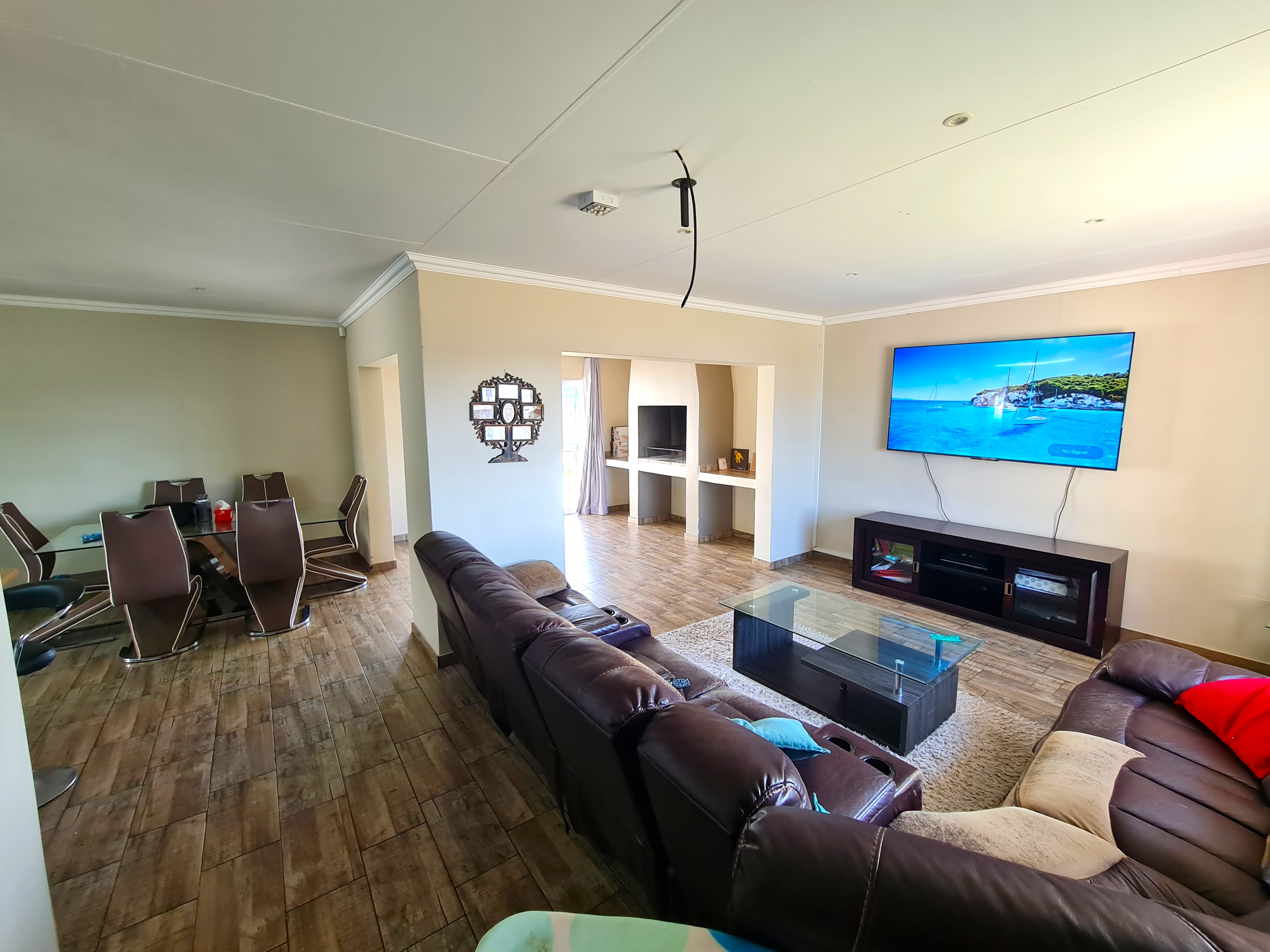 Braai-room area opening to the garden. The large garden affords landscape potential and has enough space for additions to the home or a swimming pool. Lots of space for children and pets alike.