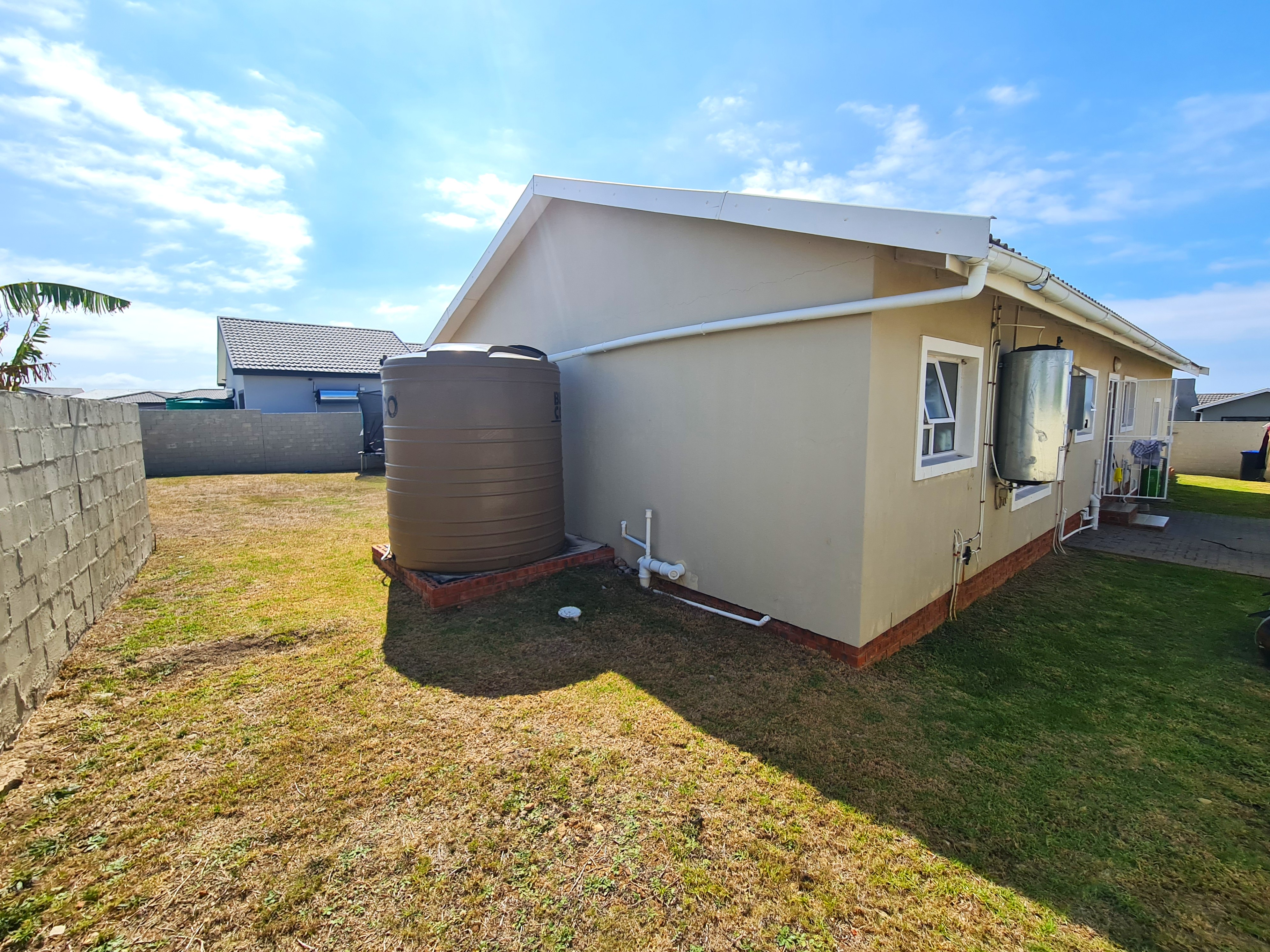 Paved driveway and motorized gate. A water tank to assist through dry periods. Solid construction with tiled roof and fully walled.