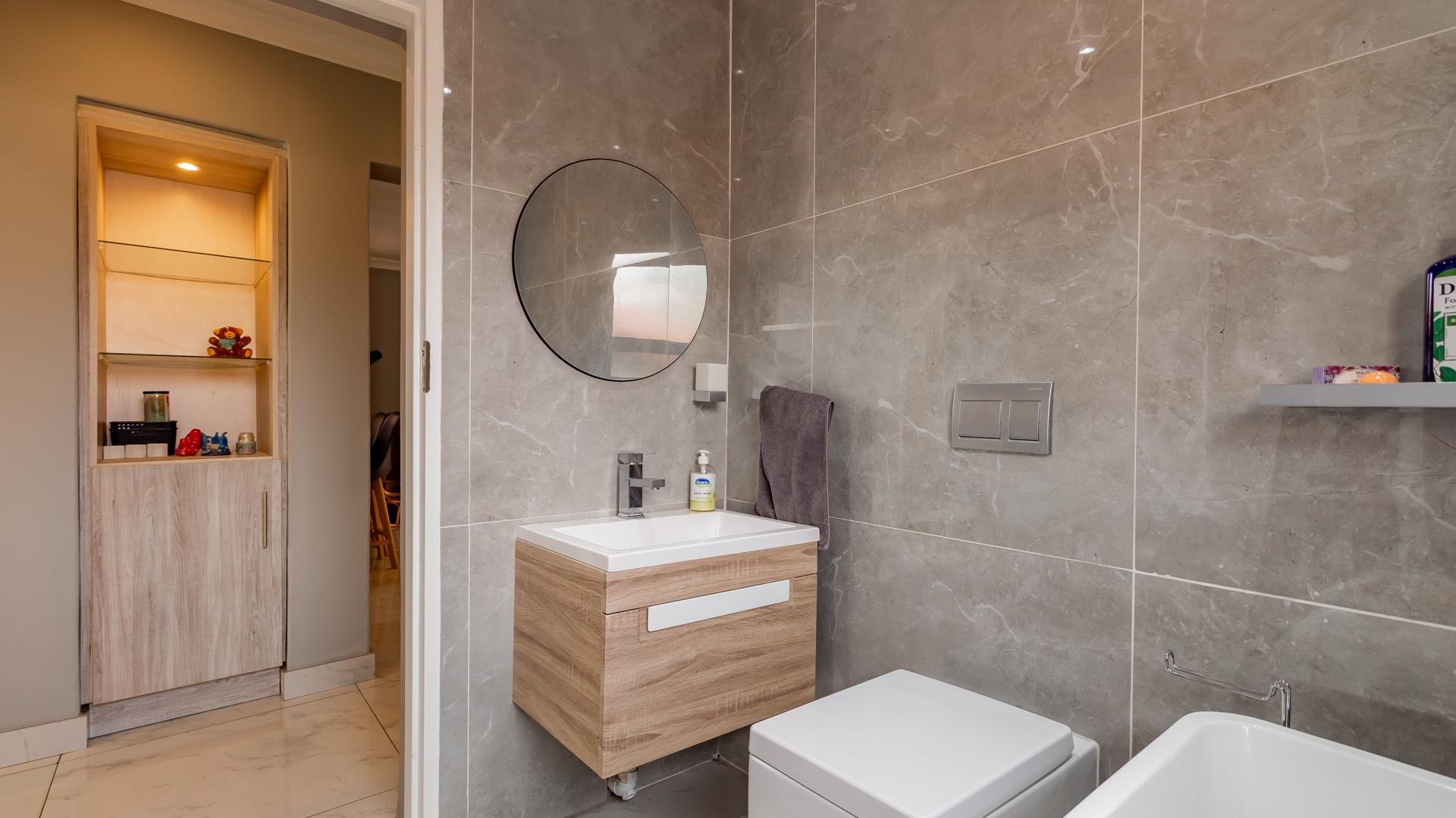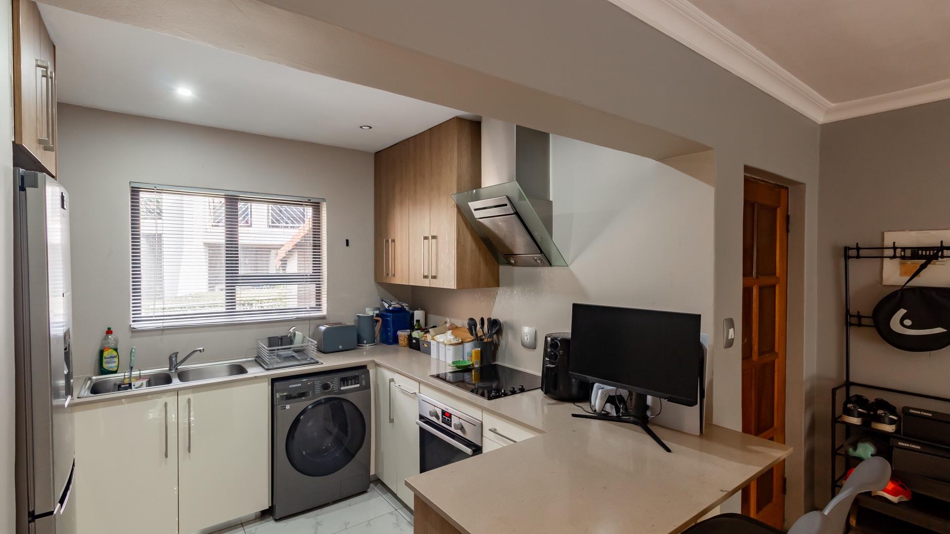 Situated within the sought-after Riverside Lodge community in the prestigious Waterford Estate, this well-maintained two-bedroom apartment offers secure, lifestyle-focused living in the heart of Maroeladal, Fourways. Riverside Lodge is uniquely positioned alongside the Klein Jukskei River, providing a tranquil setting within a well-established estate.