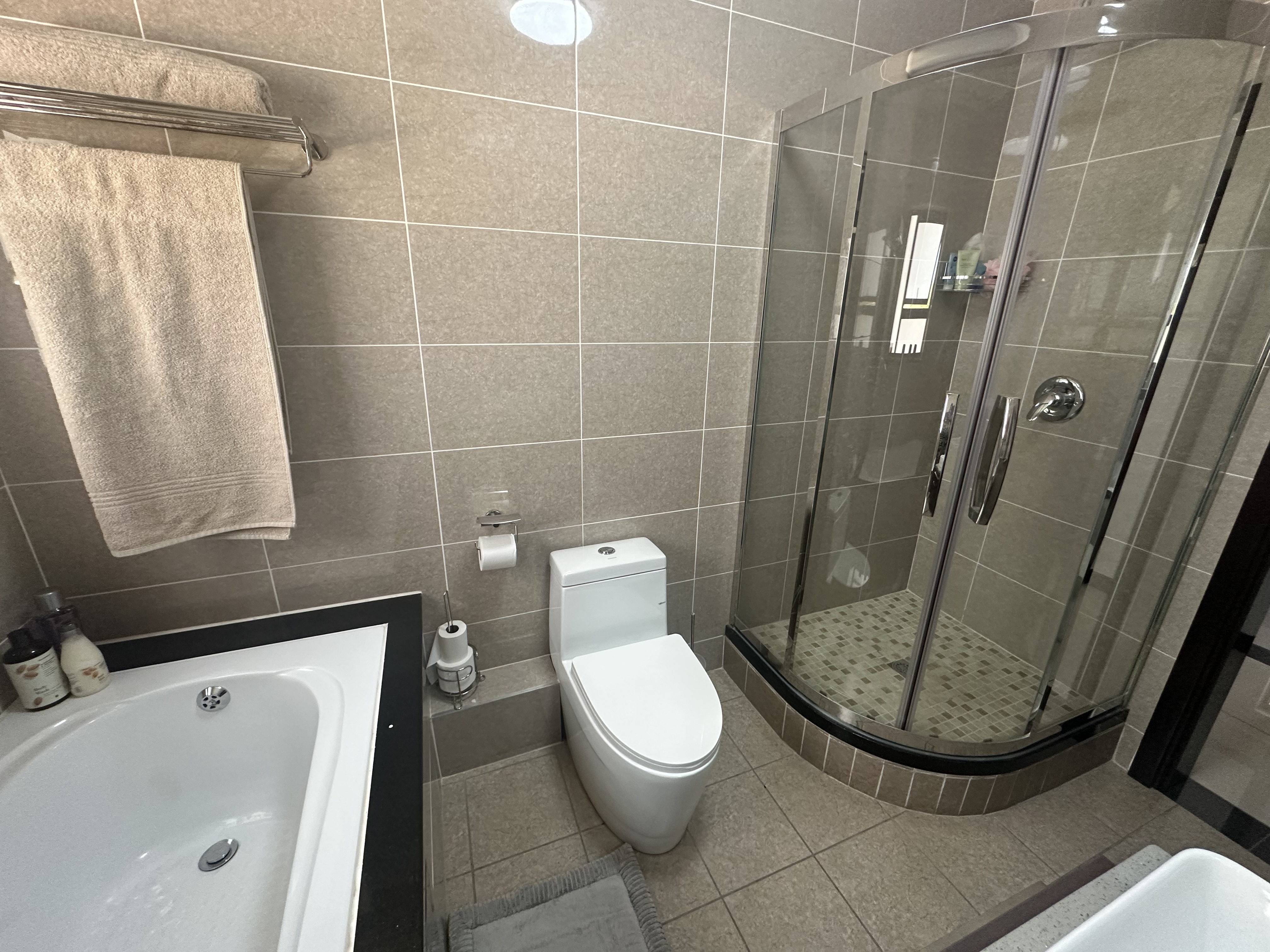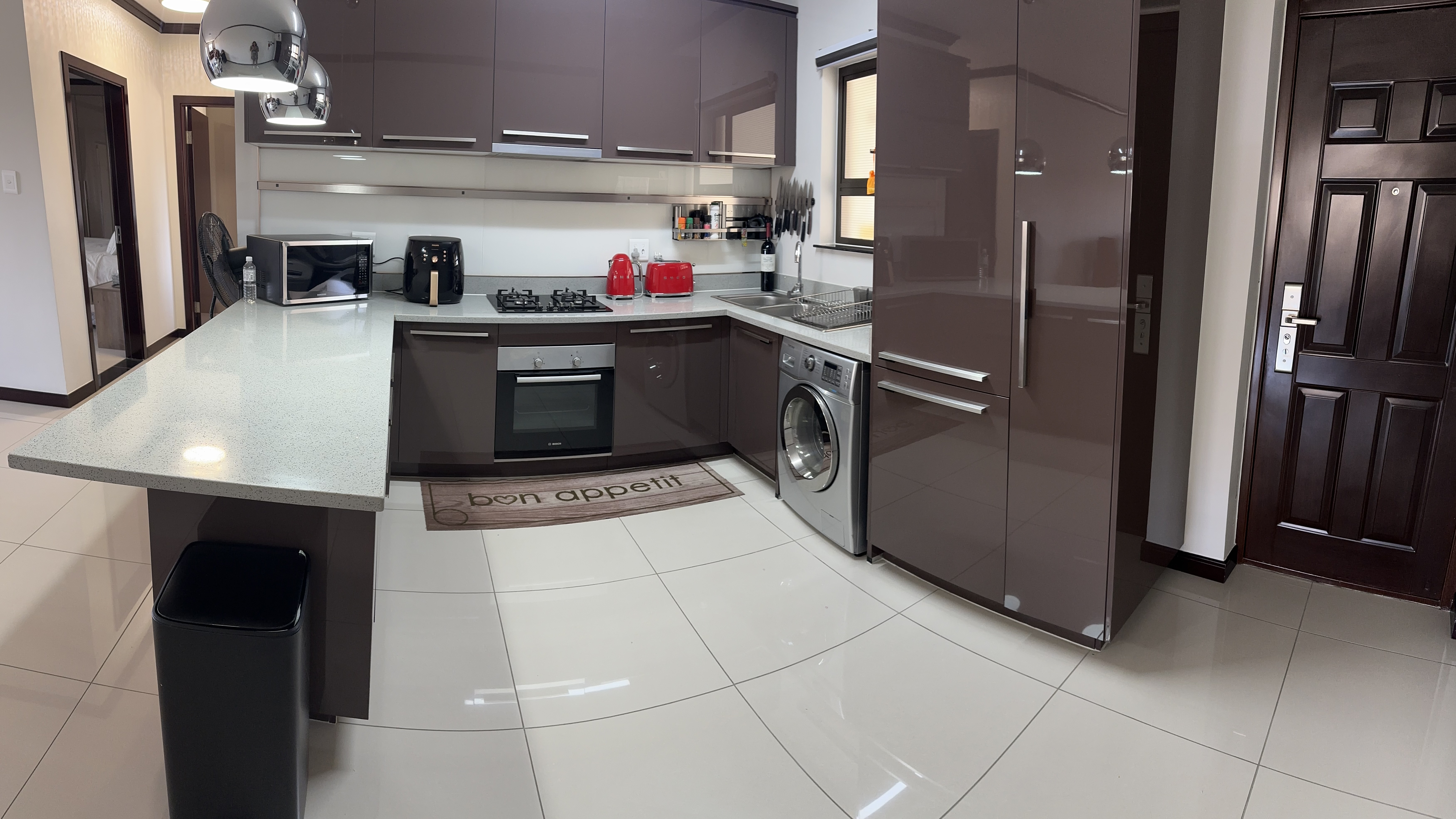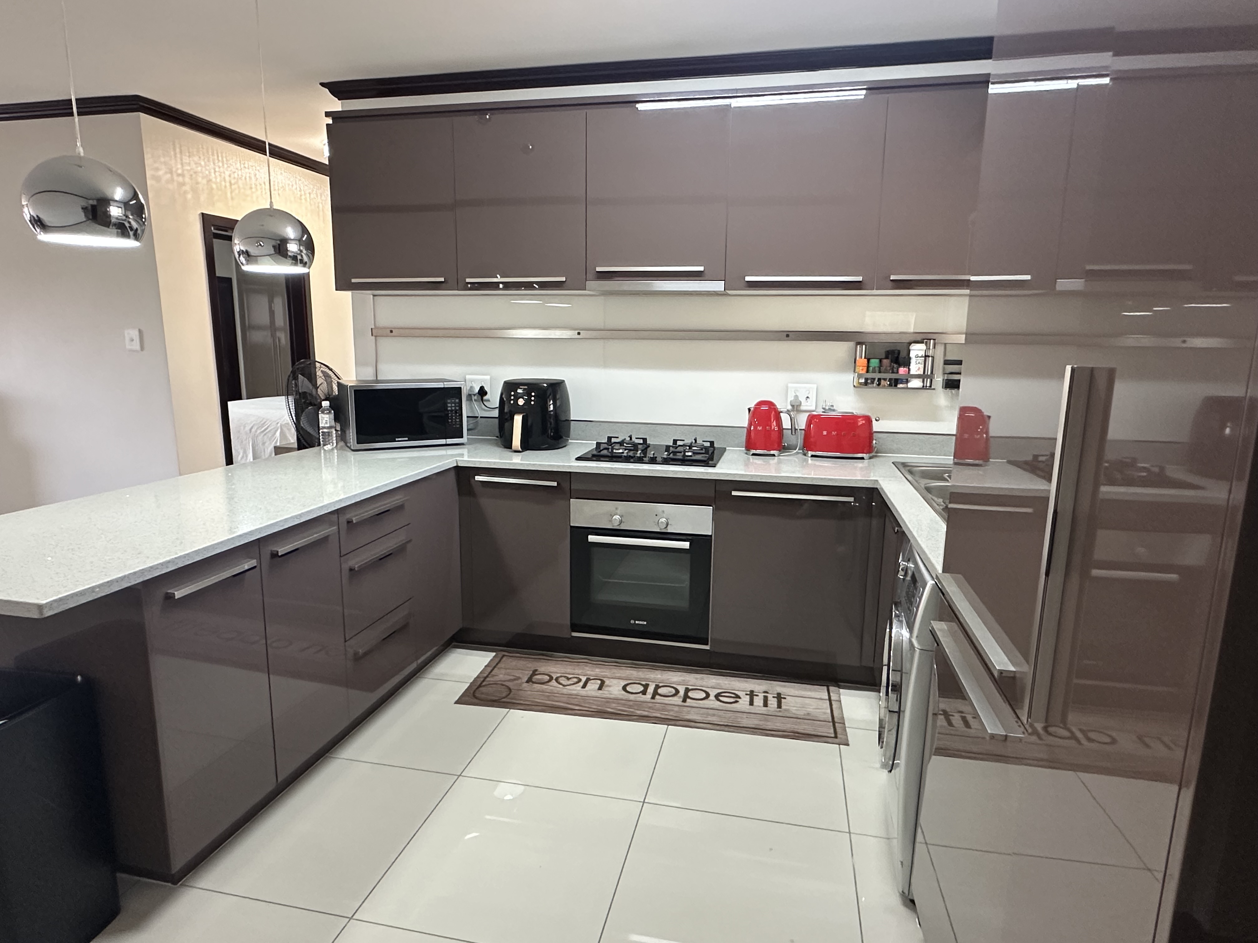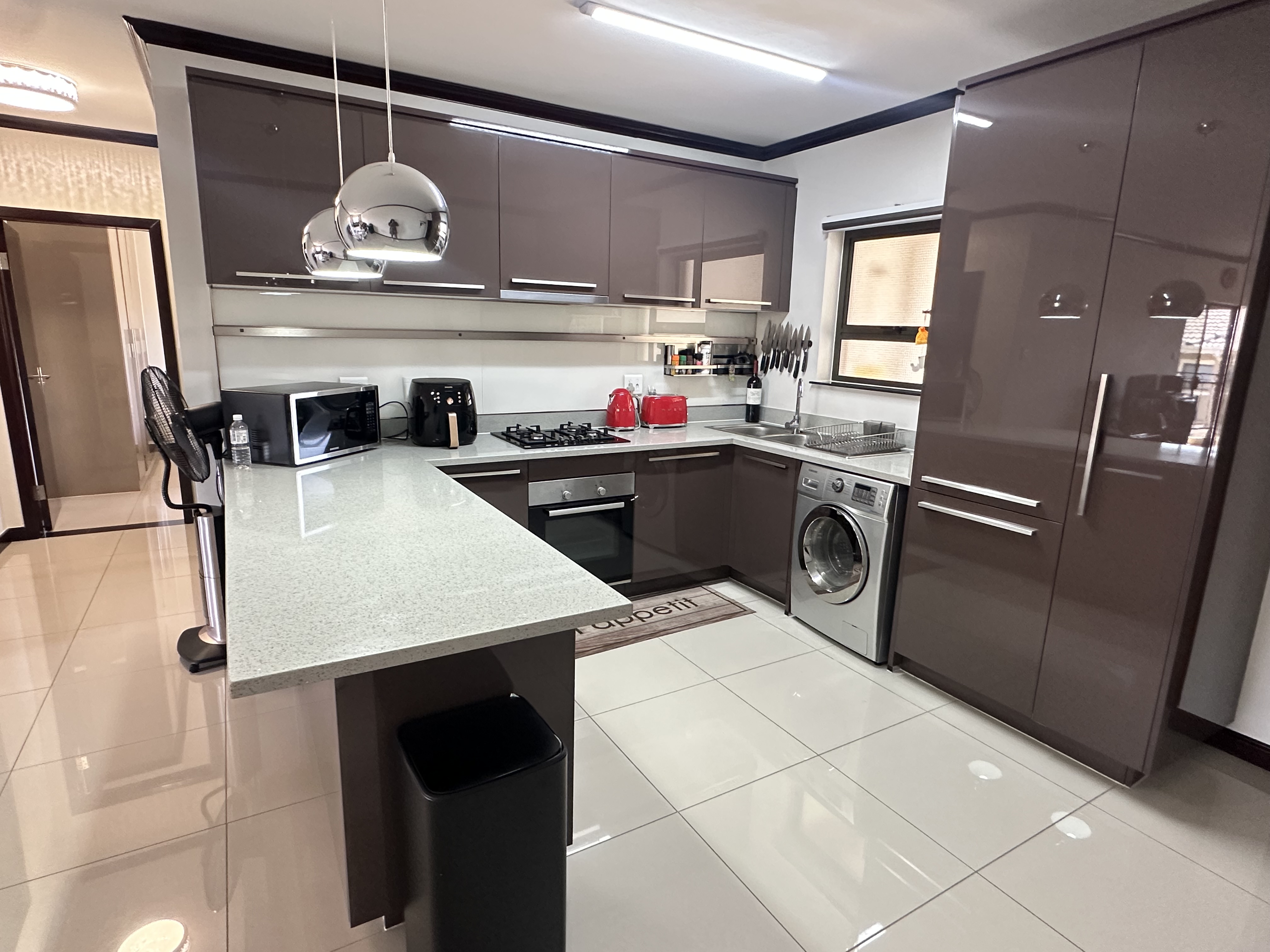 2nd Floor Luxurious Apartment Luxurious and spacious -2 bedroom -2 bathroom with main-en-suite -Open balcony facing the swimming pool & clubhouse - Built-in kitchen with high gloss cupboards -Gas Stive & electric oven -Built in Fridge and freezer -Place for appliances washing machine in kitchen -Tumble dryer in the bathroom - Pre paid Electricity -Wi-Fi ready Viewing by Appointment