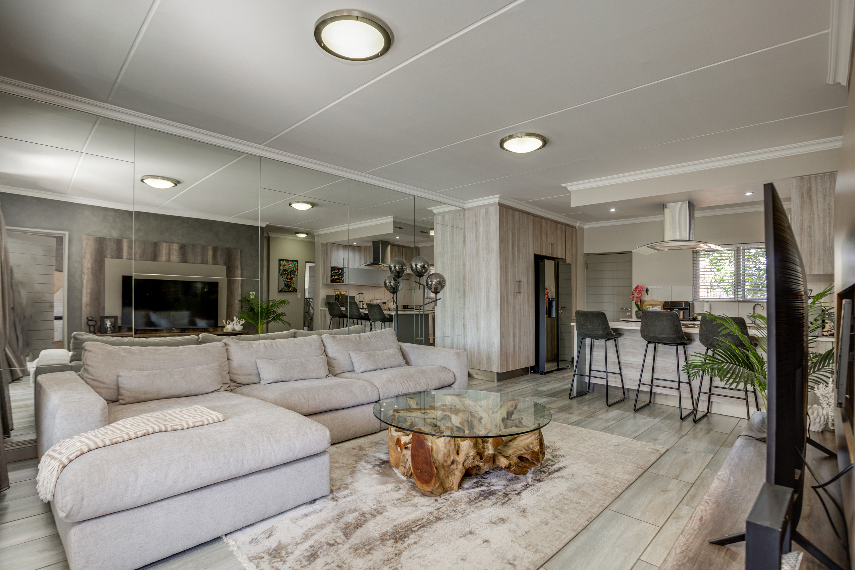 Step into this beautifully designed 2-bedroom, 2-bathroom apartment that perfectly blends modern style with comfortable living. The open-plan kitchen and lounge area create a welcoming flow, enhanced by a fully mirrored feature wall, a fitted TV stand, and a floating media cabinet — all adding a touch of sophistication.