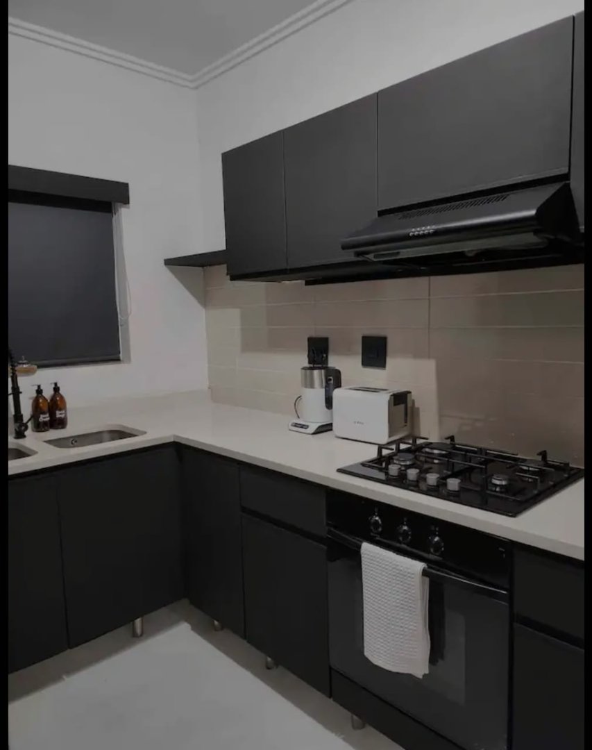 Fully equipped kitchen, with a tastefully designed open lounge, leading out onto a very spacious balcony for entertainment.