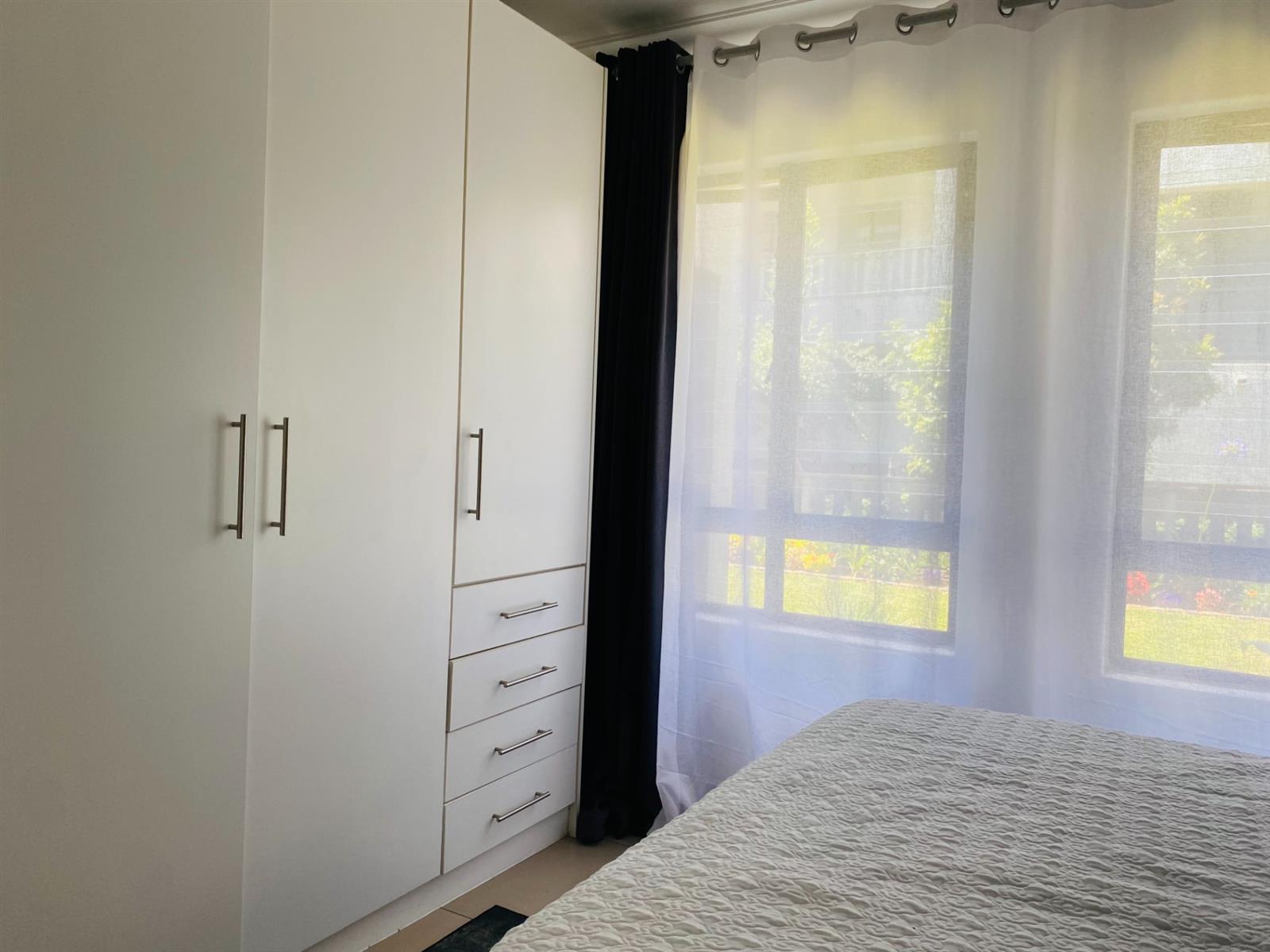 Hey there gorgeous, welcome to your new home .This charming fully furnished, newly renovated 1-bedroom apartment is the perfect blend of style and space. Enjoy a modern kitchen, an immovable TV stand feature, bathroom with both shower and bathtub to wash away all your problems and a beautifully upgraded backyard with a manicured lawn—ideal for relaxing or entertaining. Occupation as soon as tomorrow R11,000/month. Weekly maintence will be done on the garden so no need to worry about upkeeping and get this Wi-fi is also available.