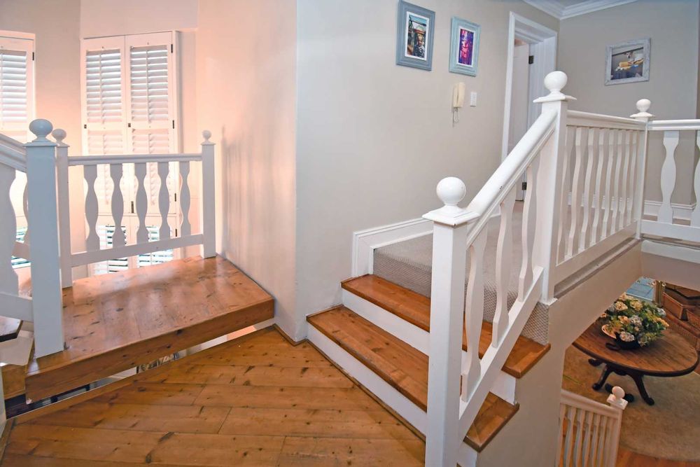 A versatile entertainment wing on the ground level (currently used as an office, with kitchenette, toilet and separate room) opens onto a covered patio with a built-in braai, overlooking the manicured garden and large heated swimming pool. This space can easily serve as a cottage, games room, man cave, studio or work-from-home suite.