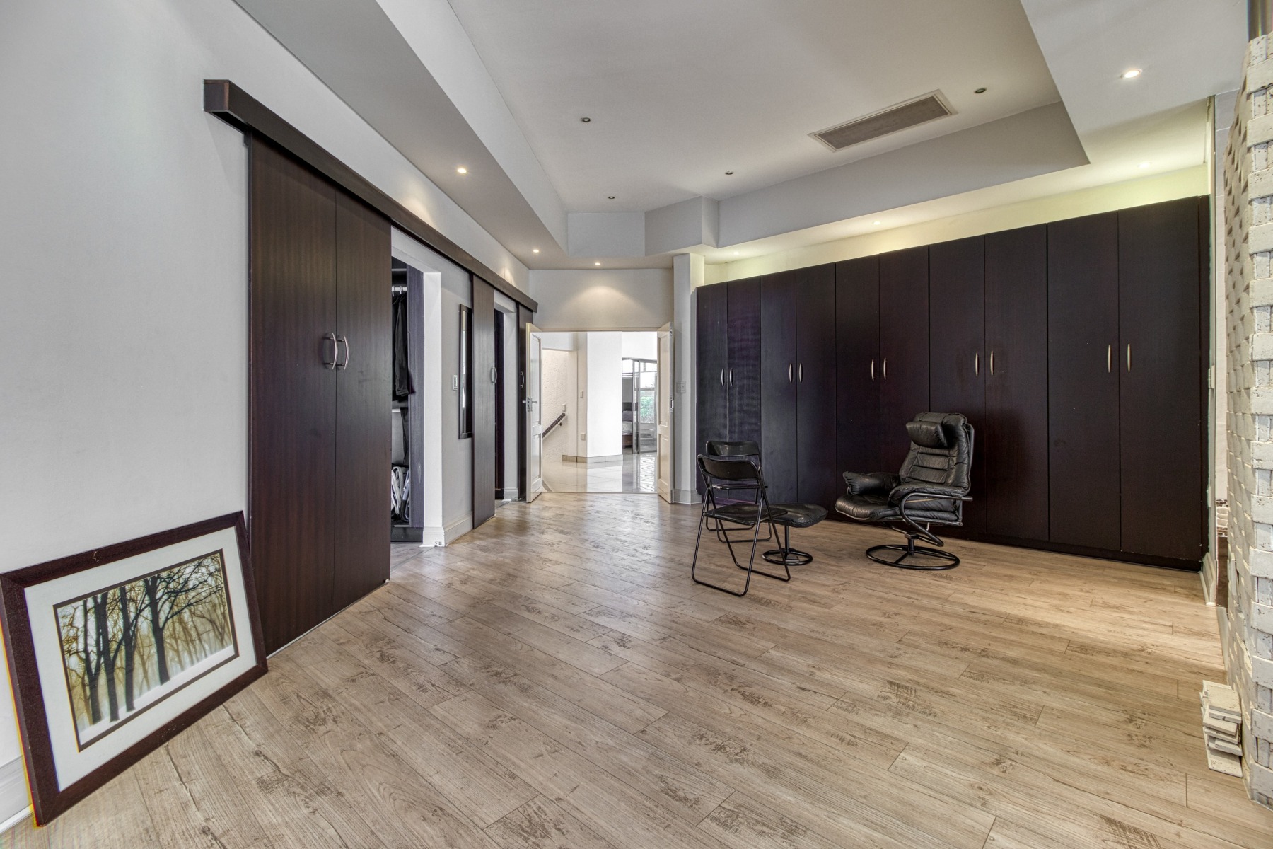 Ascending the grand staircase to the upper level, you'll be captivated by the spacious landing leading to a cozy lounge area. This space is perfect for unwinding with family and friends, offering a serene ambiance and breath-taking views through expansive windows.