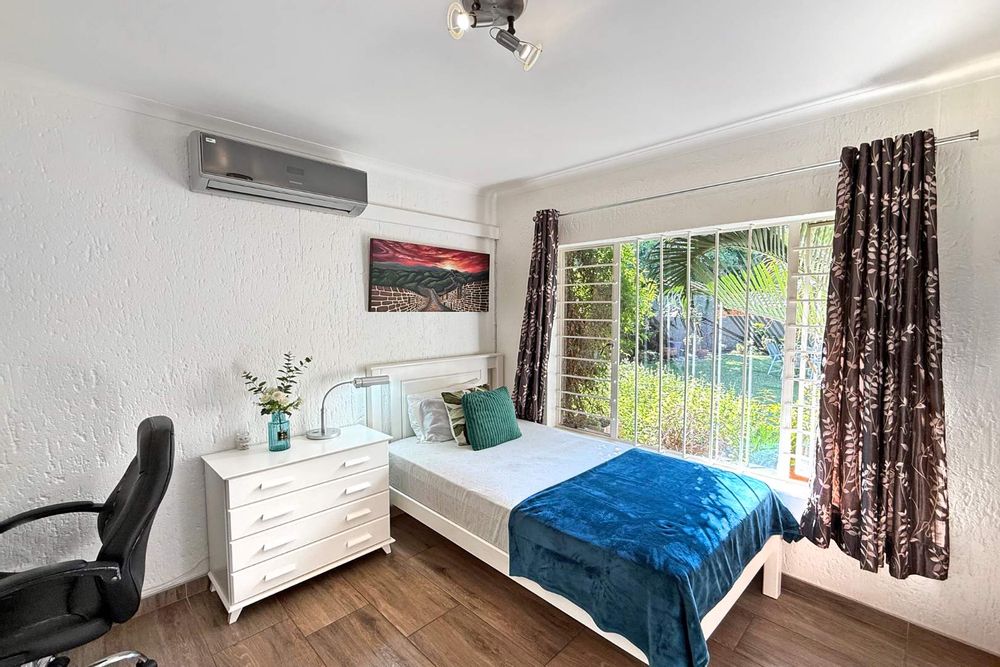 Retreat to the luxurious main bedroom, a true sanctuary boasting a dressing room area, air conditioning, and a dedicated study corner for those who work from home. The modern full en-suite bathroom adds a touch of elegance, and the bedroom's private access to the lush garden enhances the sense of tranquility. The second and third bedrooms share a well-appointed family bathroom, with the third bedroom also equipped with air conditioning for added comfort. The versatile fourth bedroom is perfect for a teen pad, complete with its own kitchenette, en-suite bathroom, and private entrance, offering independence and convenience.