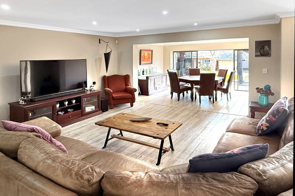 Additional features of this remarkable home include a state of the art security and camera system, a full solar system with a generator that is separately housed, so you are never left in the dark, a gas geyser, and a solar heating system for the pool, ensuring energy efficiency and comfort. With a large driveway that can easily park six additional cars, double automated garage, and a covered parking space, this home is not just a residence; it’s a lifestyle.