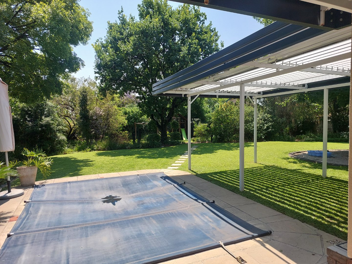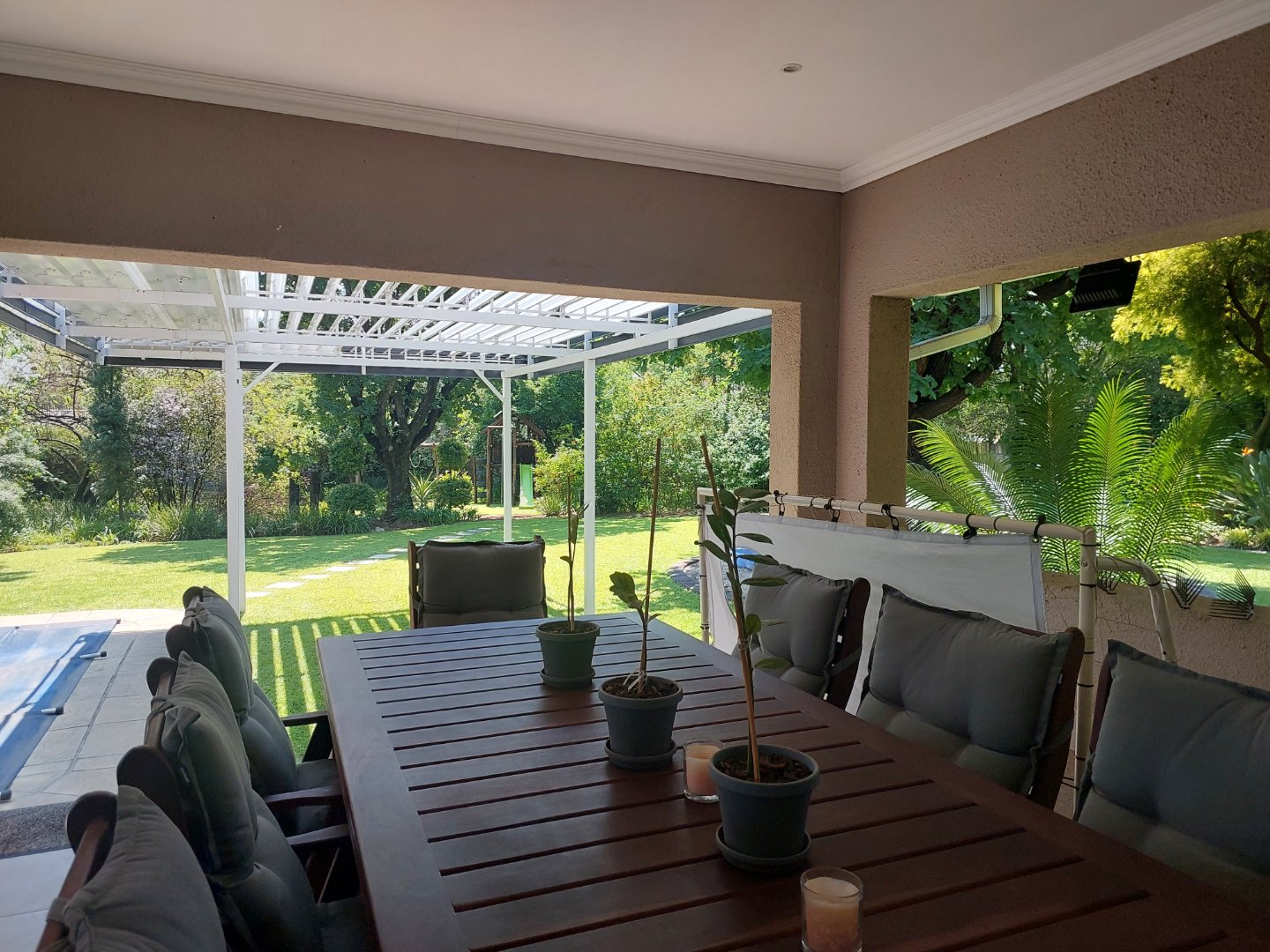 This fabulous family home is located within walking distance to Fourways High School, in a secure boomed suburb. Designed with family living and entertaining in mind, the home offers a warm and welcoming atmosphere with generous indoor and outdoor spaces. The beautifully landscaped garden features a sparkling swimming pool, plenty of space for children to play, and a jungle gym area. A covered entertainment patio with a built-in braai overlooks the pool and garden, creating the perfect setting for relaxed family gatherings or entertaining guests.