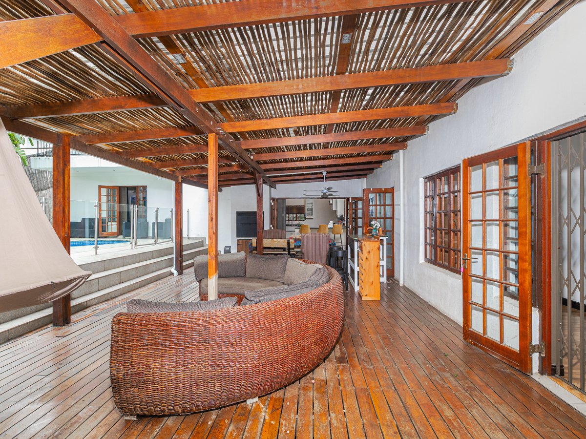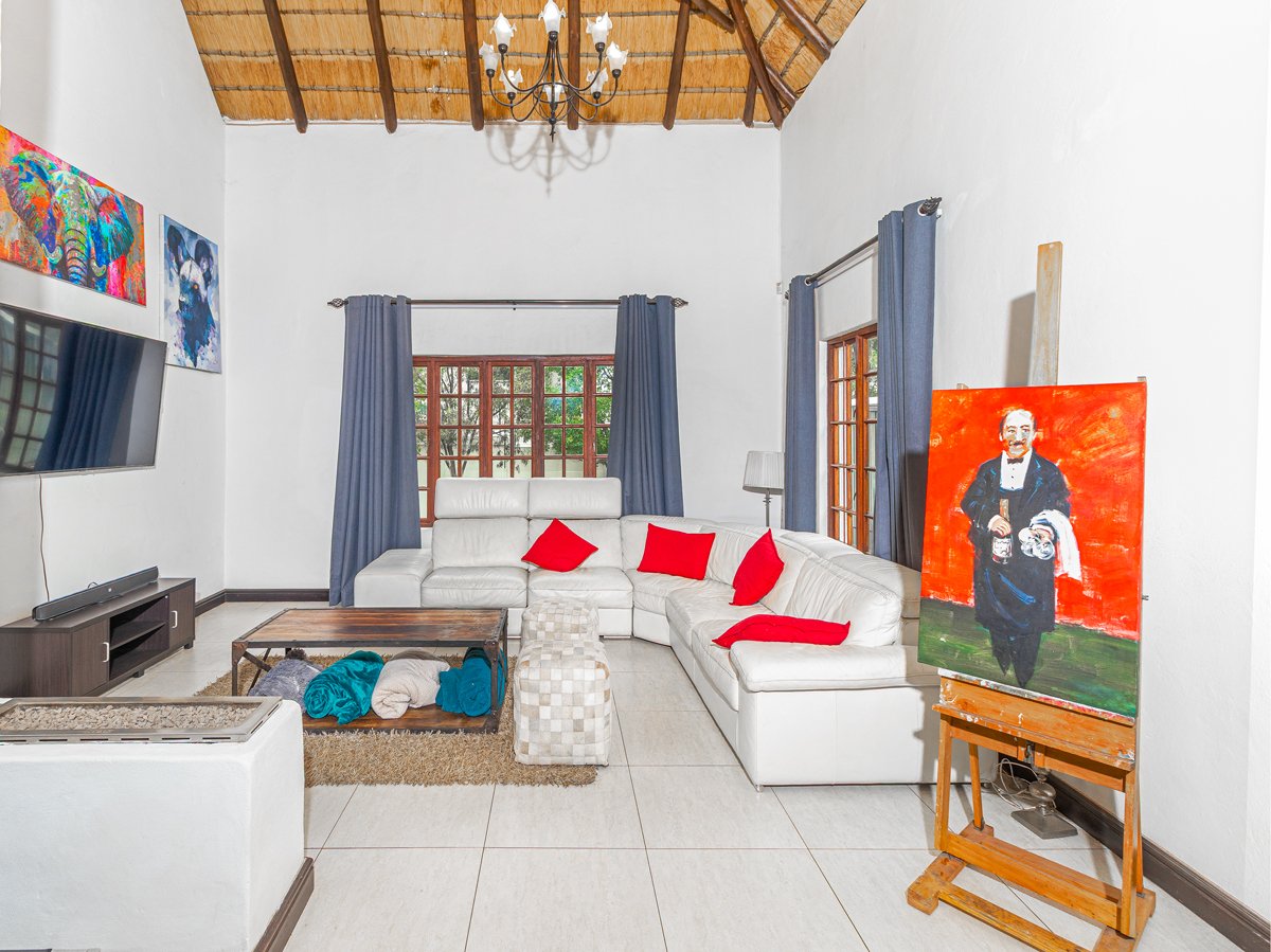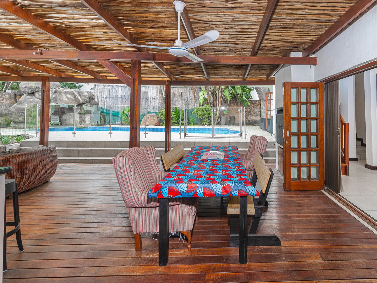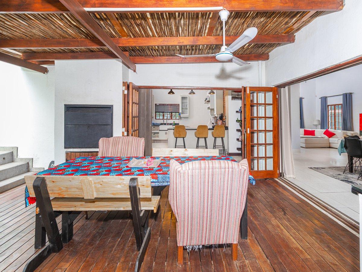 Entertainer's Dream: The impeccable open-plan lounge and dining room flow seamlessly, centered around a cozy gas fireplace. This area extends to an over-sized, covered deck with a built-in braai (barbecue), offering the perfect space for year-round entertaining.
