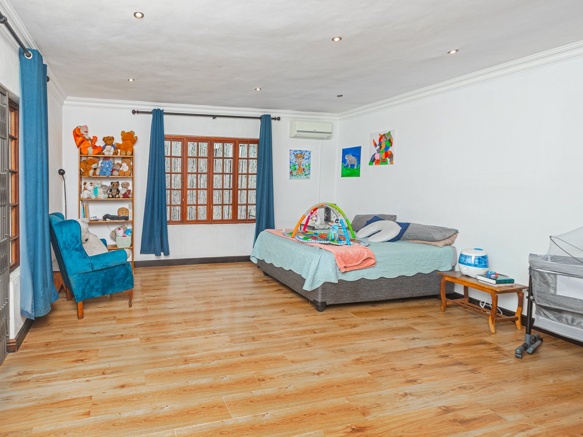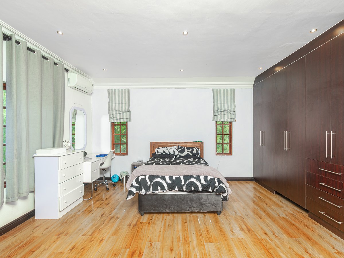 Upstairs Retreat: Bedroom 2 is a large, light-filled sanctuary upstairs, featuring generous cupboard space, a dedicated en-suite bathroom, and a beautiful private balcony overlooking the pool.