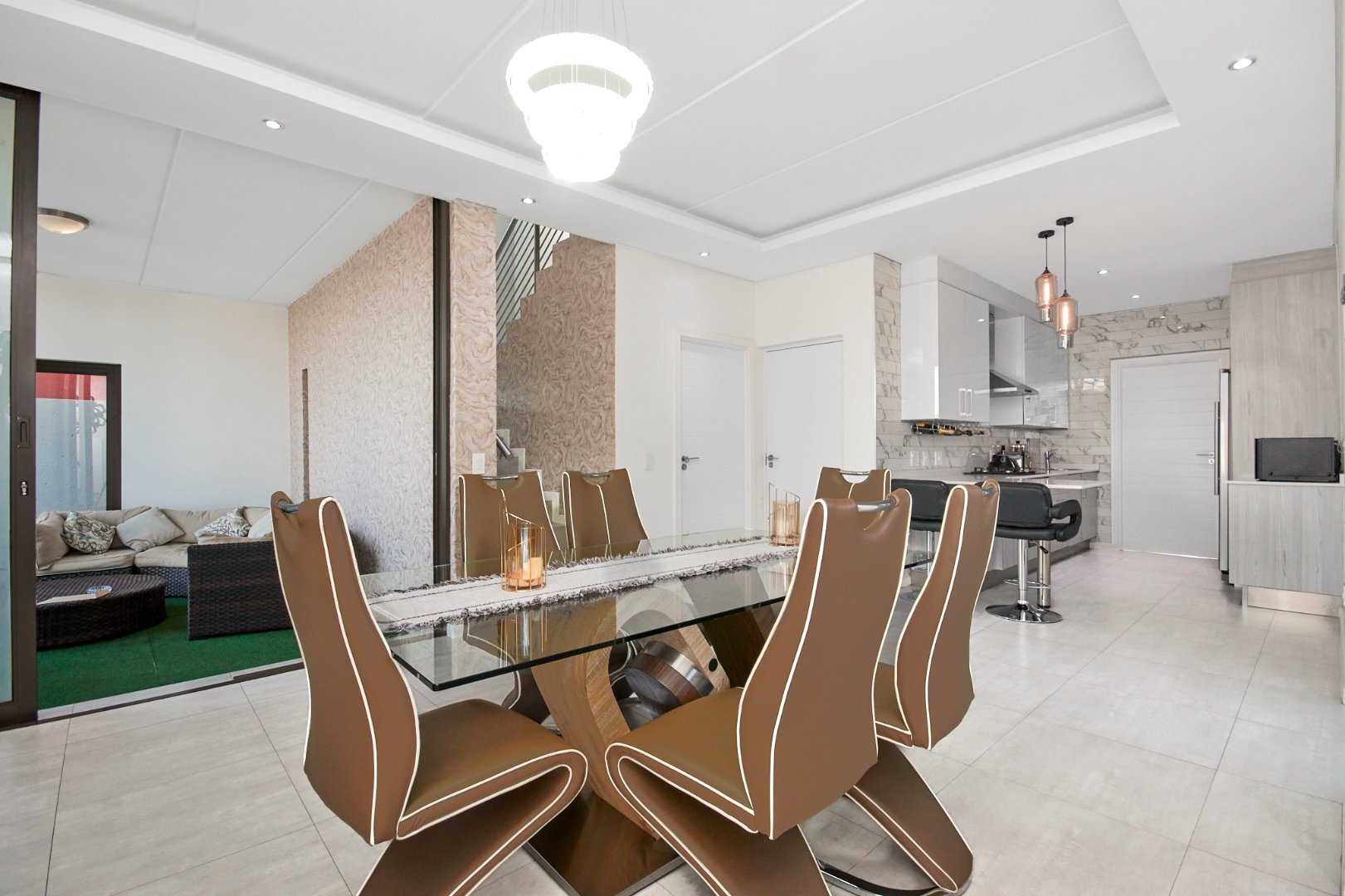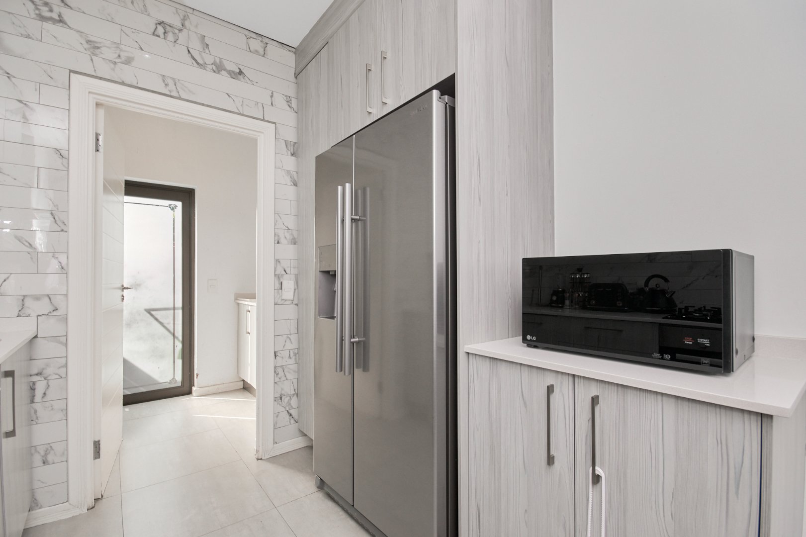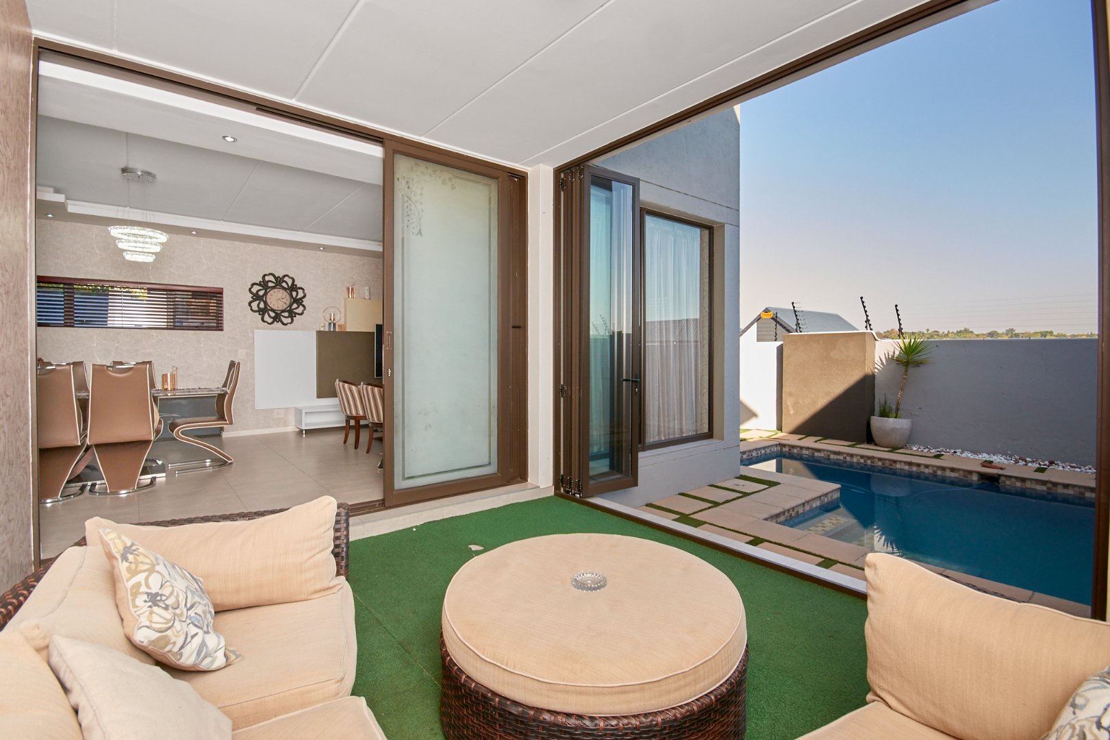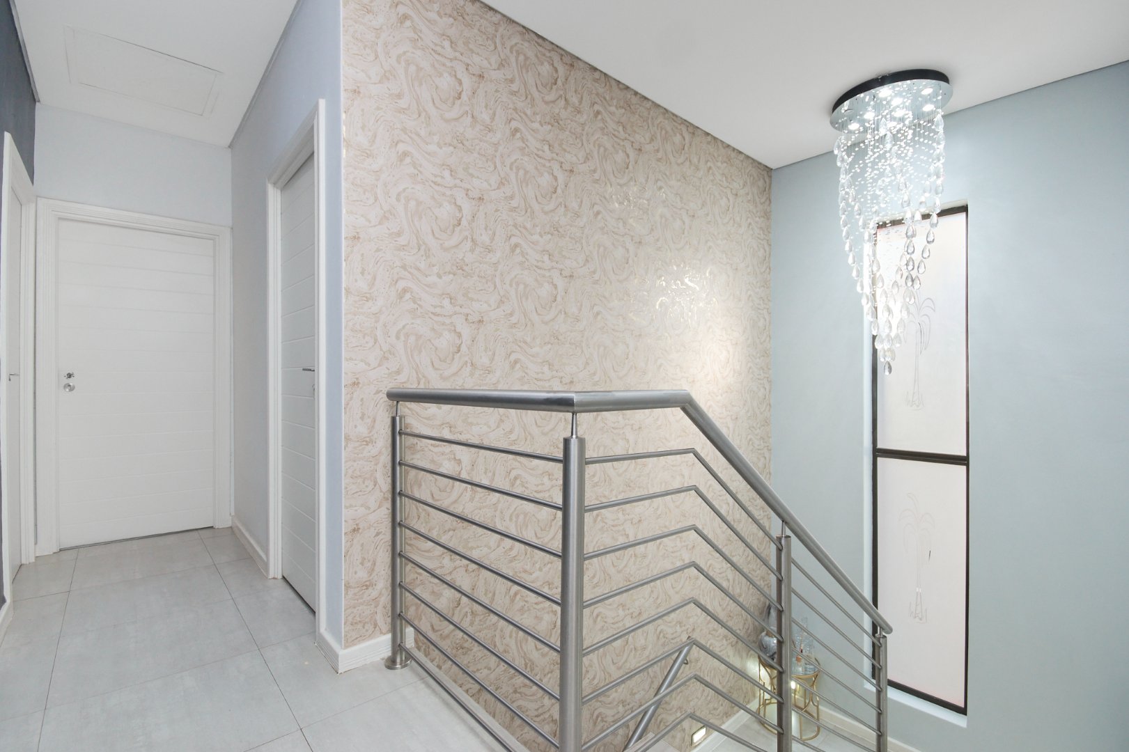 Upstairs Offers quality finishes with 4 bedrooms and 3 bathrooms of which 2 are en-suite, One of the bedrooms can easily be converted into an office or studio kept as a fourth bedroom, showcasing it's versatility. The spacious design and double volume light and clinical look and feel provide ample room for your family to thrive. Finding the main bedroom with a patio overlooking the beautiful estate.