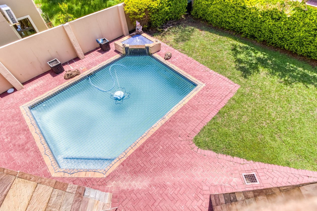 Introducing a family home in a sought-after estate, boasting top-notch security and a range of desirable features. On your entry you will be met with a double volume entrance and a quant plant filled atrium, showcasing an open plan kitchen and dining area. Plenty of cupboard space - scullery with space for 3 under counter appliances. A separate formal and t.v lounge with a fireplace available. All of these spaces lead onto a large covered patio over looking the pool, perfect for outdoor entertainment.