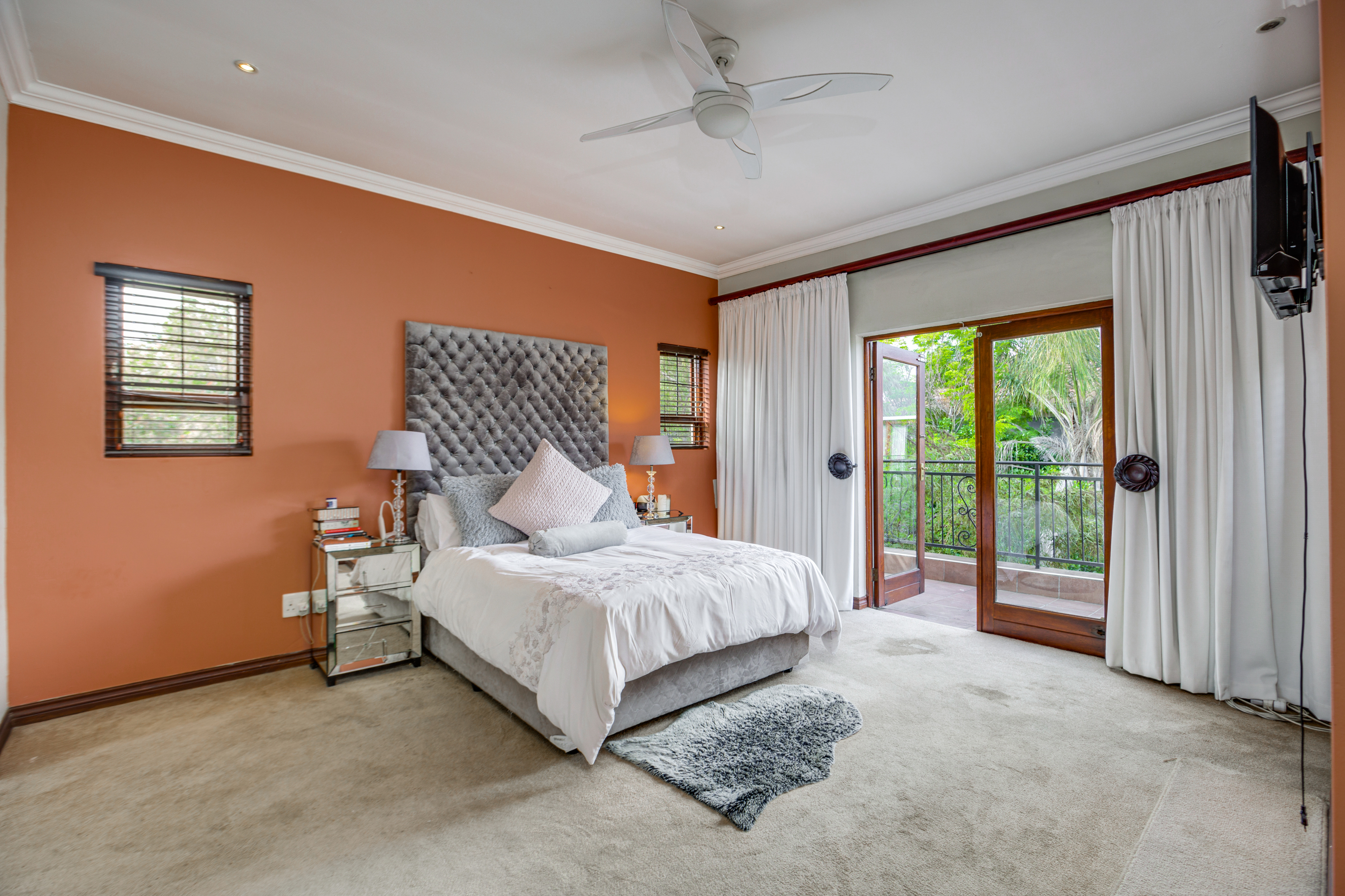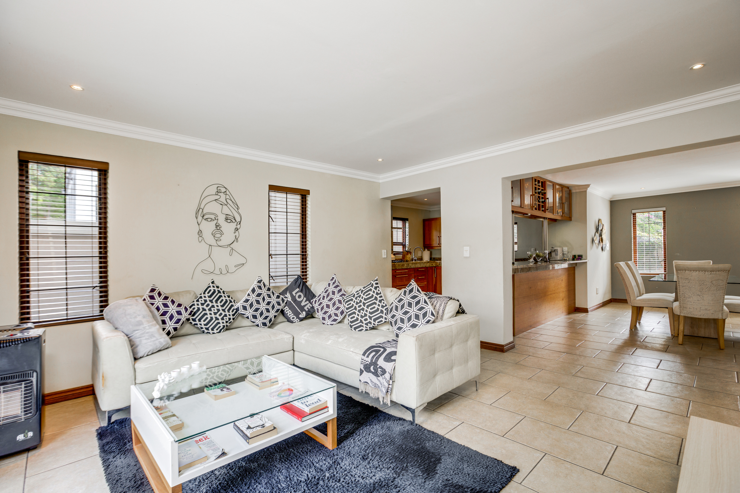 The heart of the home is an impressive open-plan family lounge, dining area, and gourmet kitchen, all seamlessly connected. The kitchen boasts granite countertops, double built-in ovens, a built-in microwave, 5-burner gas stove, center island, modern glass cabinetry with soft downlighting, an expansive walk-in pantry, and more cupboard space than you could dream of. A separate scullery accommodates three appliances and includes a broom cupboard. The back door opens to a play area complete with a jungle gym, and a back gate leads to a carport with extensive space to add staff accommodation.