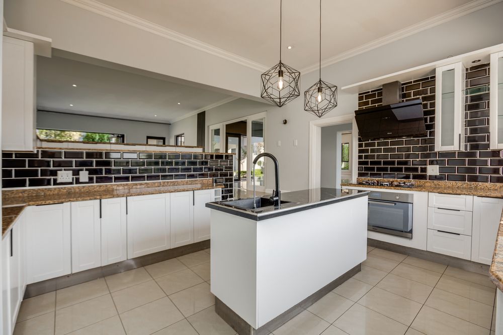 The gourmet kitchen is well-appointed and offers granite tops, 5 plate gas stove, and an eat-in breakfast bar for casual dining. The separate scullery has an electric oven (so ideal for catering for functions), space for 2 appliances, a pantry, and direct access from the double automated garage.