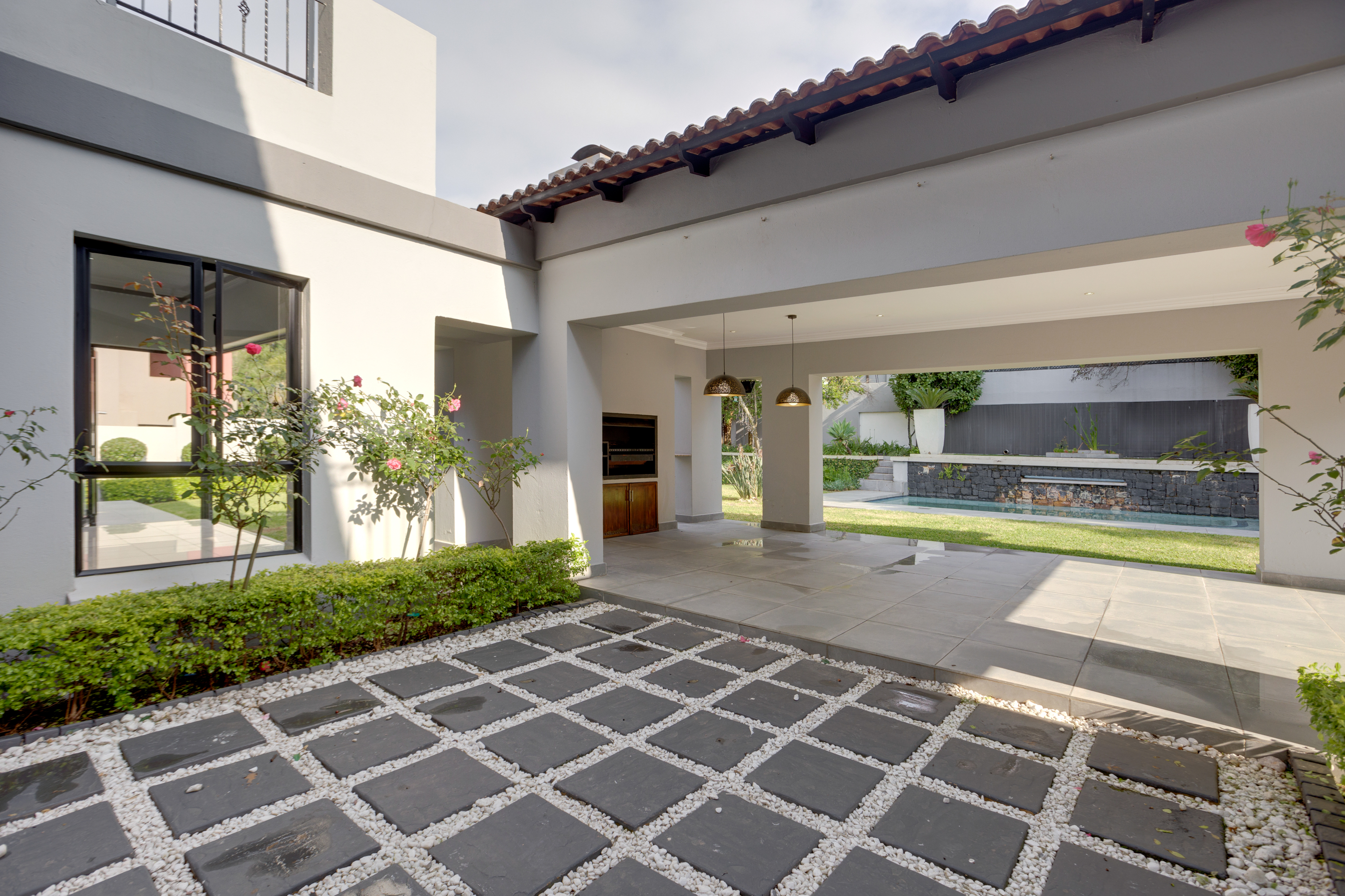The entertainers patio is every homeowners dream, with breathtaking night lighting, a bar area, and built-in braai. The manicured garden features a serene firepit area, and a refreshing solar heated pool for year round enjoyment.