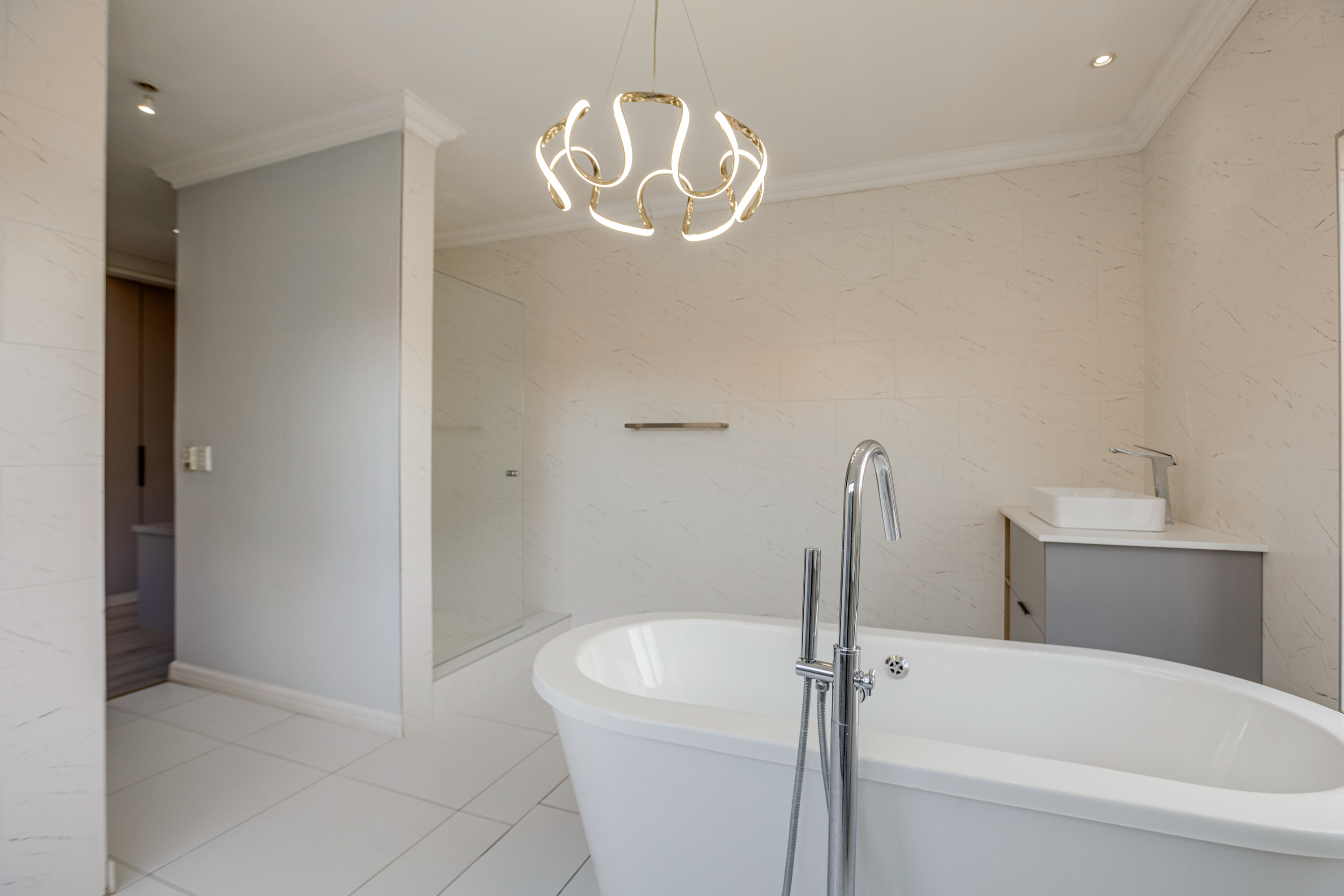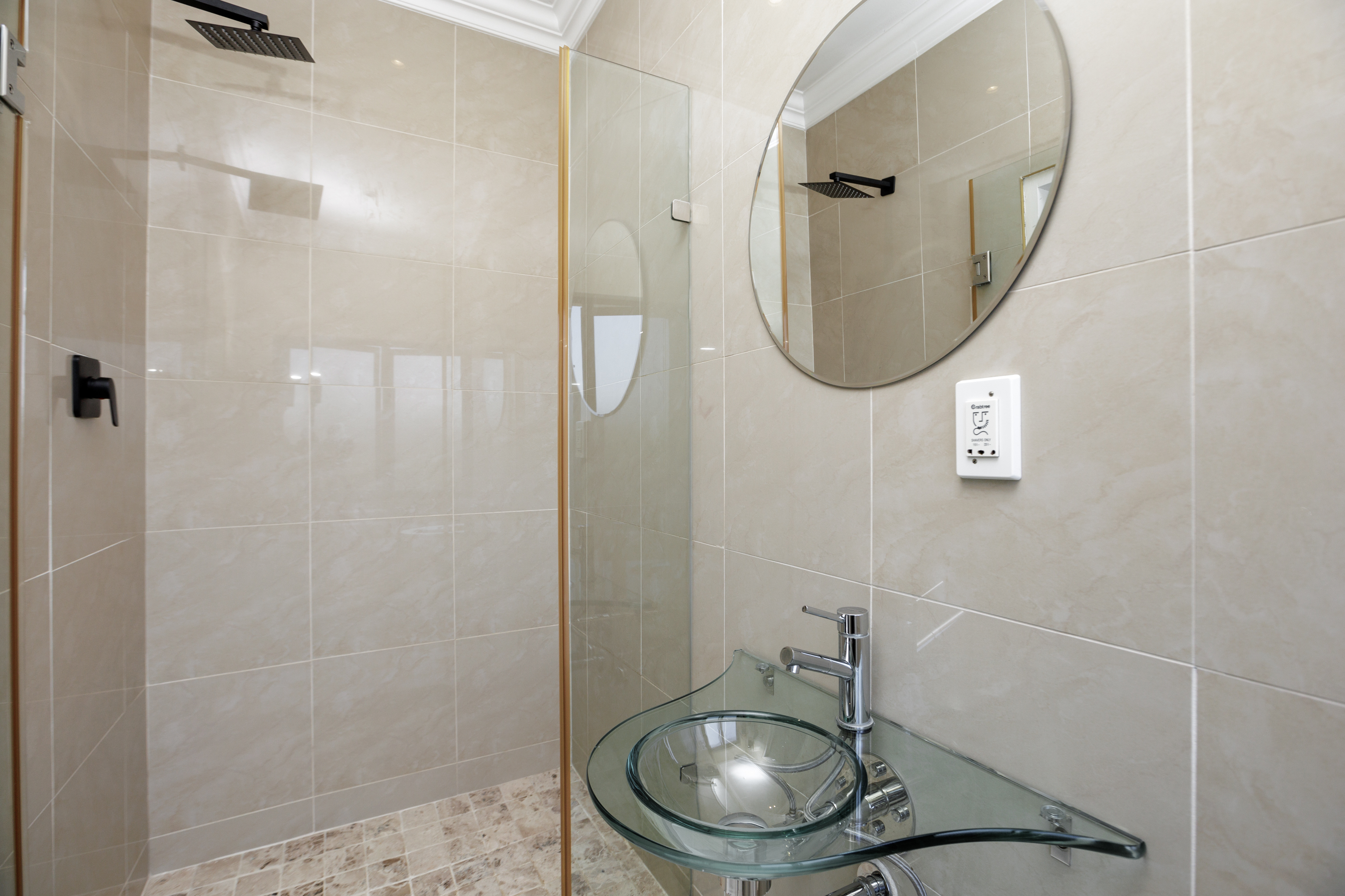 Upstairs boasts 4 good-sized bedrooms, and 3 bathrooms. The main bedroom is pure luxury, with a generous walk-in closet, and full en-suit bathroom. There is also a second en-suite bedroom, just perfect for family/friends spending the night. The fifth bedroom (also en-suite) is downstairs and has separate access, also making it a possible option for staff accommodation.