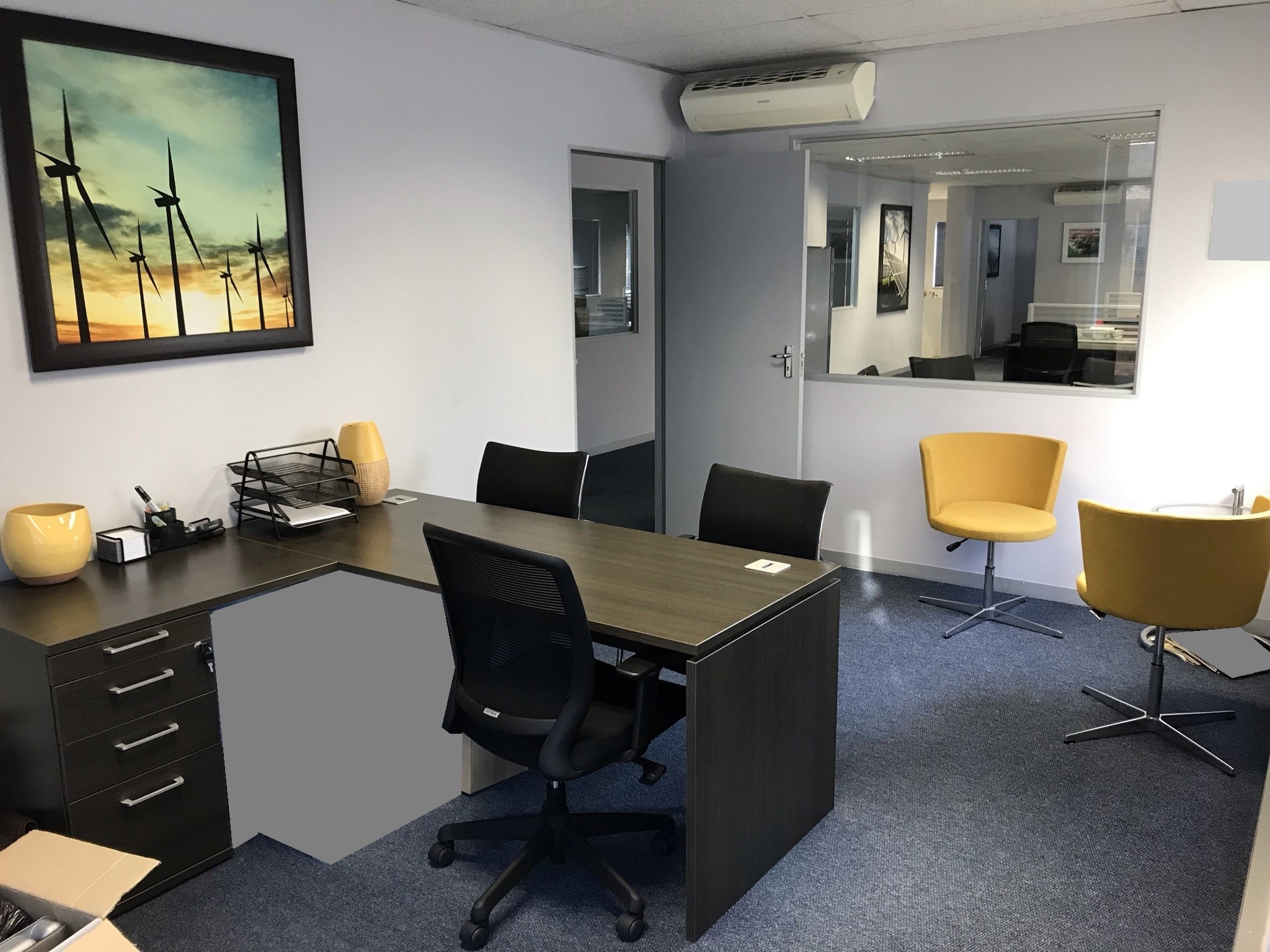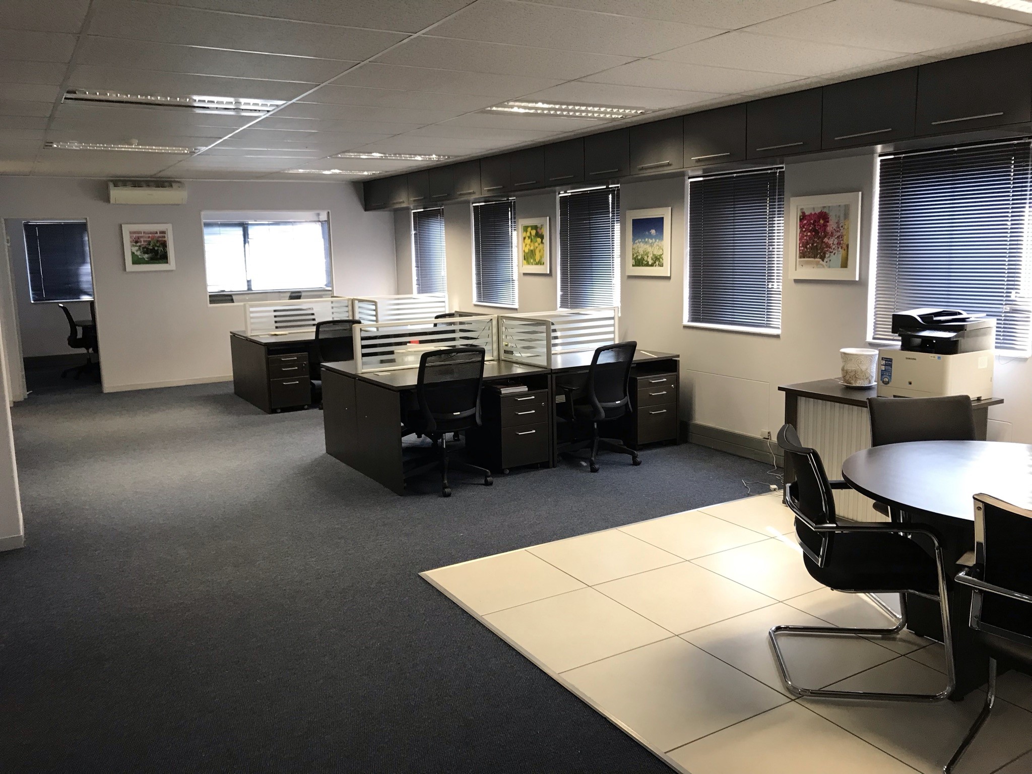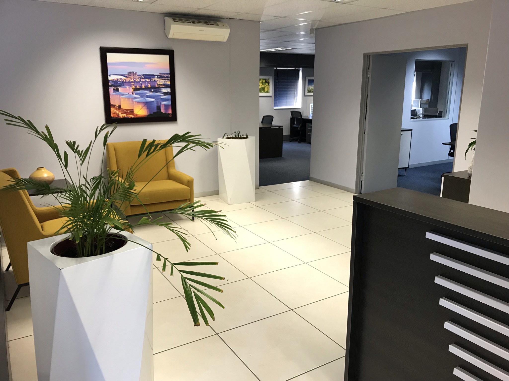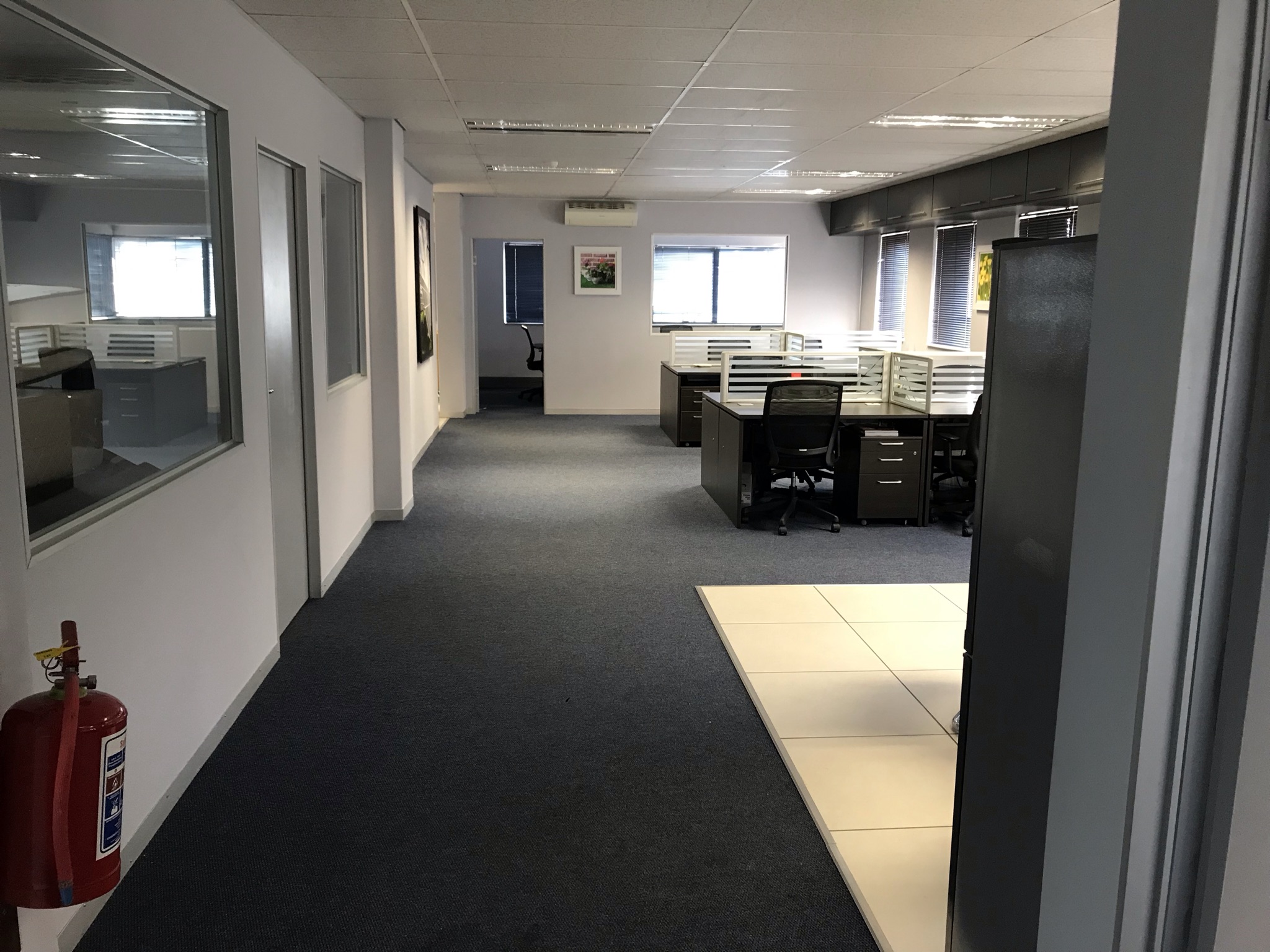 This air-conditioned suite is equipped with biometric access and has been fitted out with a reception, two boardrooms, two offices, a filing room, kitchen and ladies & gents’ bathrooms. There is power and water backup, and the suite has five basement and five open parking bays allocated to it, with ample visitors parking also available in the park. Rates & taxes are approximately R7 500 per month and the levy is approximately R6000 per month. The asking price for the suite is R3 800 000 excluding vat.