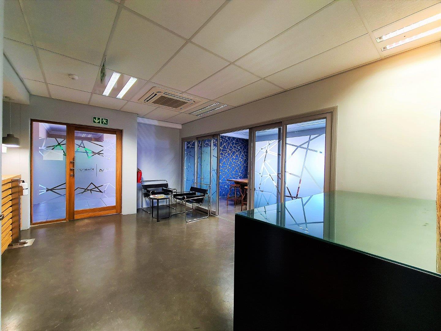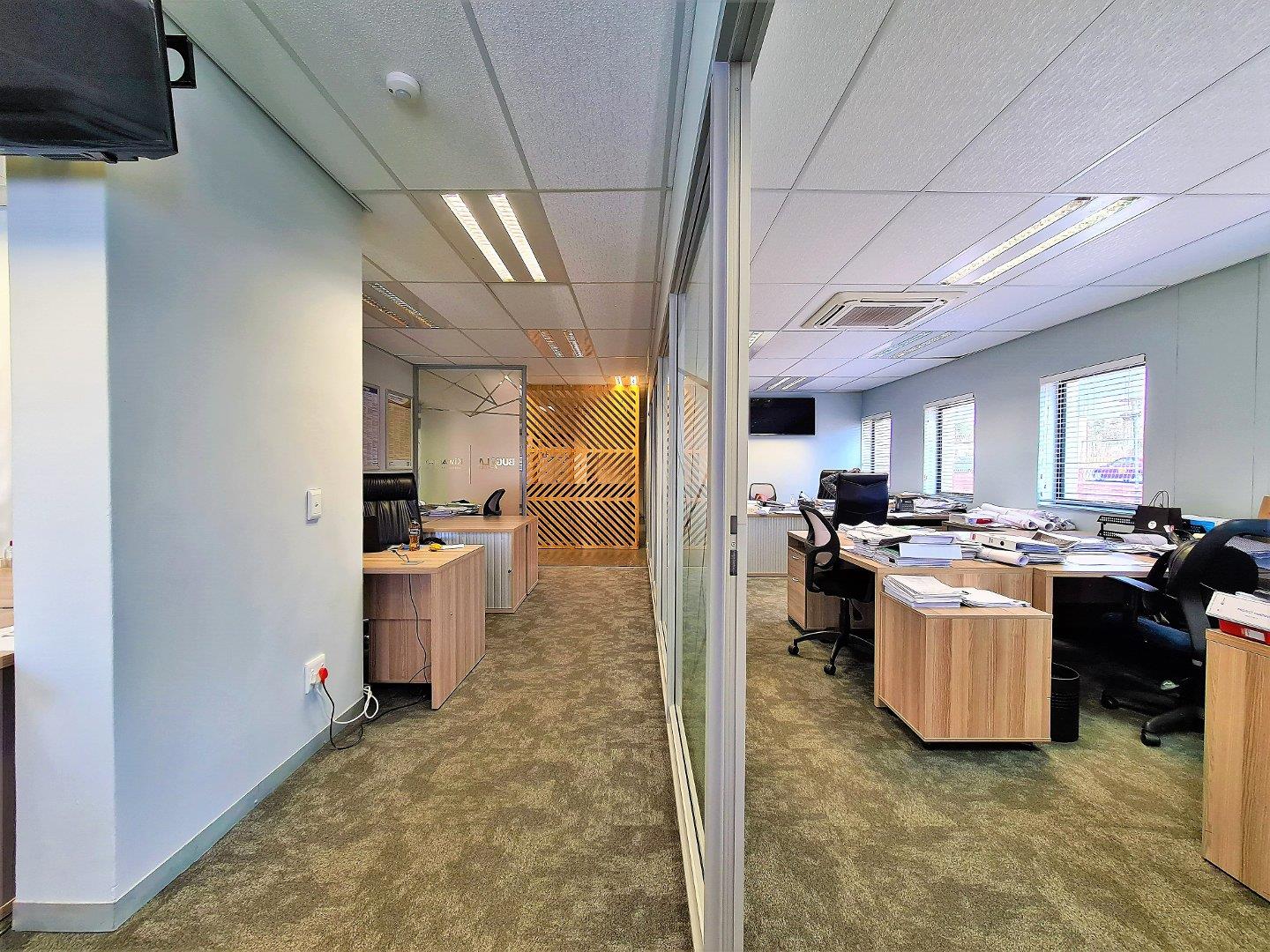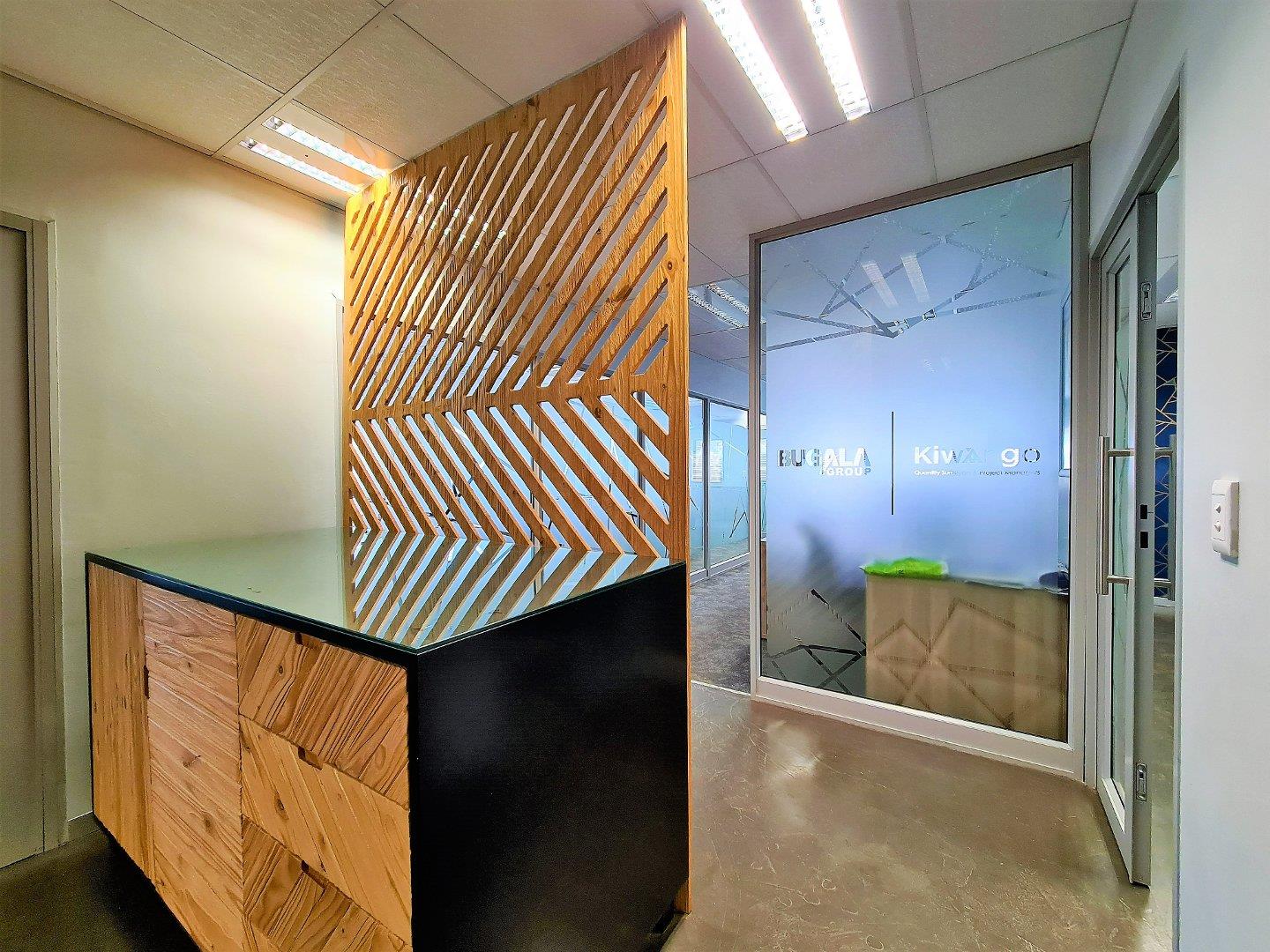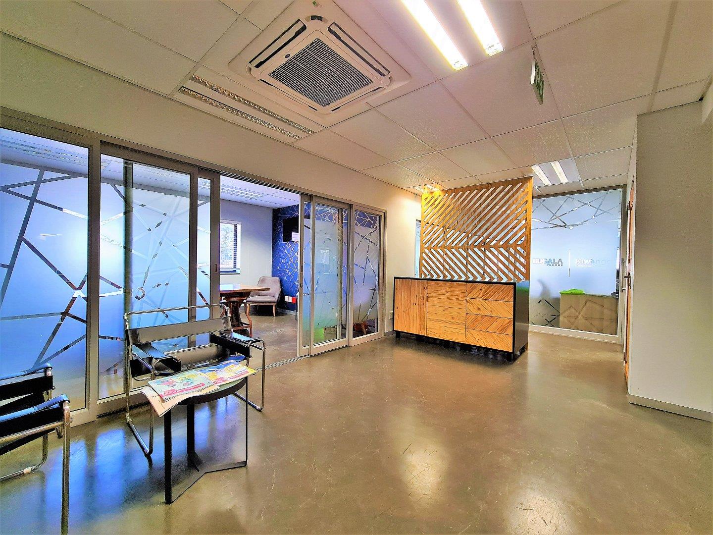 This ultra modern office to let in Cedar Office Estate is located on the ground floor and welcomes you with a modern reception area followed by a spacious glass encased boardroom. The back office consists of 2 open plan offices separated by glass, 2 glass encased individual offices and a passage leading to a private dedicated kitchen and a second spacious boardroom that is ideal for video conferencing. All the windows are neatly fitted with blinds and the flooring consists of screed and carpets. The landlord offers a generous tenant installation allowance for required changes to the office. Kindly watch the video for a virtual tour.