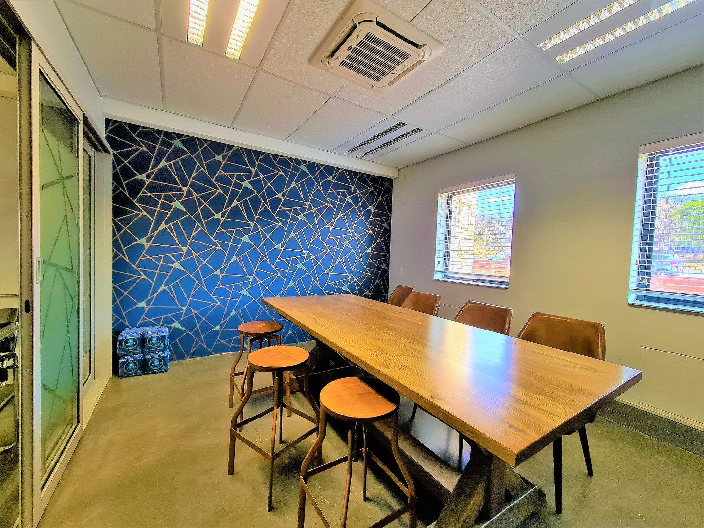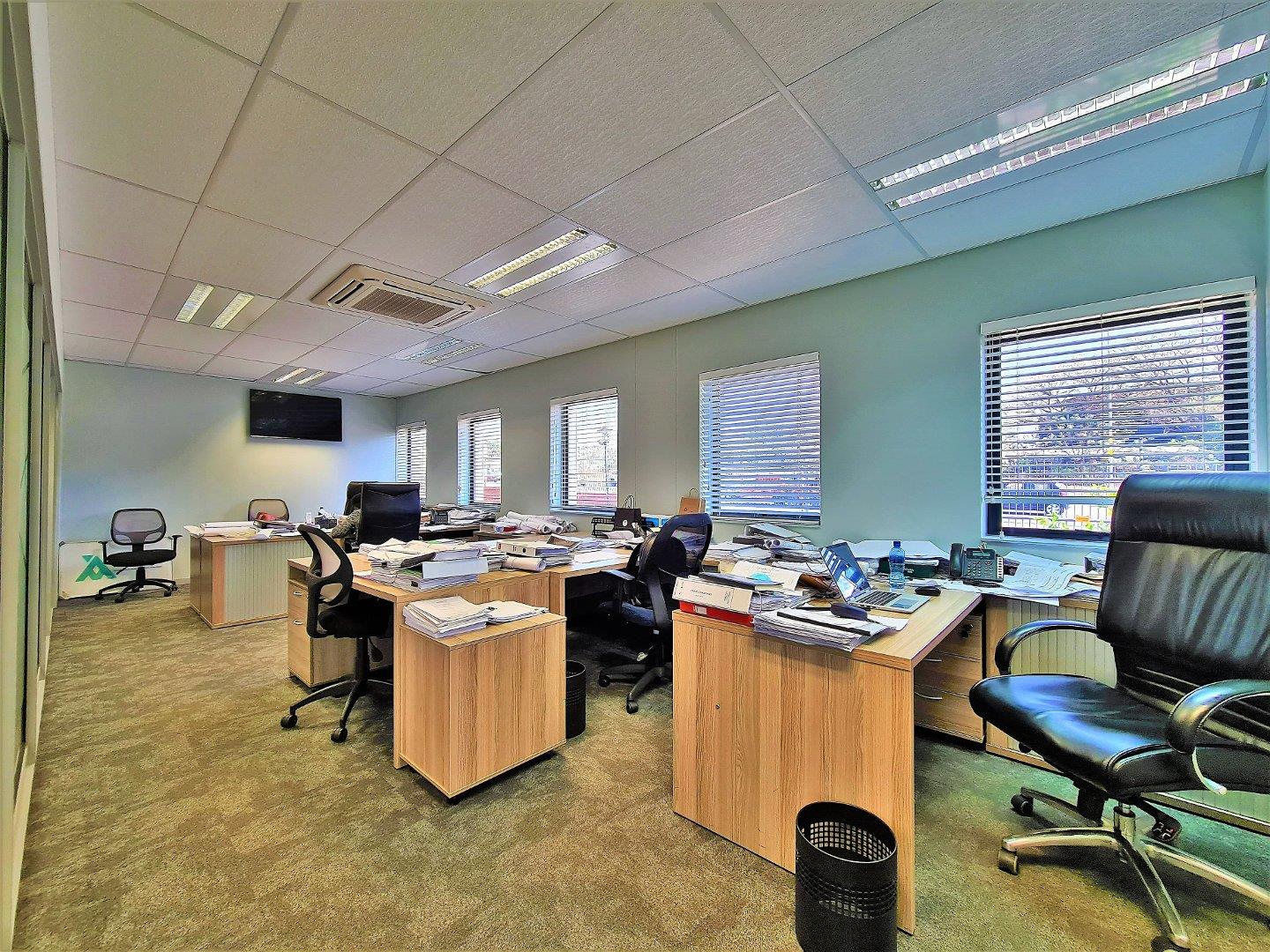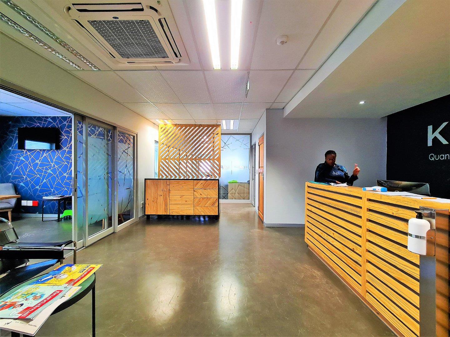 This ultra modern office to let in Cedar Office Estate is located on the ground floor and welcomes you with a modern reception area followed by a spacious glass encased boardroom. The back office consists of 2 open plan offices separated by glass, 2 glass encased individual offices and a passage leading to a private dedicated kitchen and a second spacious boardroom that is ideal for video conferencing. All the windows are neatly fitted with blinds and the flooring consists of screed and carpets. The landlord offers a generous tenant installation allowance for required changes to the office. Kindly watch the video for a virtual tour.