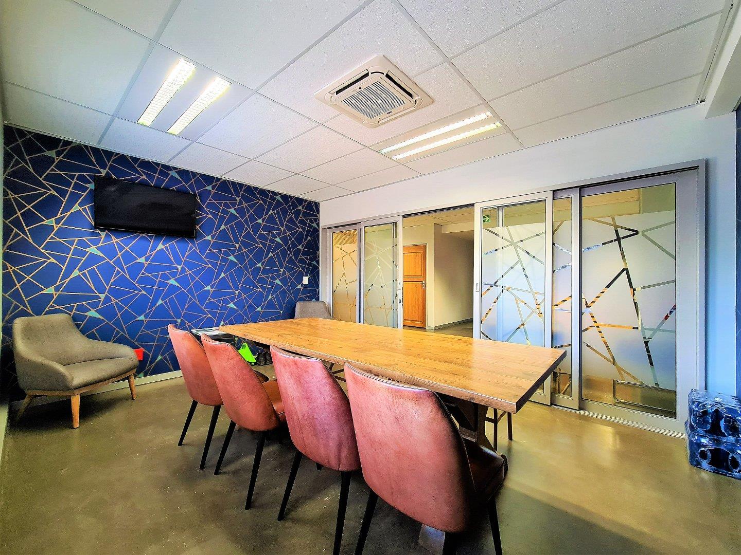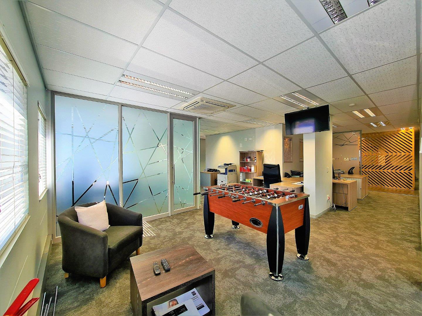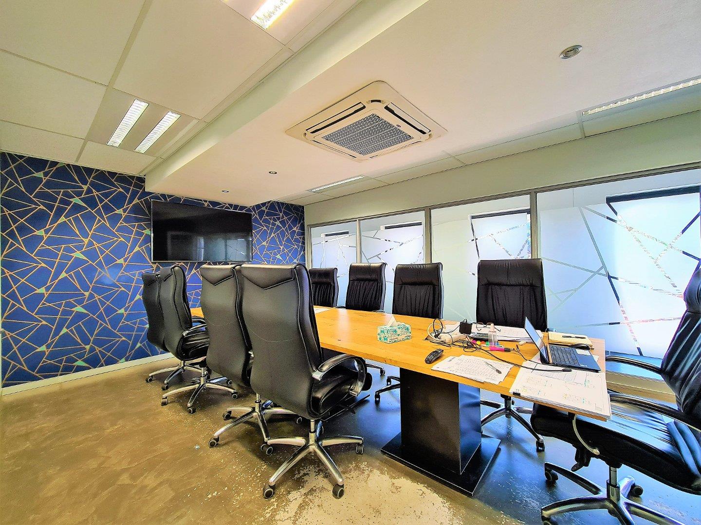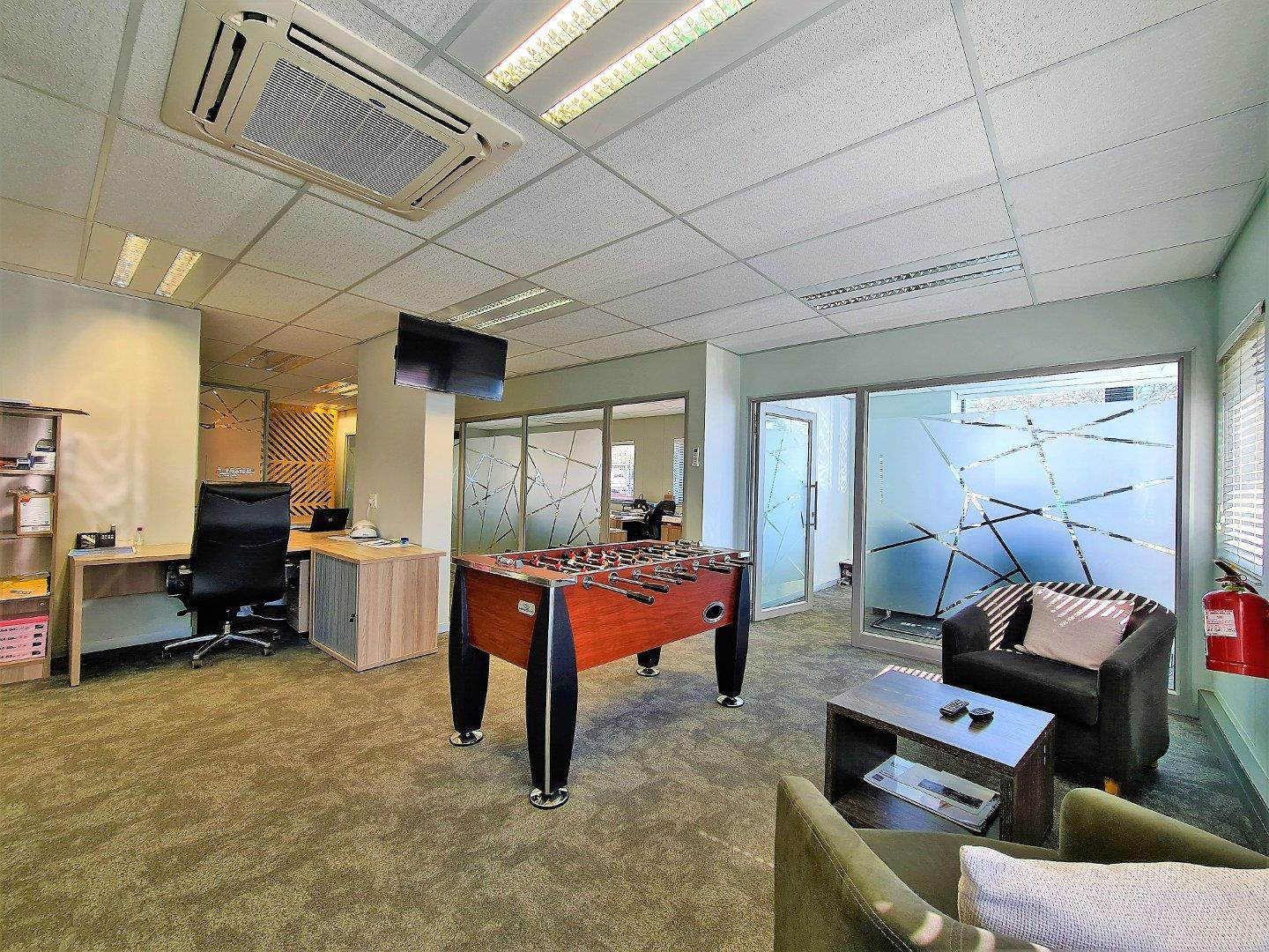 This ultra modern office to let in Cedar Office Estate is located on the ground floor and welcomes you with a modern reception area followed by a spacious glass encased boardroom. The back office consists of 2 open plan offices separated by glass, 2 glass encased individual offices and a passage leading to a private dedicated kitchen and a second spacious boardroom that is ideal for video conferencing. All the windows are neatly fitted with blinds and the flooring consists of screed and carpets. The landlord offers a generous tenant installation allowance for required changes to the office. Kindly watch the video for a virtual tour.