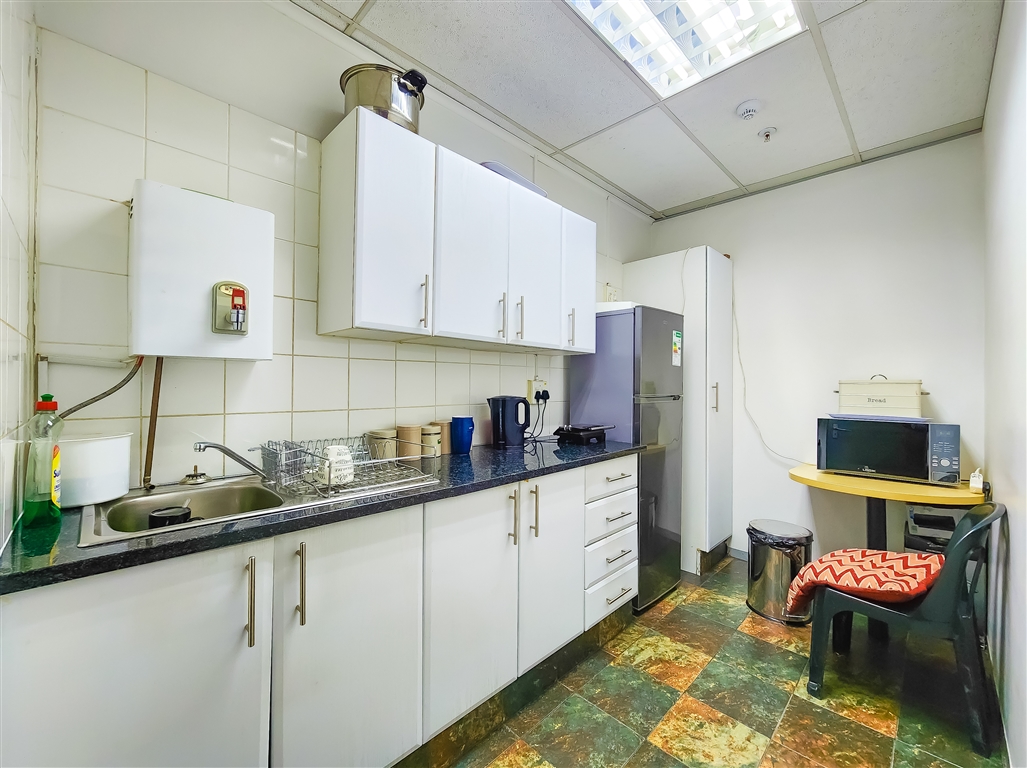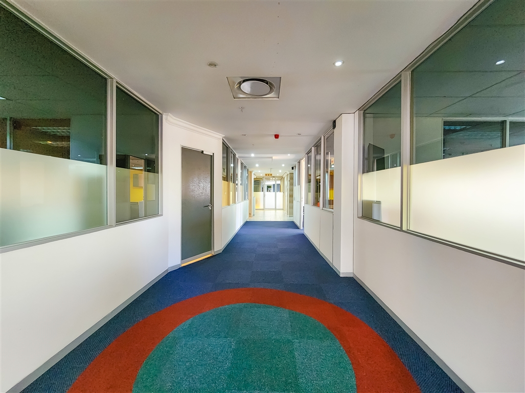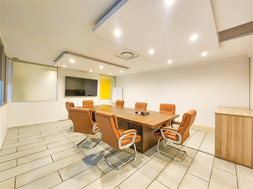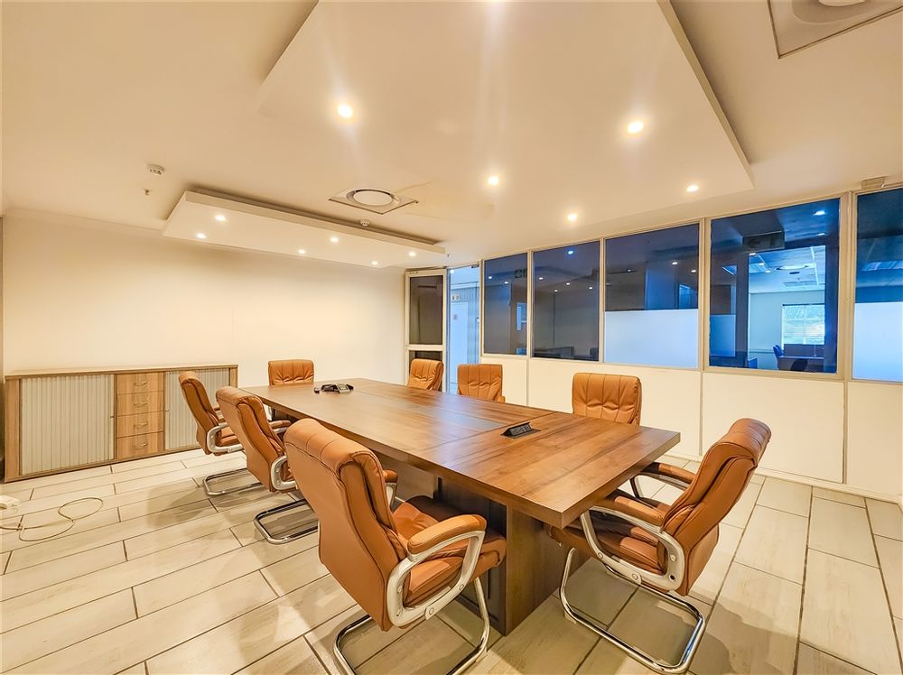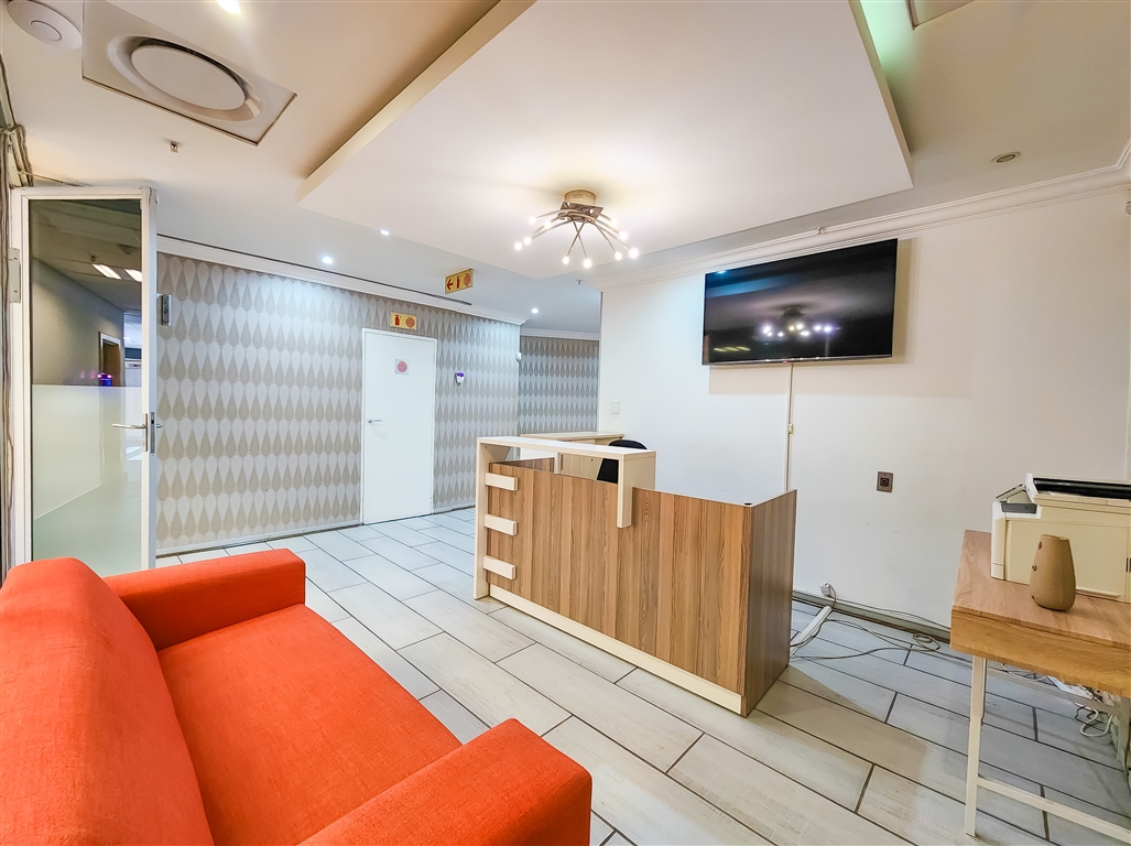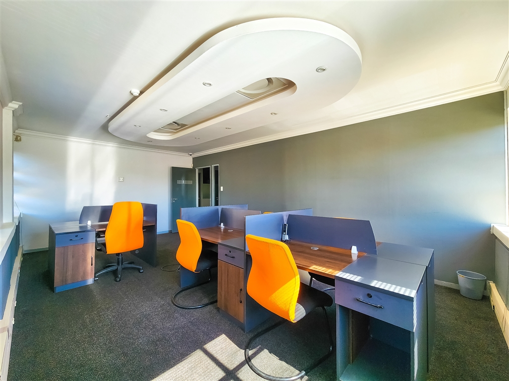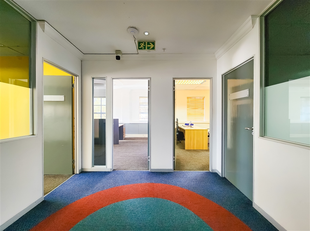 This ground floor office to Let in Fourways Golf Park welcomes you with a modern reception area followed by a spacious boardroom that can easily accommodate a 12-seater. A passage further leads you to 2 spacious offices that can comfortably accommodate multiple desks and 2 individual offices. The office enjoys a private dedicated kitchen with running water and a spacious pause area with direct access to the shared patio that leads to golf course. The building is supported by a back up generator. All the windows have ready fitted blinds. The floor is a mix of modern tiles and carpets. Metro fibre is the fibre service provider in the park. Kindly watch the video for a virtual walkthrough.