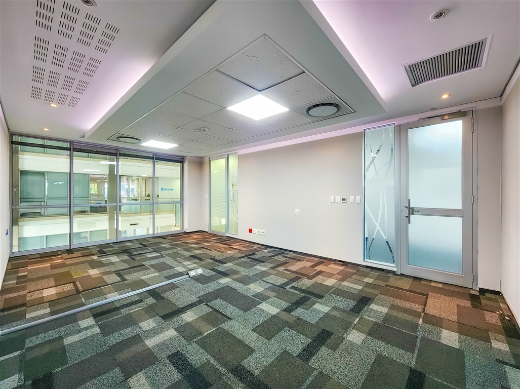 This modern office space for rent in Design Quarter combines functionality with an aesthetic appeal. The office space greets you with a striking triple-volume entrance foyer, followed by convenient access to elevators and stairs. Inside, the layout opens to a generous reception area that leads into a large, light-filled open-plan office, surrounded by windows that let natural light flow throughout. Multiple private offices are strategically positioned, along with a spacious boardroom that comfortably accommodates a 16-seater setup. The office enjoys a private dedicated kitchen and a private canteen with various seating options, perfect for team breaks and informal meetings.