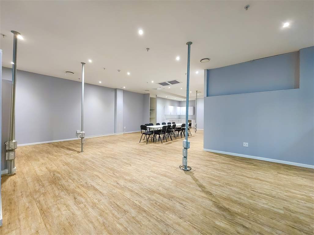 This modern open plan office to Let in Dainfern Square is located on the 1st floor and offers a spacious open plan office followed by a private dedicated kitchen and storeroom. The office is encased by floor to ceiling glass panels allowing exceptional branding opportunities. The office further enjoys modern oak vinyl floors, air-conditioning and running water.