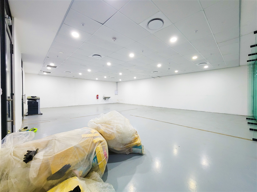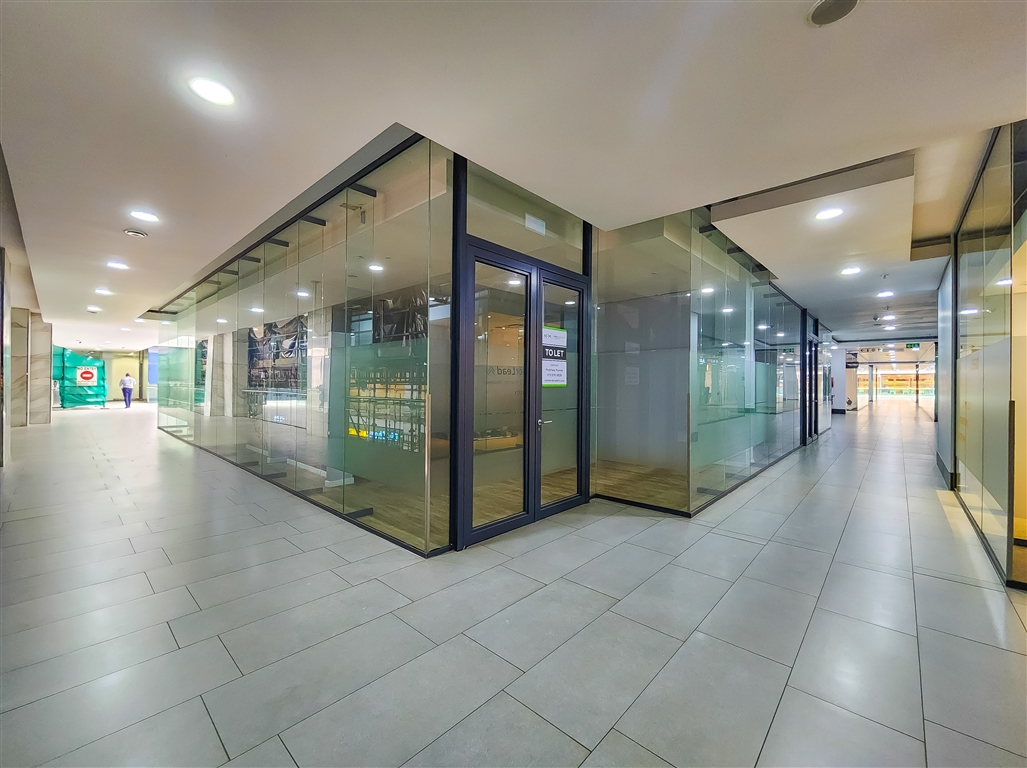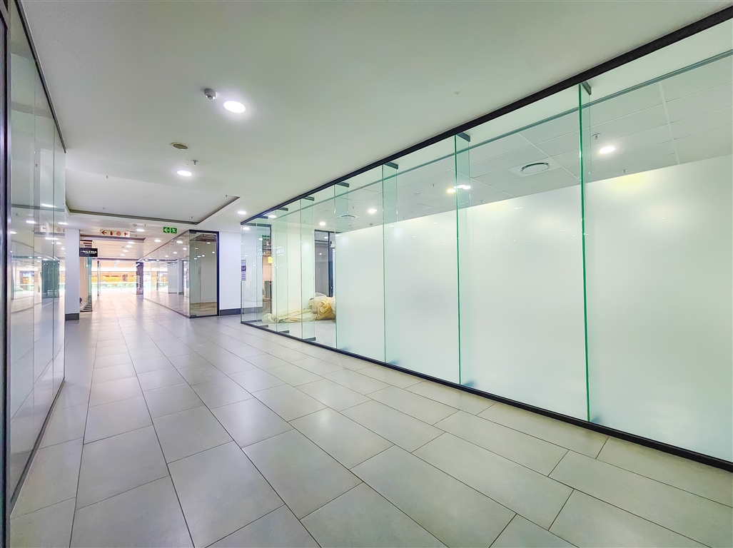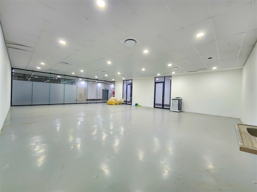 This open-plan office for rent at Dainfern Square provides the flexibility to create your ideal workspace tailored to your needs. The floors are screeded throughout, the office is fully air-conditioned, and running water is available. Floor-to-ceiling glass panels add to the aesthetic appeal, while the ceiling height exceeds standard measurements, creating an open and airy atmosphere.