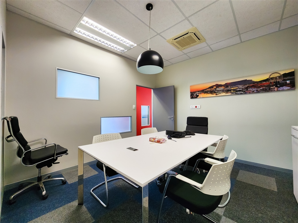 This well-maintained ground-floor office space for rent in Cedar Tree Office Park welcomes you with a spacious reception area, a boardroom that comfortably seats 12 people, two private dedicated offices, a kitchen and separate ladies' and gents' restrooms. The office is fully carpeted, with fitted blinds on all the windows. Additional features include prepaid electricity, fiber readiness and full air conditioning. The office is further supported by a backup generator and backup water.
