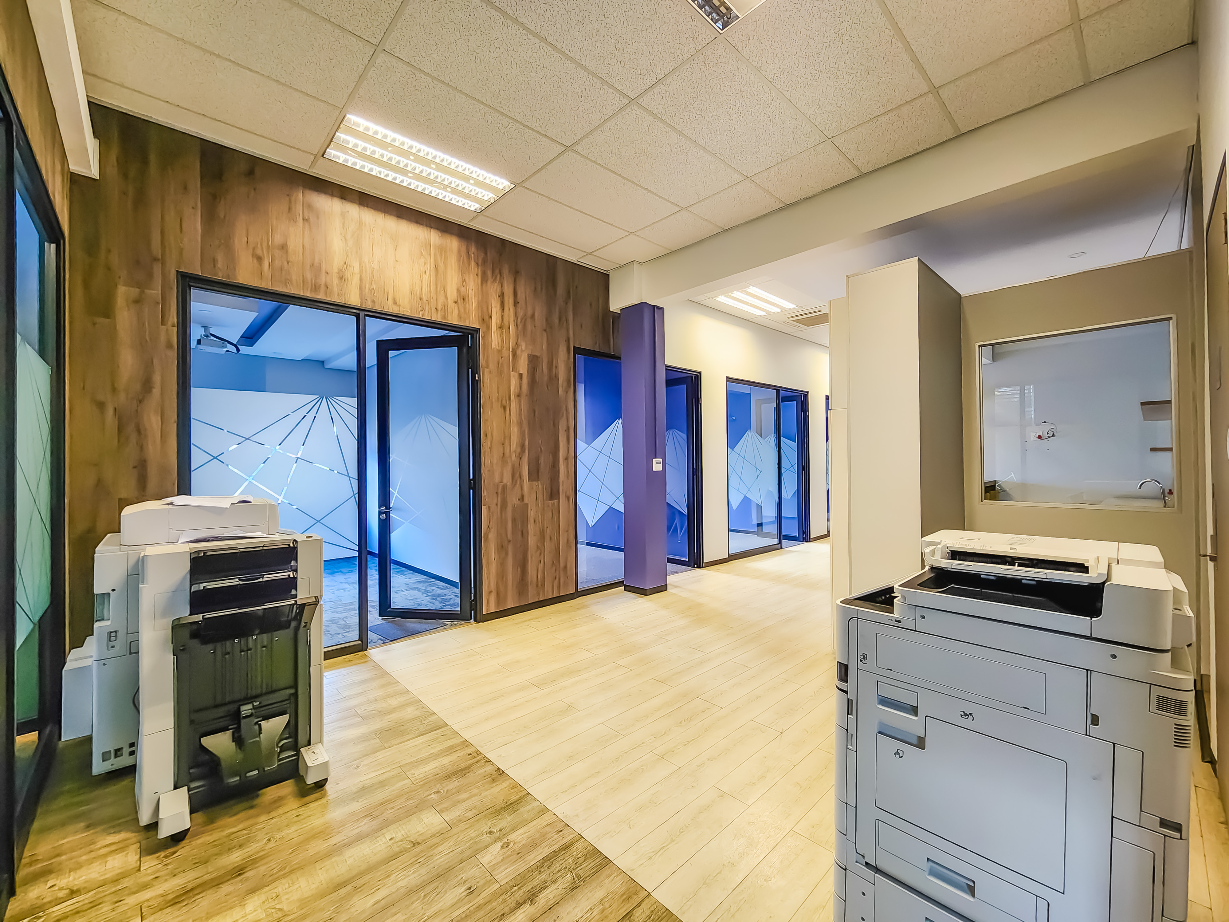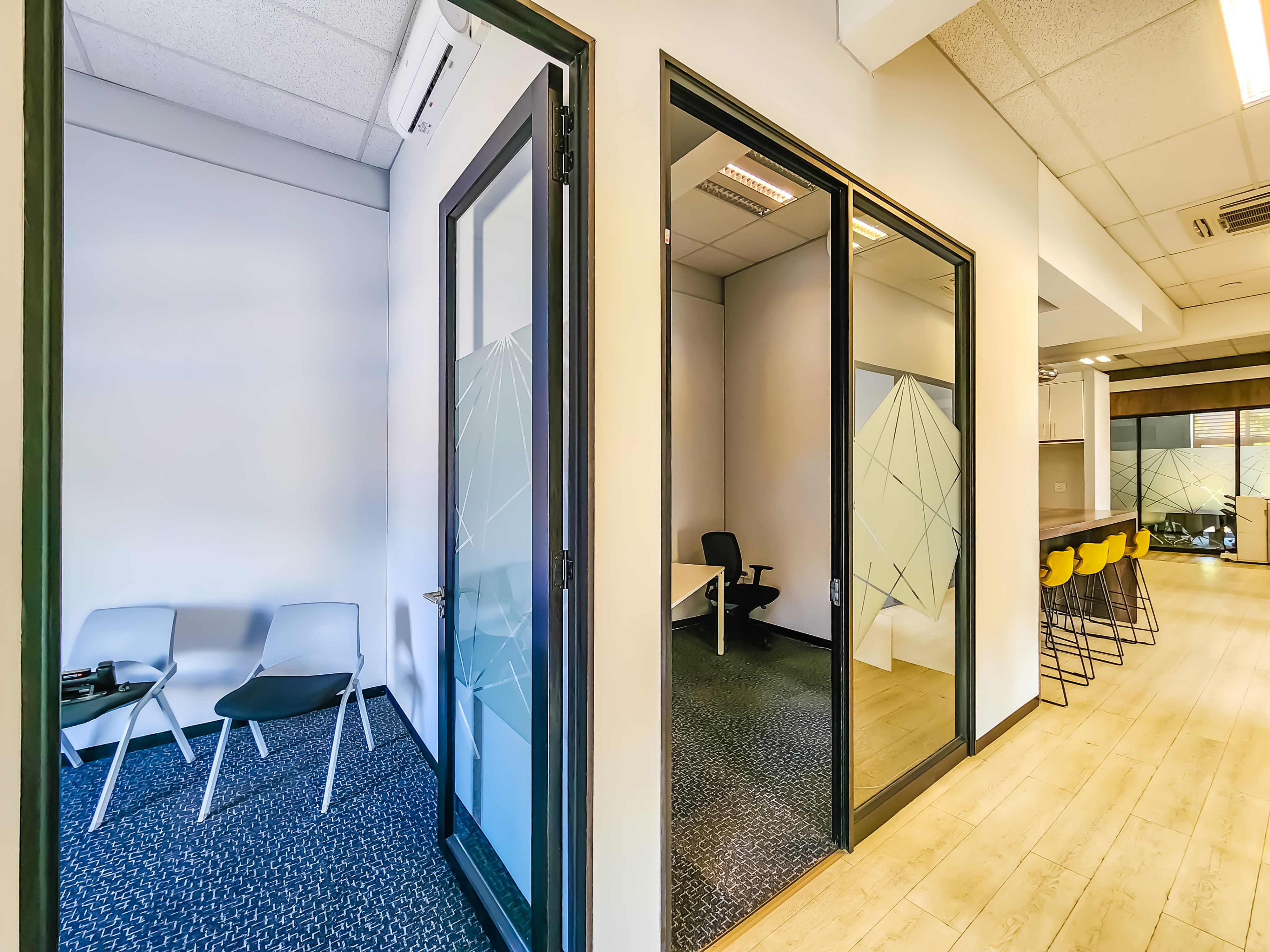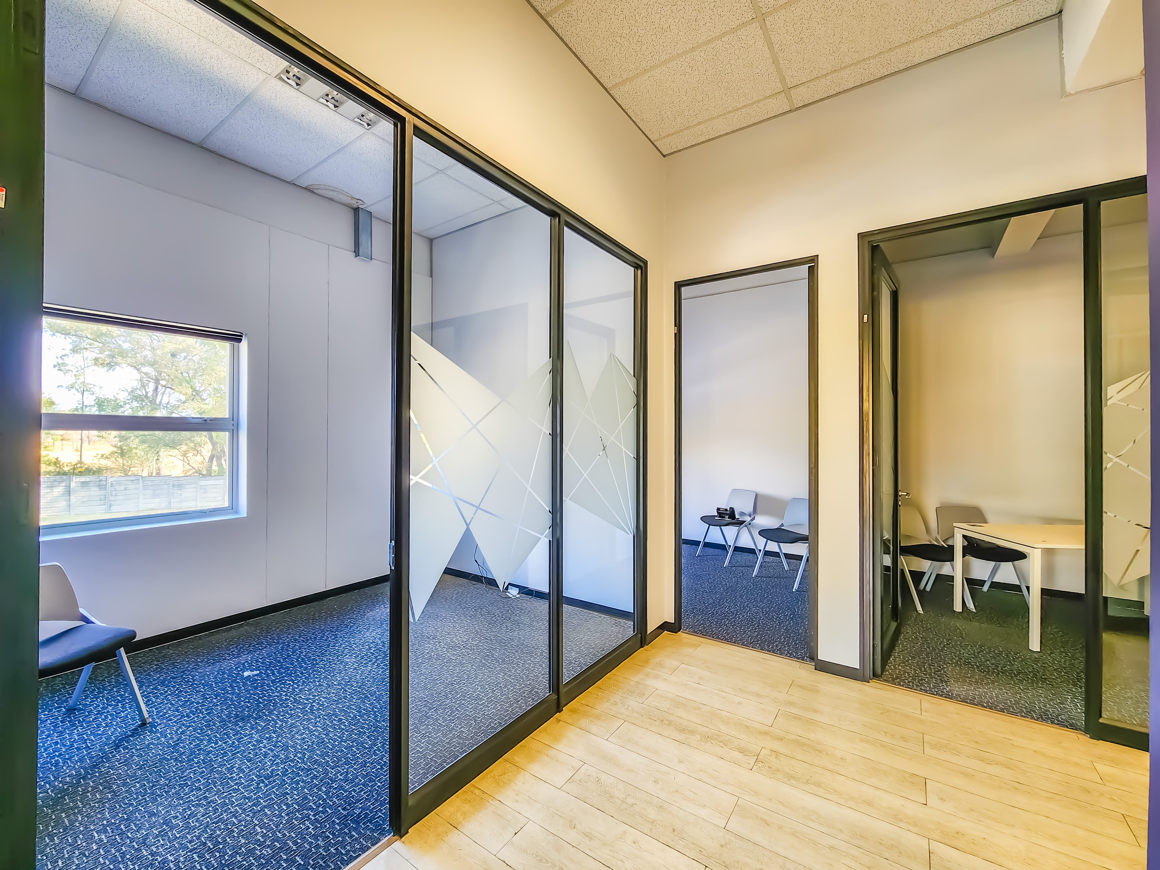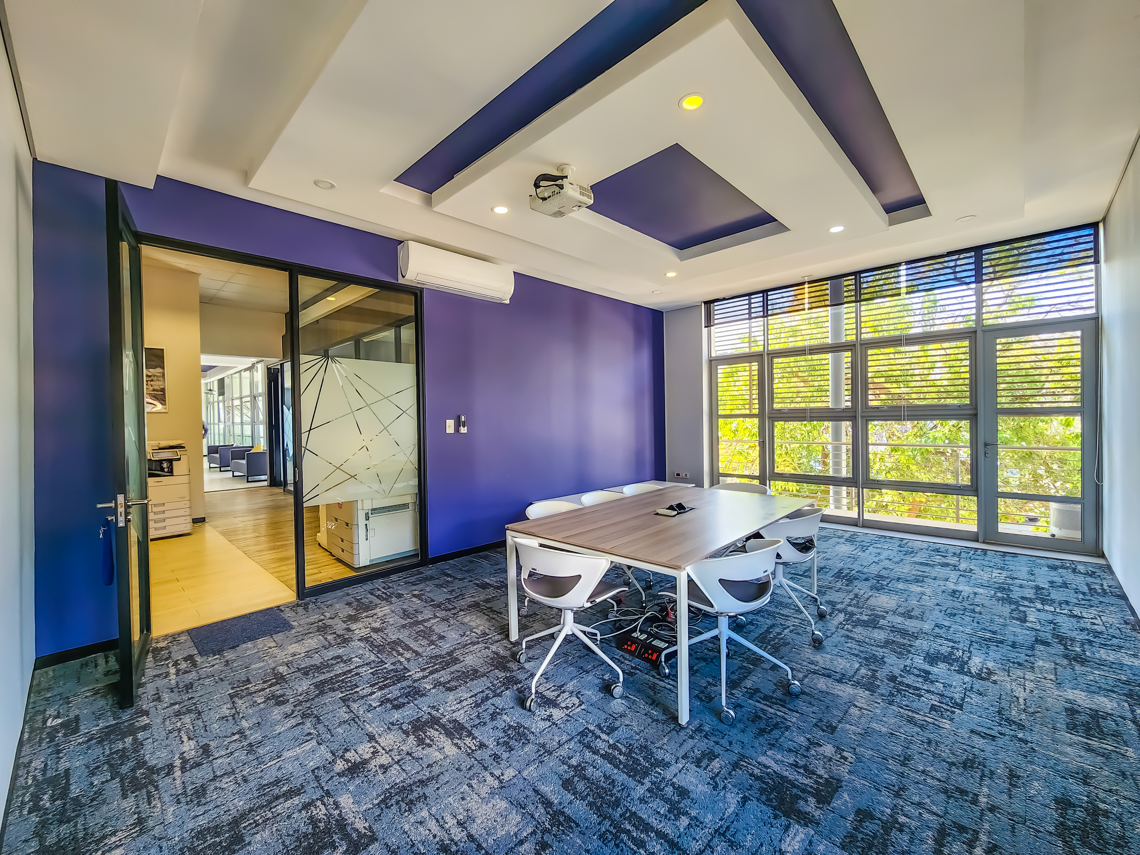 This ultra-modern office to let in the prestigious Willow Wood Office Park offers a sleek, contemporary design featuring high-quality vinyl flooring, high-rise ceilings and stylish black aluminum finishes. The office consists of two spacious boardrooms, eight semi-glass-partitioned private offices, a fully fitted open-plan kitchen, and private dedicated ladies and gents restrooms. Several offices and the boardrooms have access to private dedicated balconies. Selected furniture pieces are available and can be included in the monthly rental, offering a turnkey solution for your business.