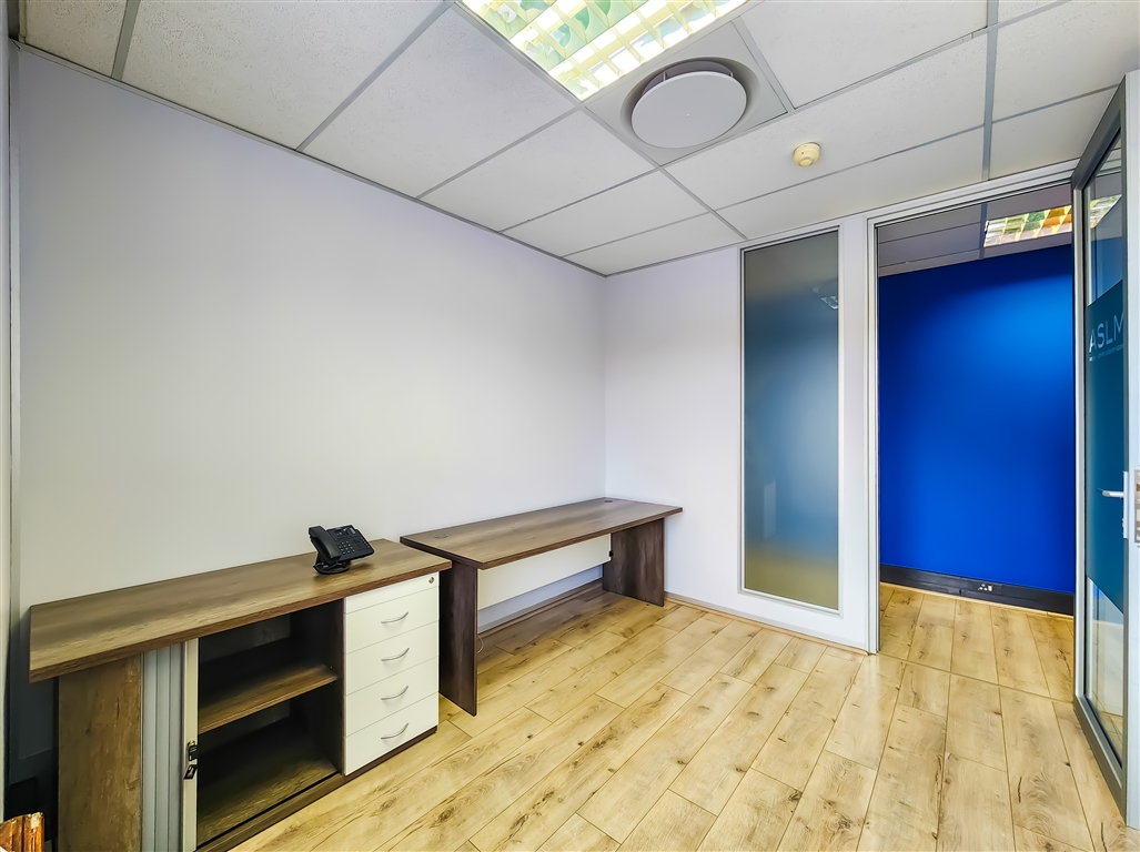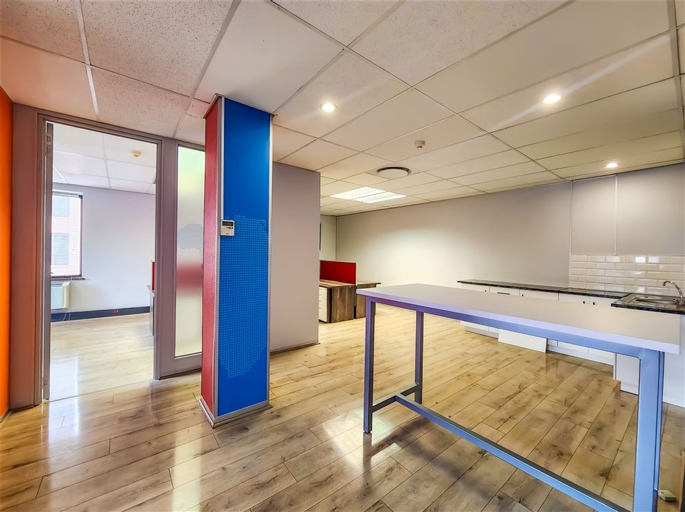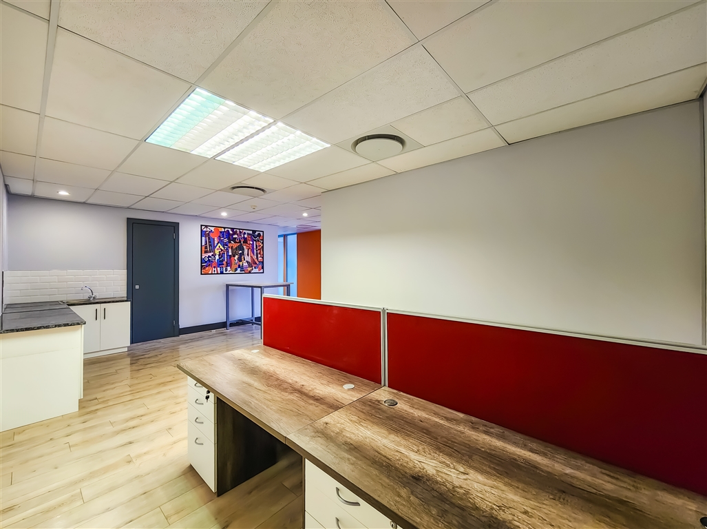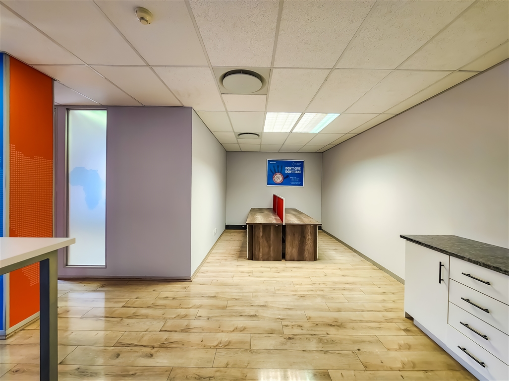 This prime office space to rent in The Pivot is ready for immediate occupation, offering a functional and welcoming layout. Upon entry, you are greeted by a spacious reception area followed by a versatile storeroom or server room. A passage leads you to a generous sized boardroom, comfortably accommodating a six-seater setup, as well as one private office and two open-plan work stations. The space is complemented by a modern, open-plan kitchen, perfect for informal breaks or collaborative discussions. Finished with sleek vinyl flooring throughout, this office combines practicality, style, and comfort in a sought-after business location.