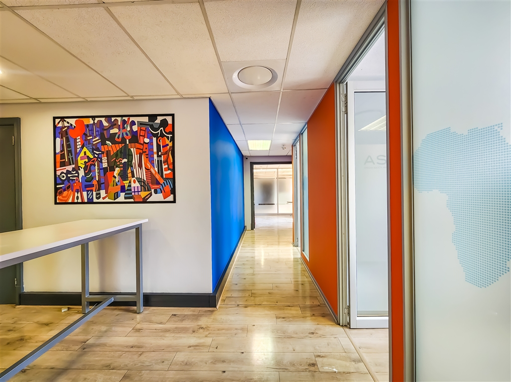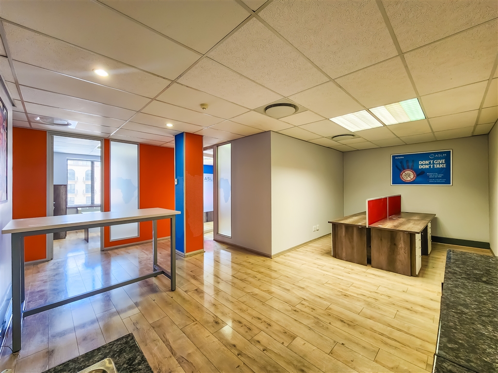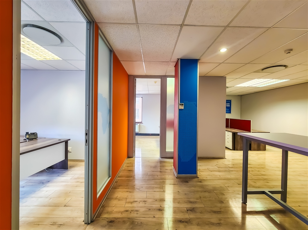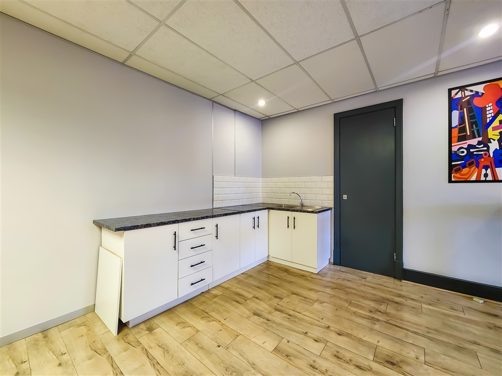 This prime office space to rent in The Pivot is ready for immediate occupation, offering a functional and welcoming layout. Upon entry, you are greeted by a spacious reception area followed by a versatile storeroom or server room. A passage leads you to a generous sized boardroom, comfortably accommodating a six-seater setup, as well as one private office and two open-plan work stations. The space is complemented by a modern, open-plan kitchen, perfect for informal breaks or collaborative discussions. Finished with sleek vinyl flooring throughout, this office combines practicality, style, and comfort in a sought-after business location.