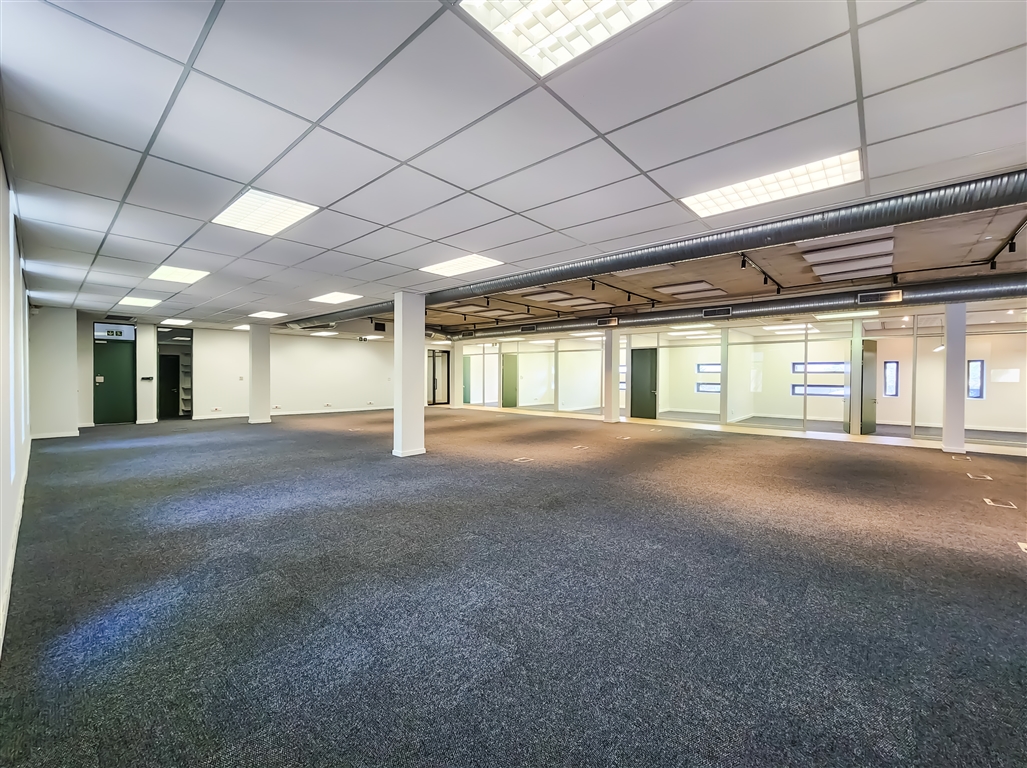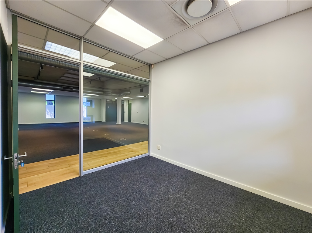 The office space opens into a generous open-plan office that flows onto a wooden deck, perfect for fresh air breaks or informal gatherings. Beyond the main workspace, you’ll find several glass-enclosed private offices, a boardroom, two spacious storerooms, and a private dedicated kitchen with direct access to the wooden deck, overlooking the lush, green garden. Offering exclusive use of the deck, ensuring both privacy and a unique working environment.